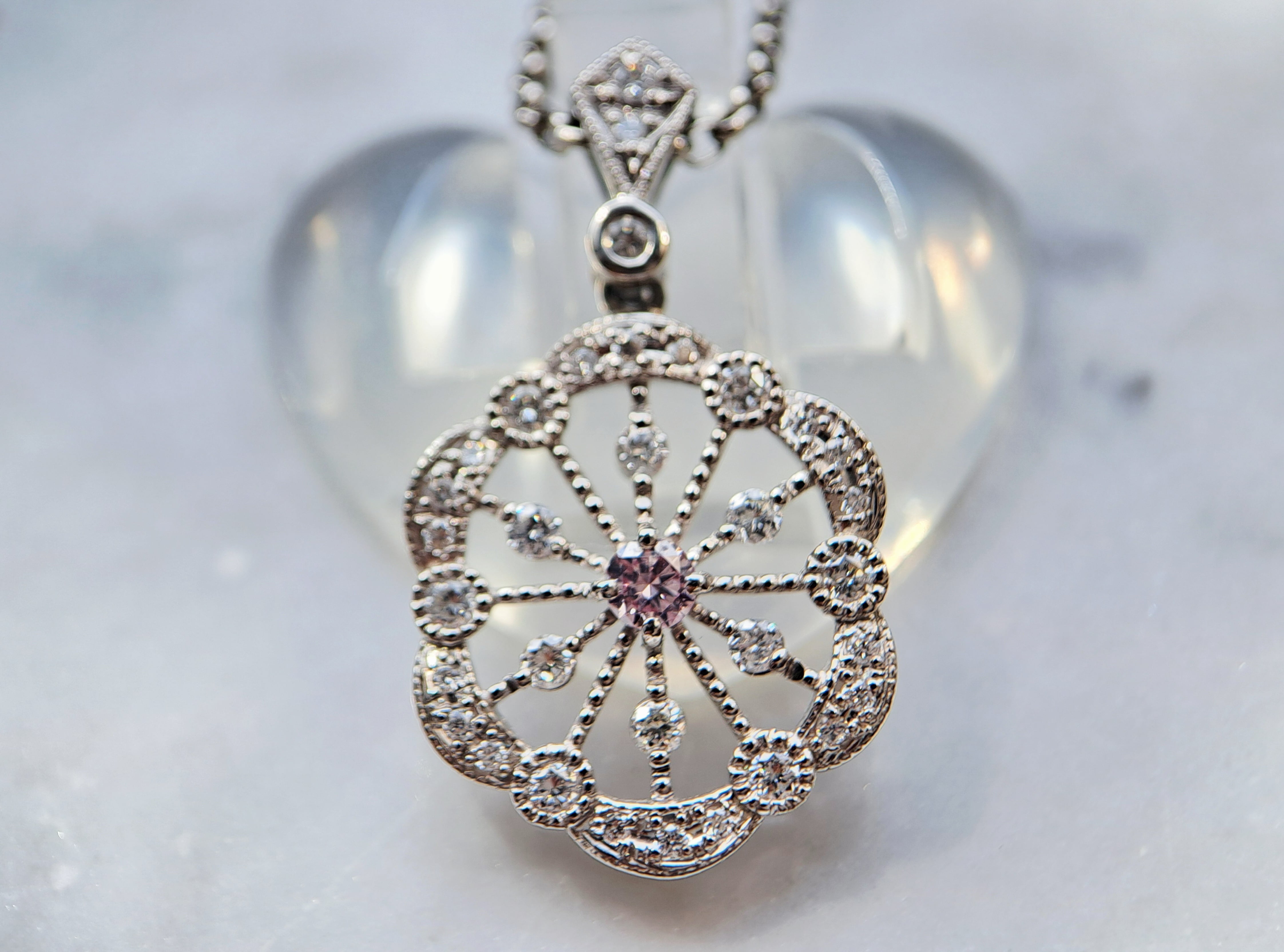 ピンクダイヤモンドを主役に、丁寧に、時間をかけ誠実にお仕立てされたまさに逸品と呼ぶにふさわしいジュエリーペンダントをご紹介します。