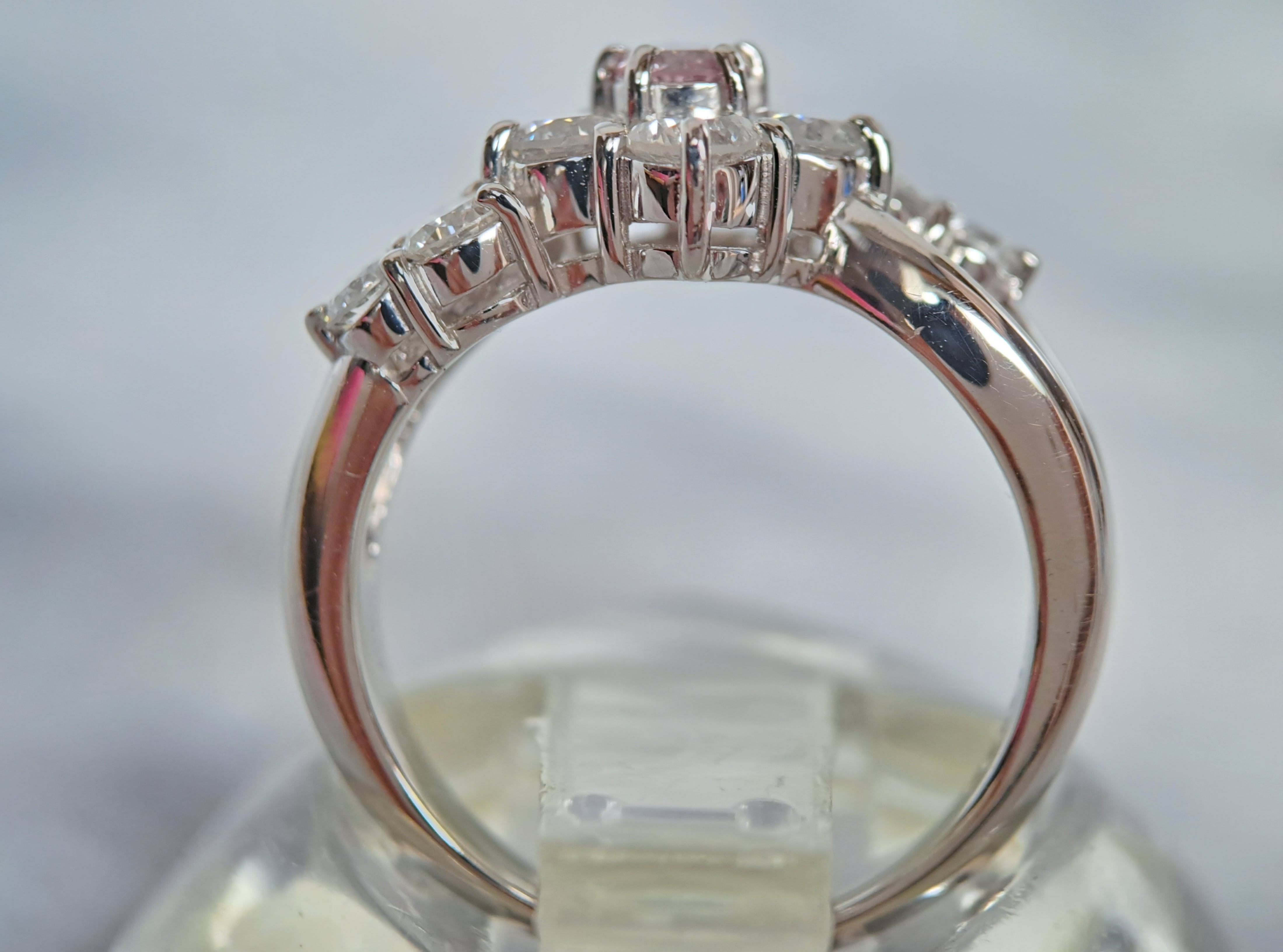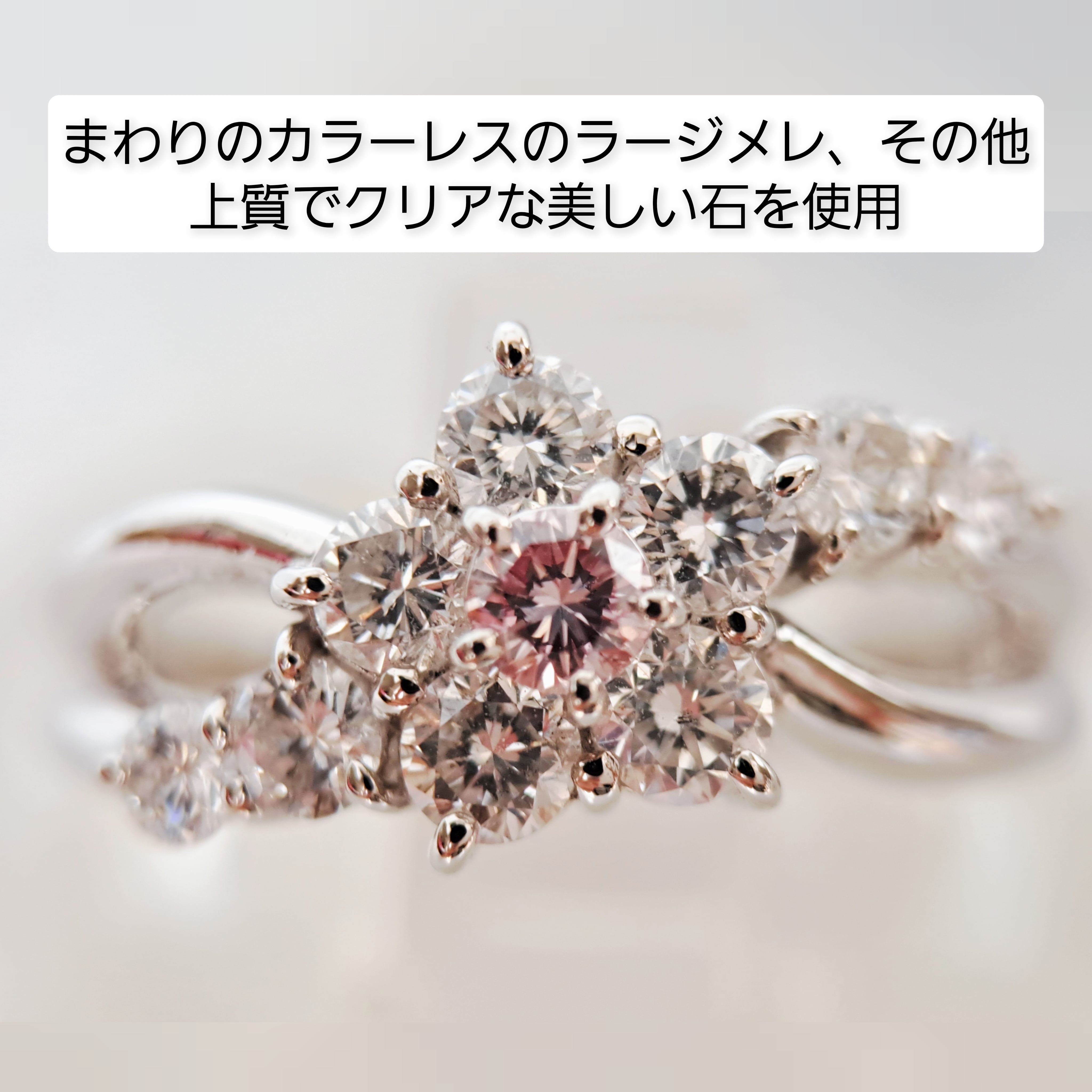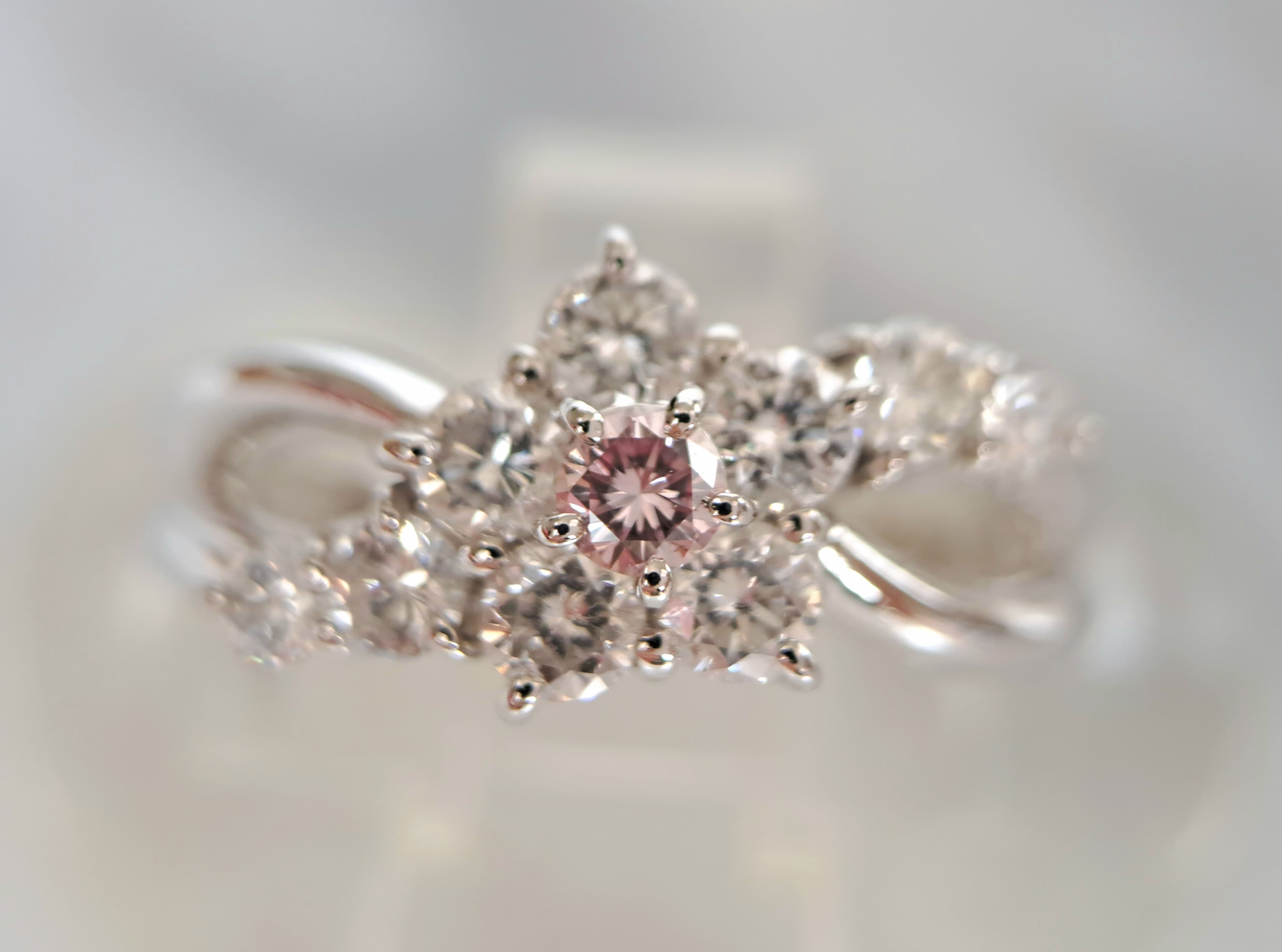 綺麗で上質なピンクダイヤモンドをメインに、取巻きラージメレや流れるデザインの腕にもひじょうに高品質な美しいダイヤモンドをあしらい、プラチナを贅沢に使用した素敵なフラワーリングをご紹介します。