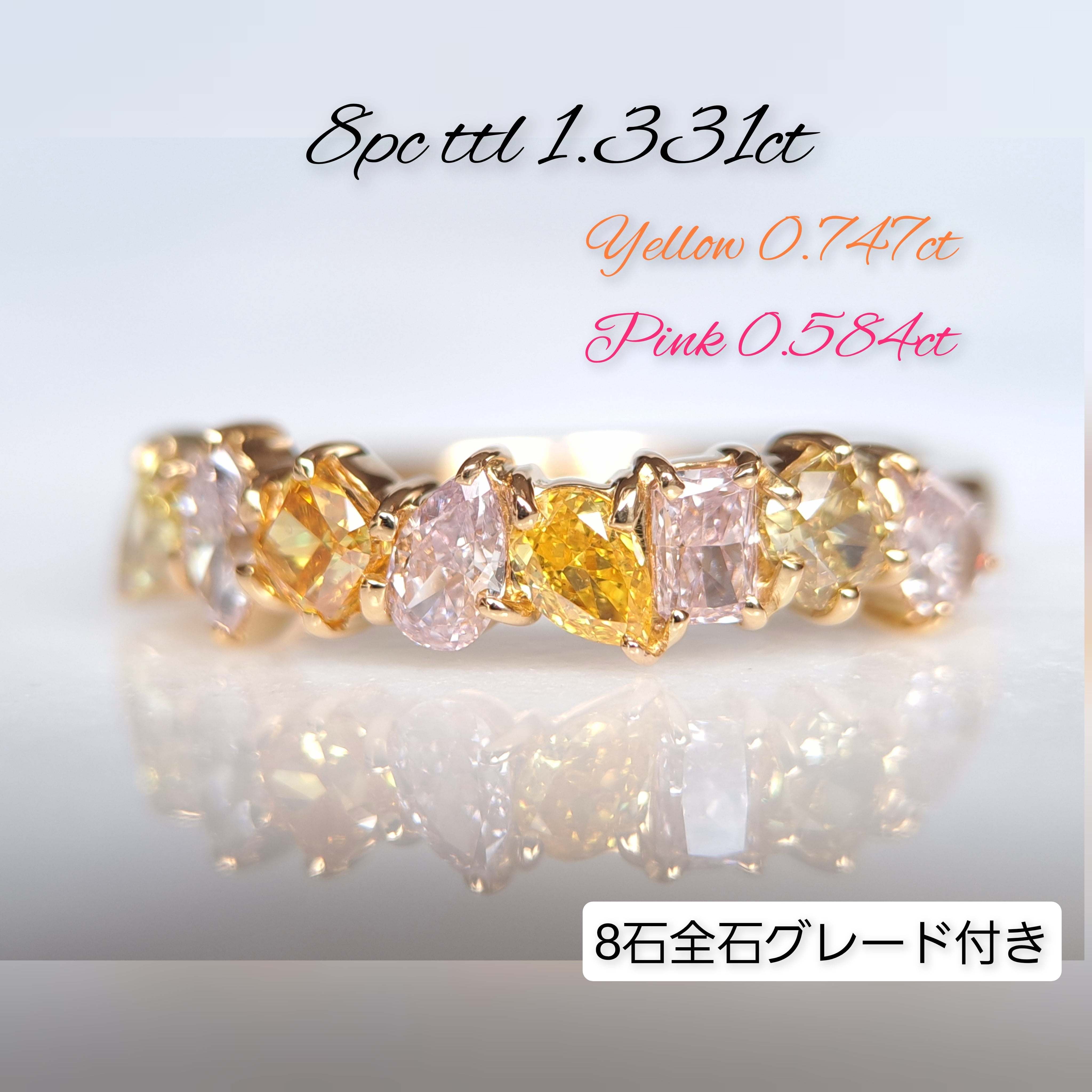 【製品名】K18YGイエローダイヤ(0.747ct)&ピンクダイヤモンド(0.584ct)/カラーダイヤ8石総計1.331ctリング