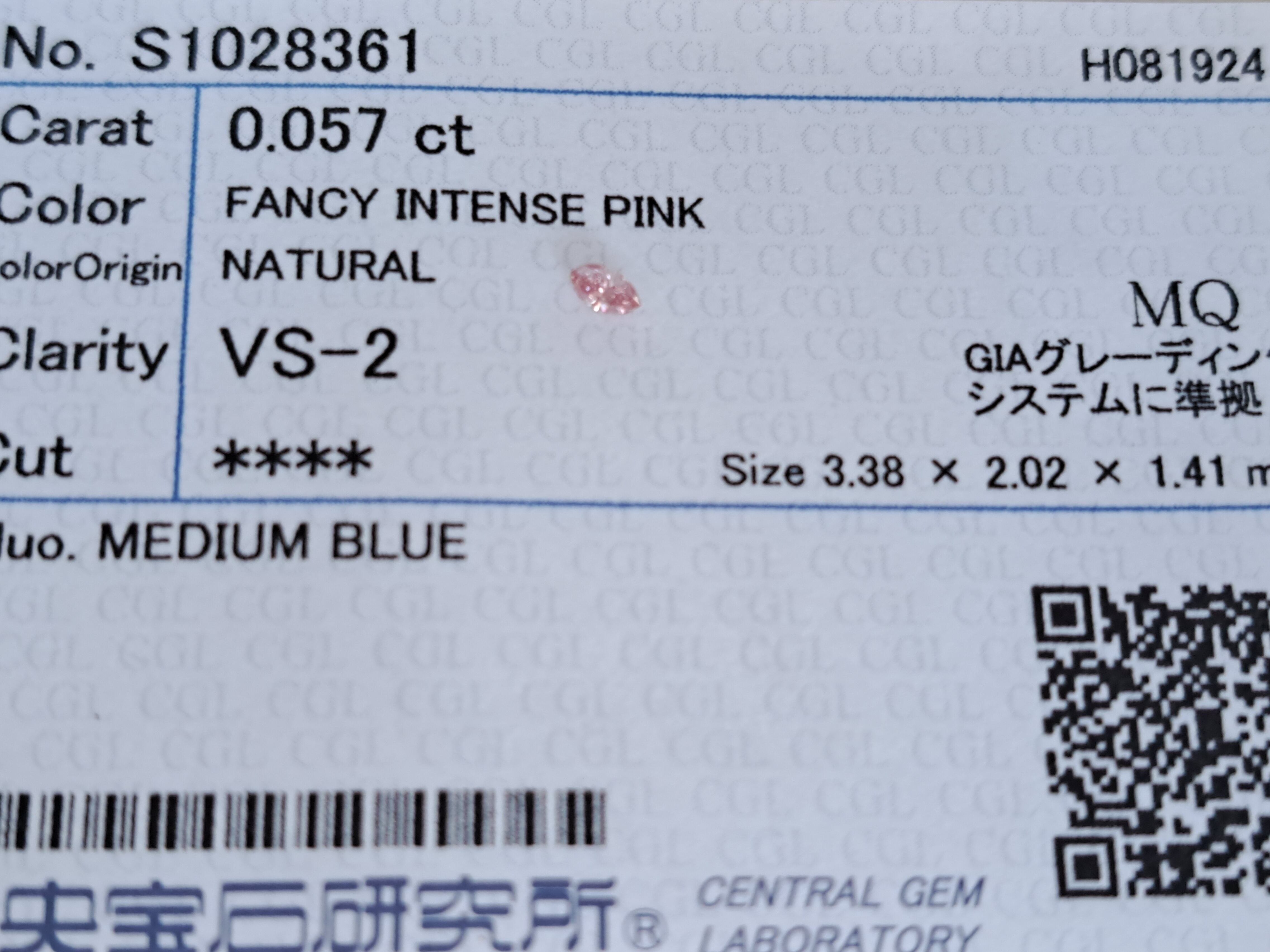 【販売11/24迄】(10)ピンクダイヤモンドルース 0.057ct fancy intense pink VS2(CGL)