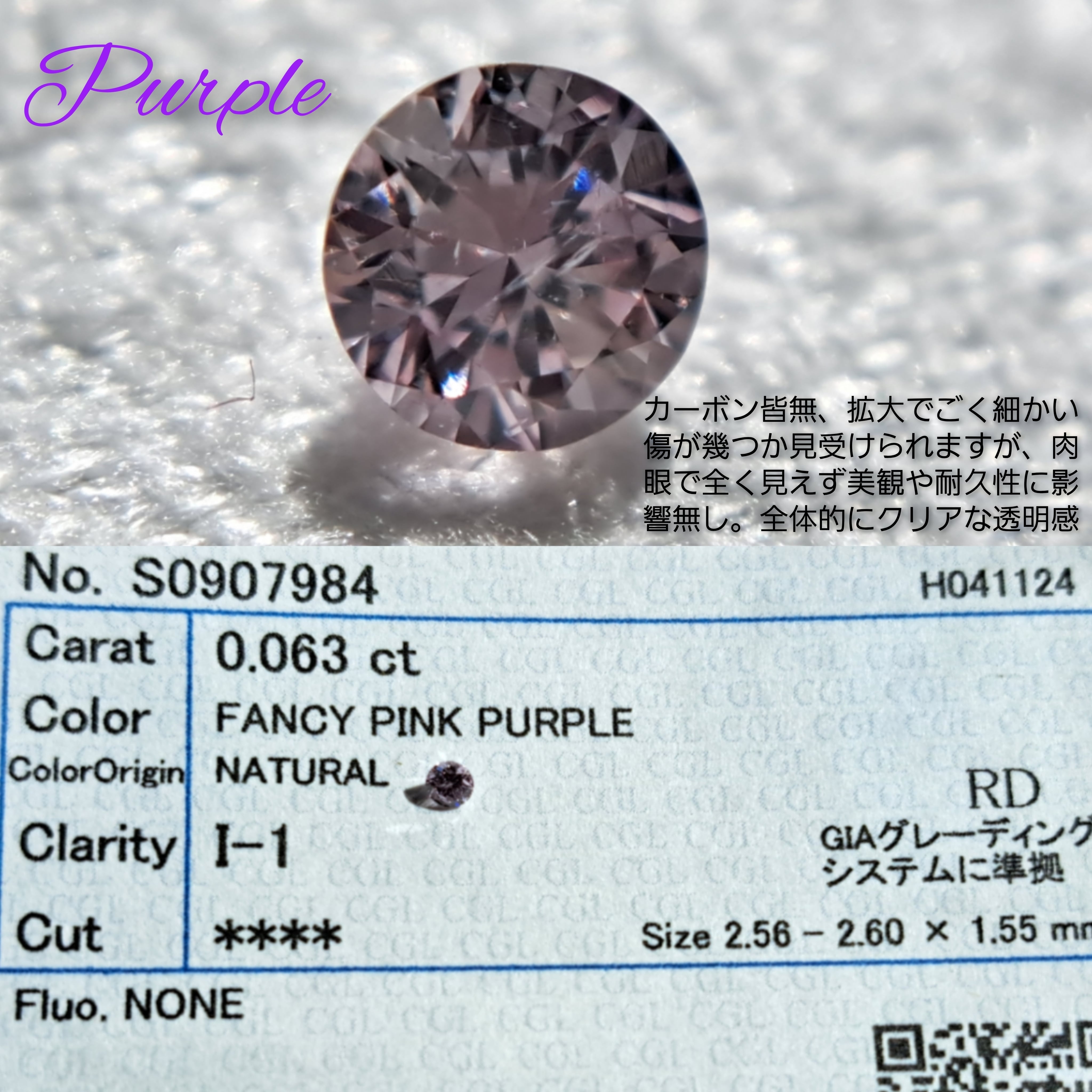 美しい紫です。しっかり発色良好なfancyクラスのレアな末尾紫。