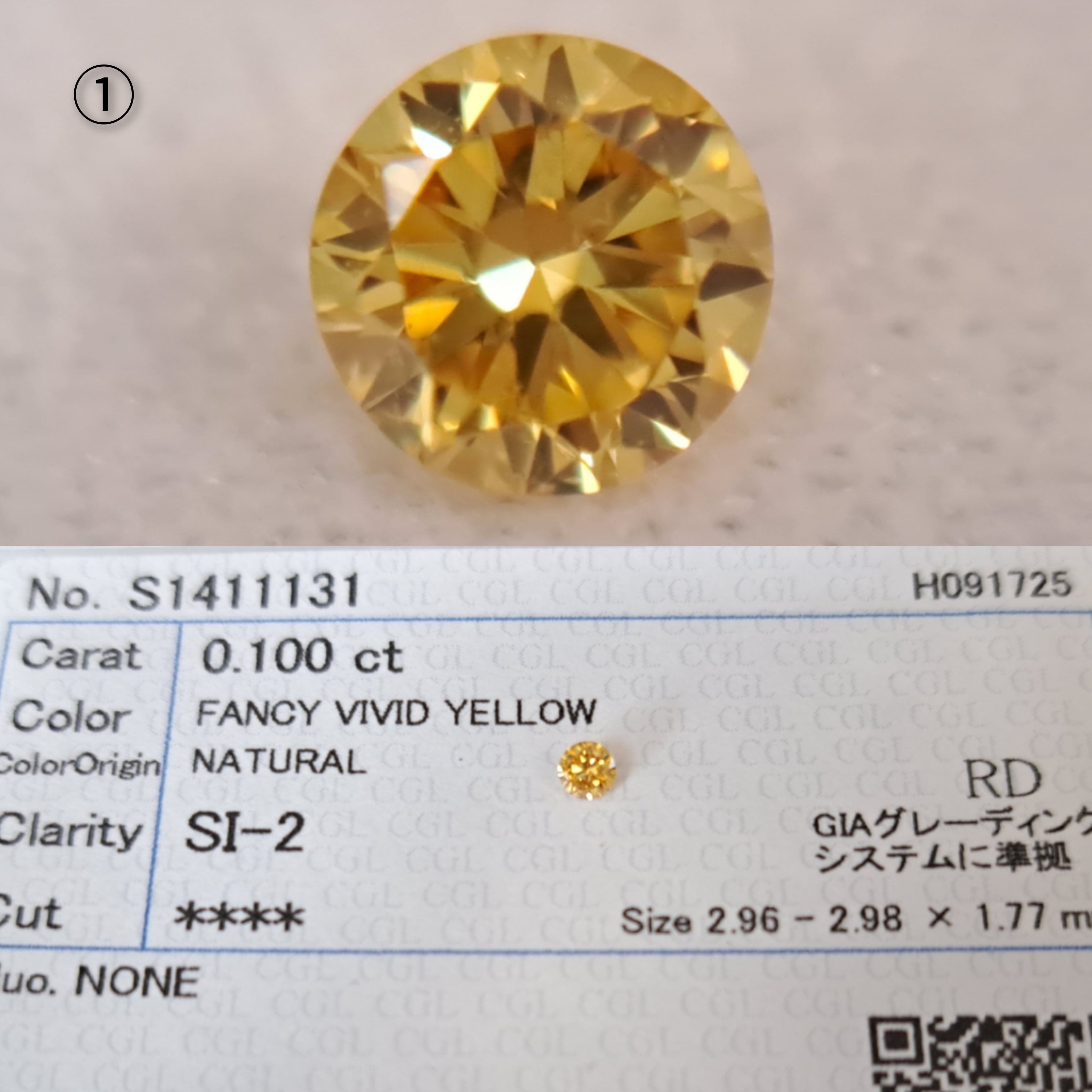 ①0.100ct fancy vivid yellow SI2