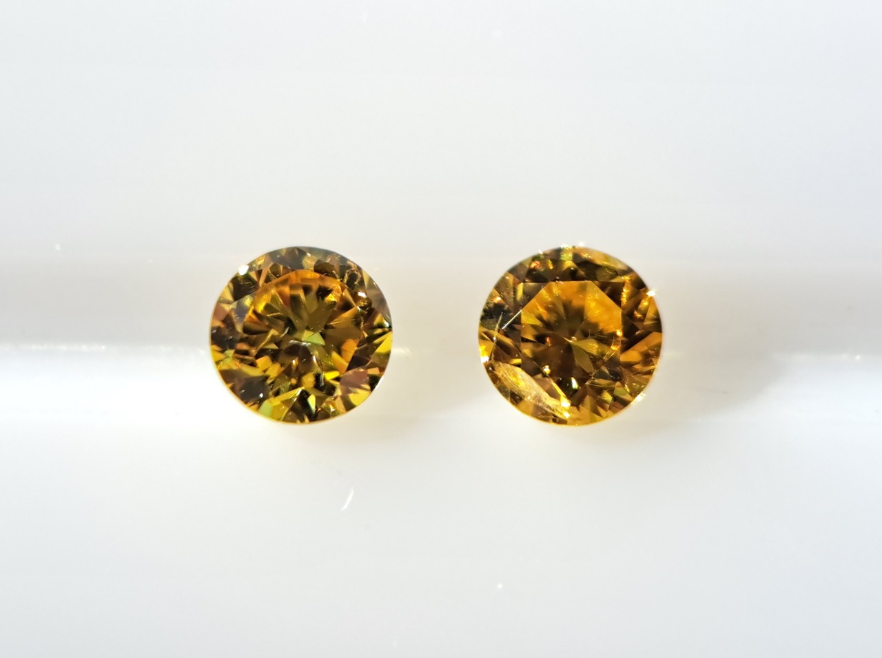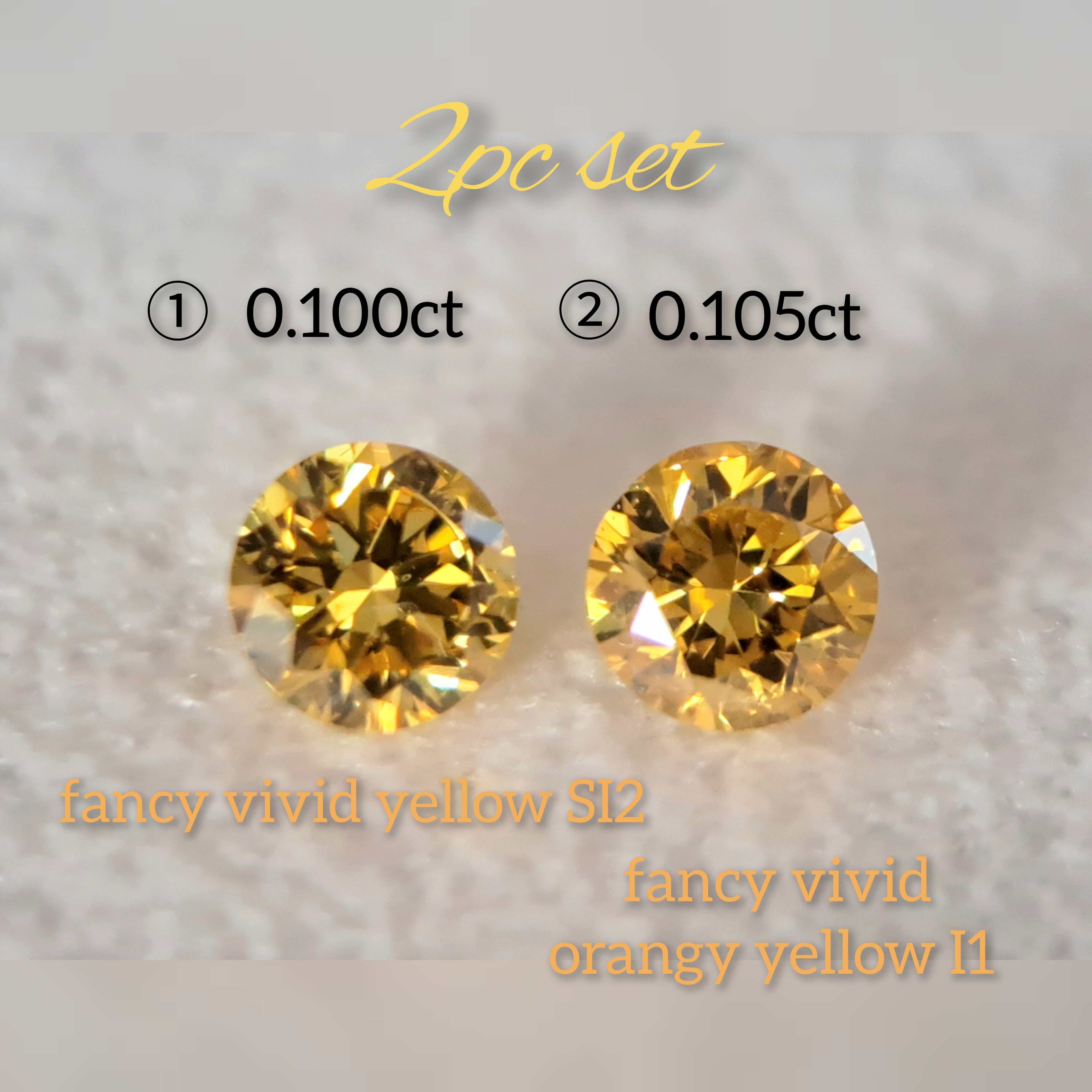 【商品名】イエローダイヤモンドルース2石ペアセット(オレンジ系) 0.100ct fancy vivid yellow SI2 / 0.105ct fancy vivid orangy yellow I1(CGL)