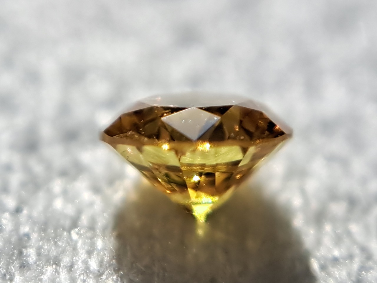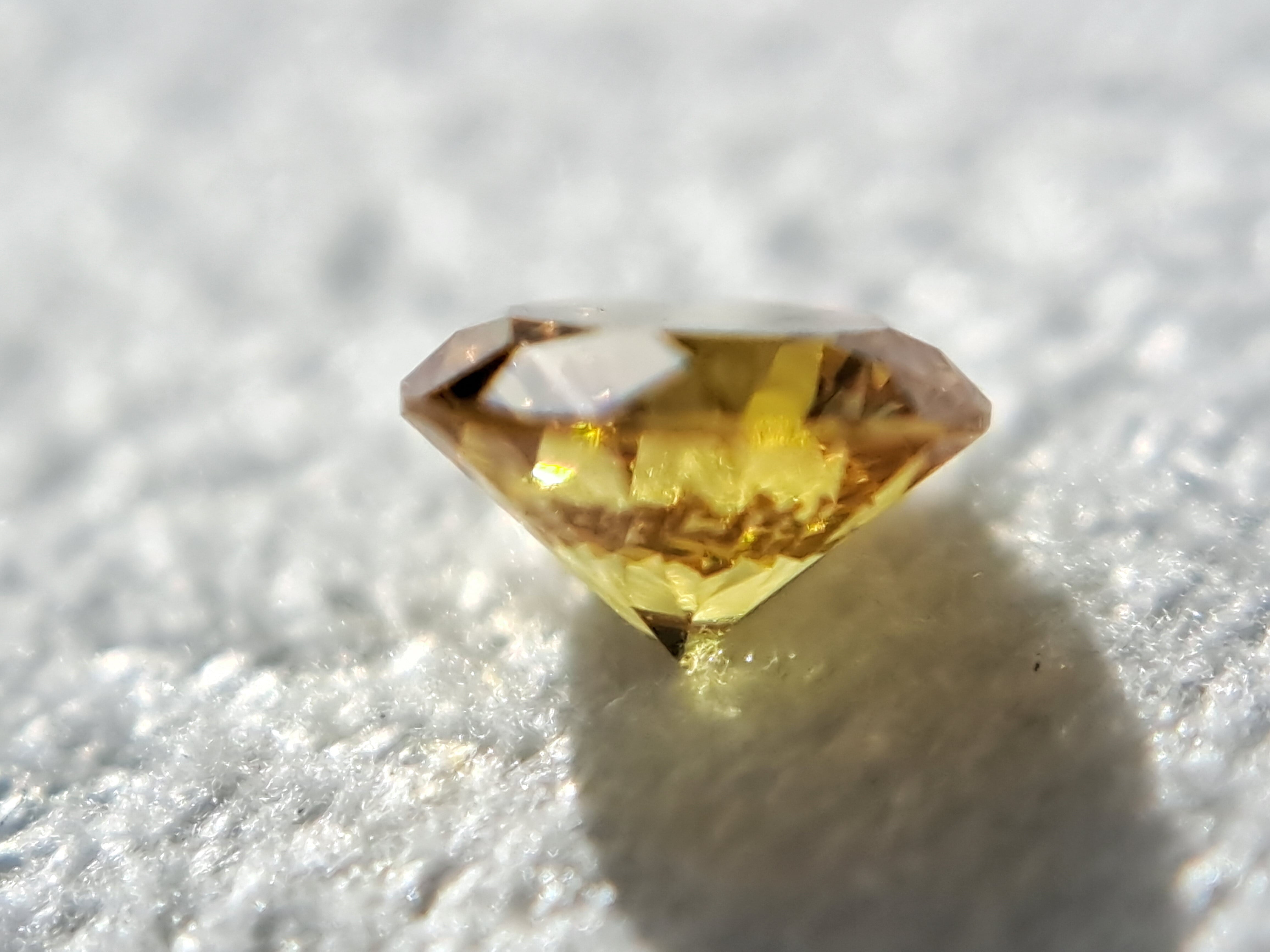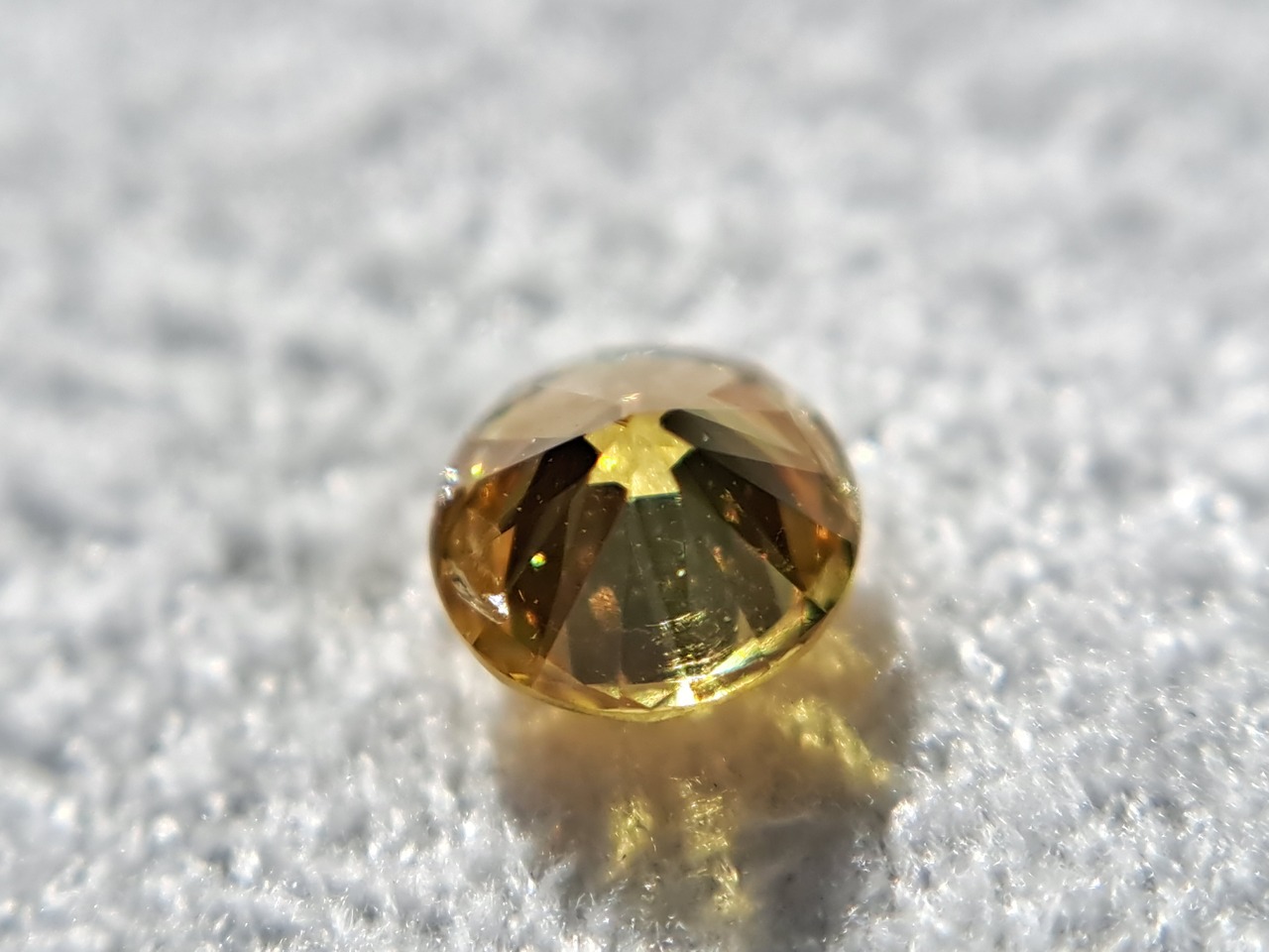 センターに走る傷でないためさほど美観を損ねることなく大半クリアで、とても鮮やかなオレンジ系イエローです。