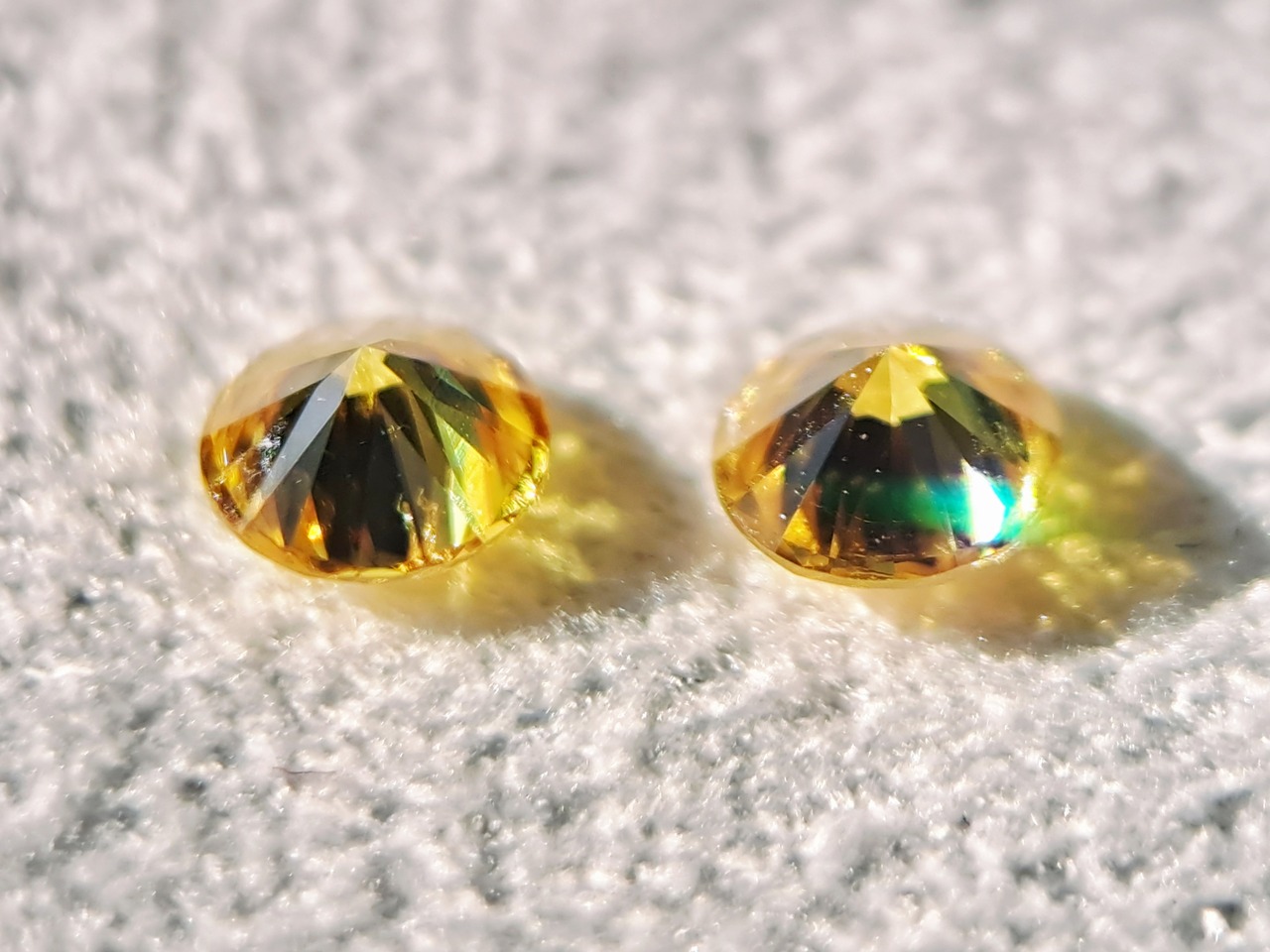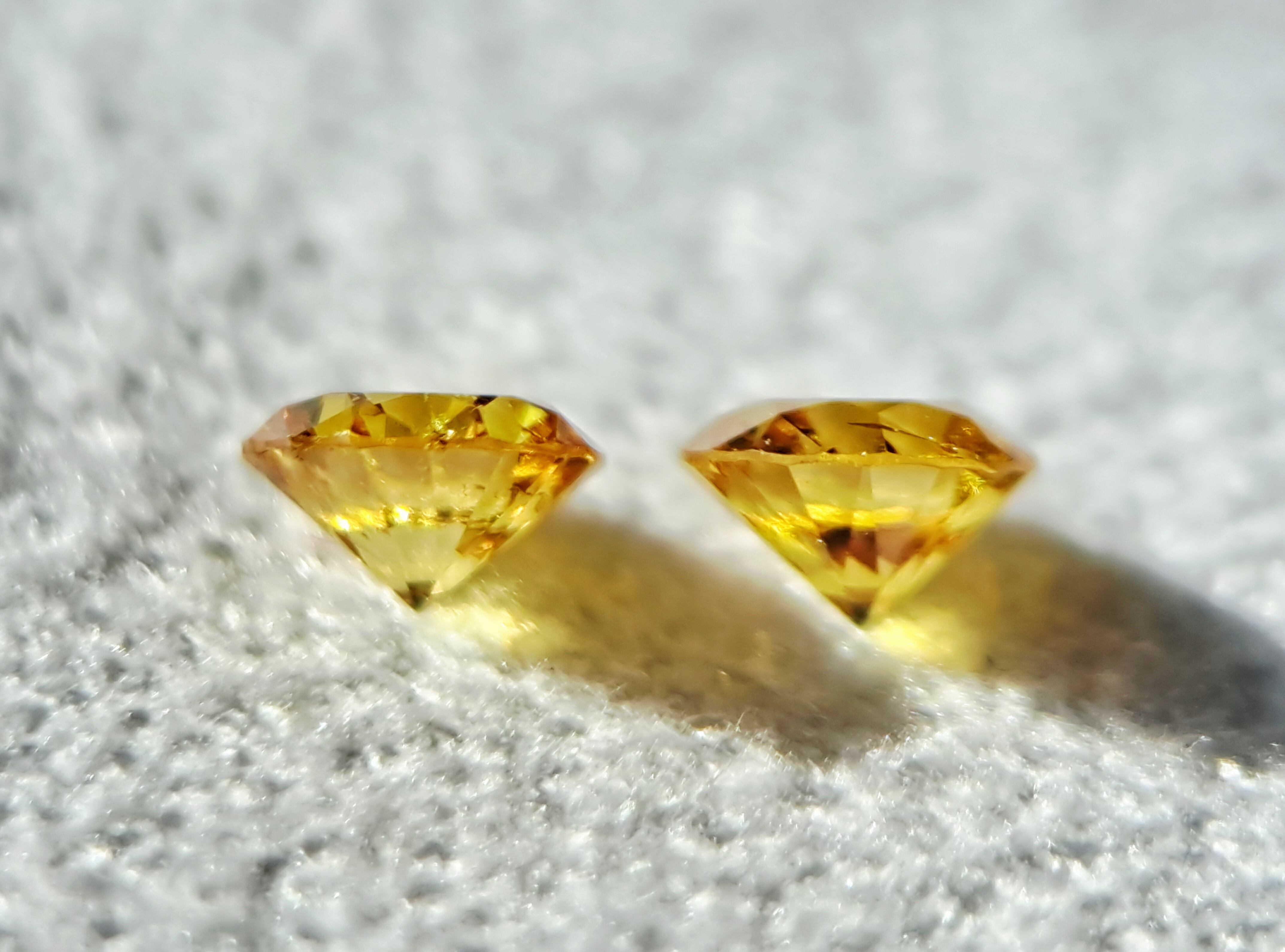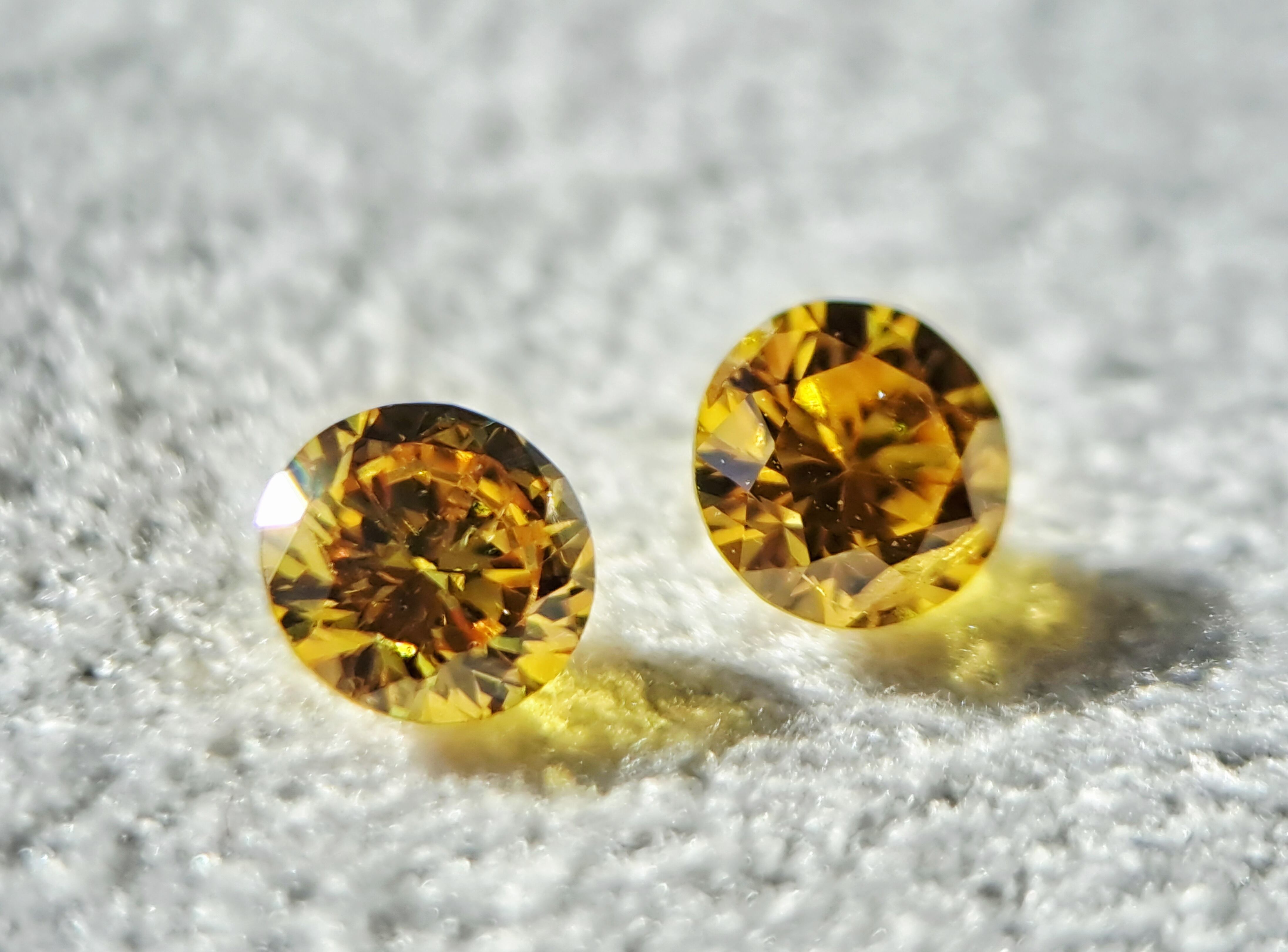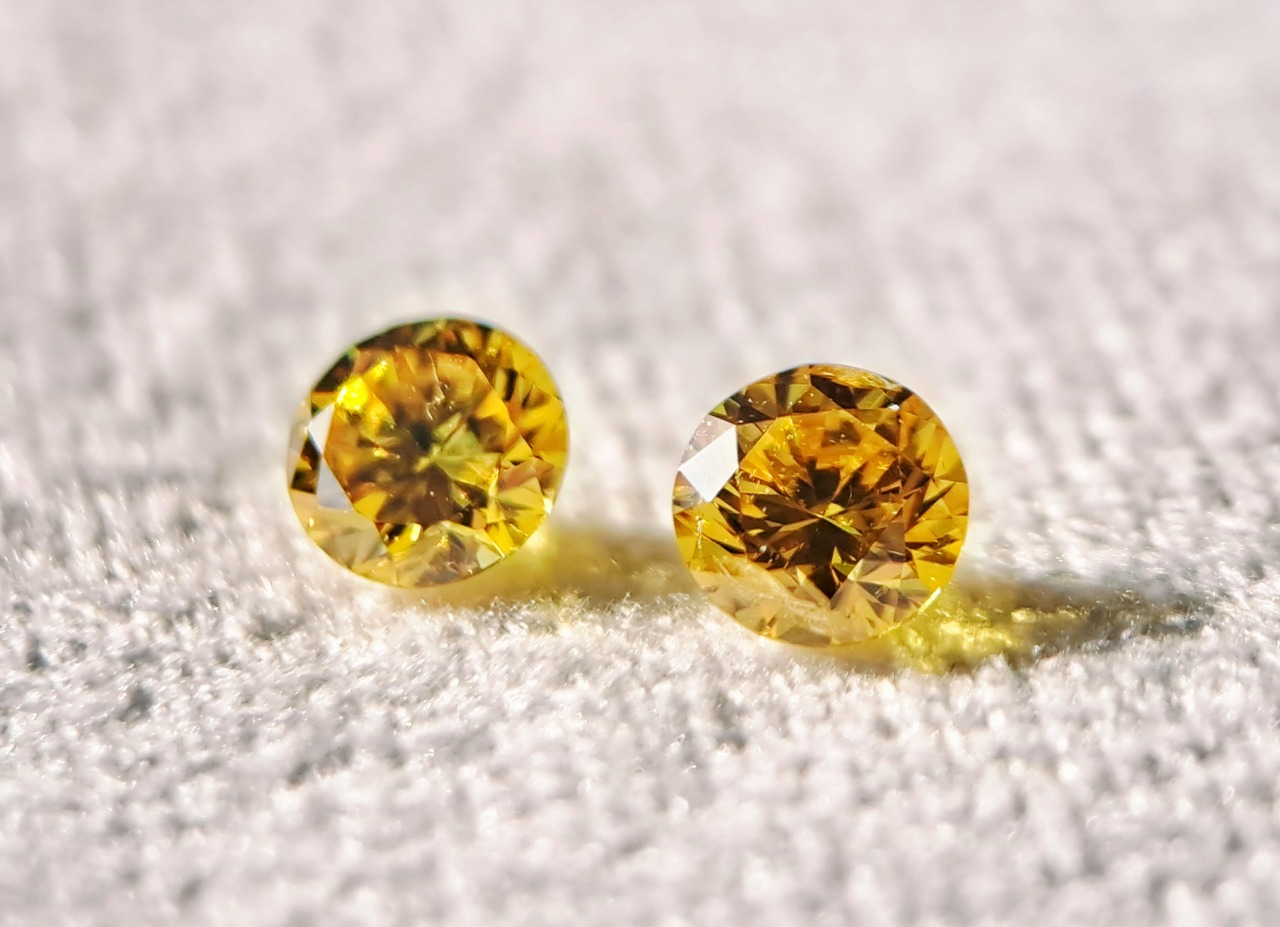 イエローダイヤモンドルース2石ペアセット(オレンジ系) 0.100ct fancy vivid yellow SI2 / 0.105ct fancy vivid orangy yellow I1(CGL)