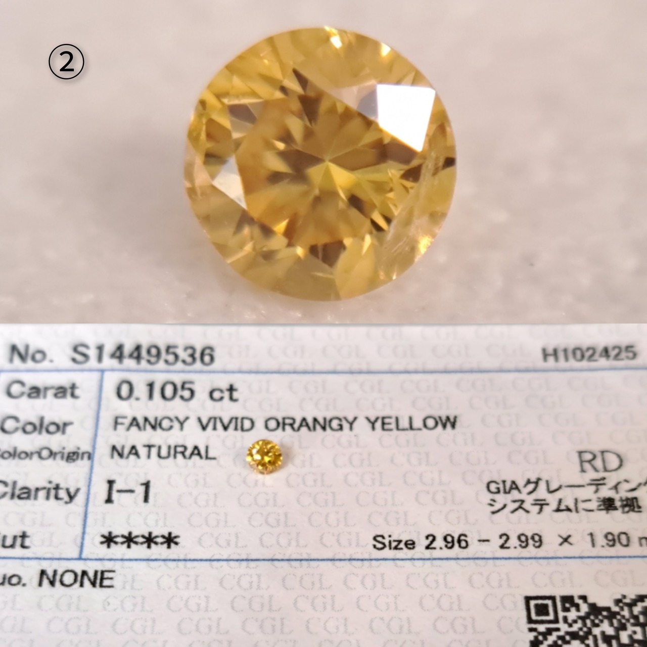 ②0.105ct fancy vivid orangy yellow I1