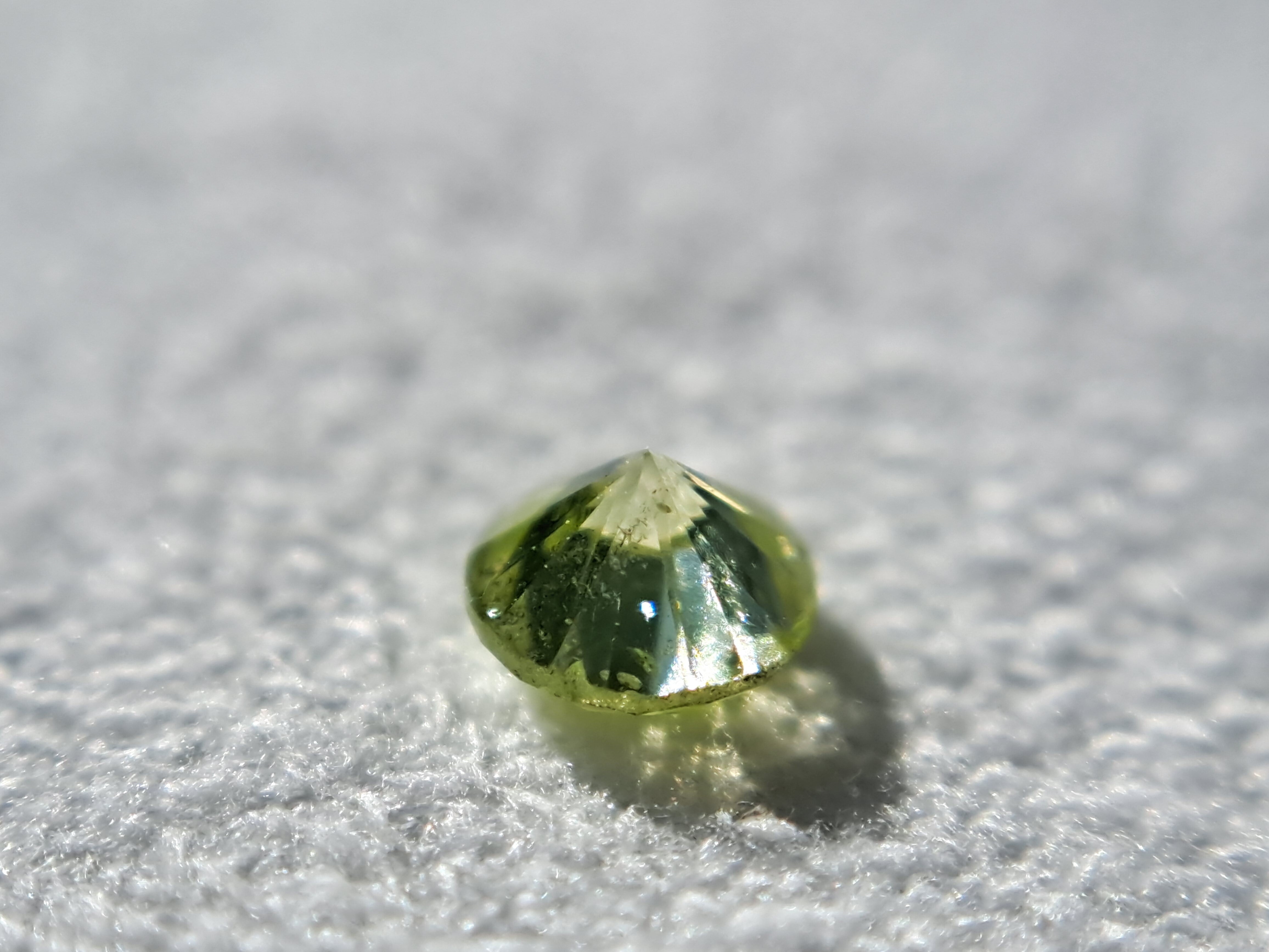 微細な傷カーボン、それらは拡大で漸くわかる程度。肉眼で傷カーボンは認識できず傍目にとても美しい萌黄緑色がキラキラと煌めきます。