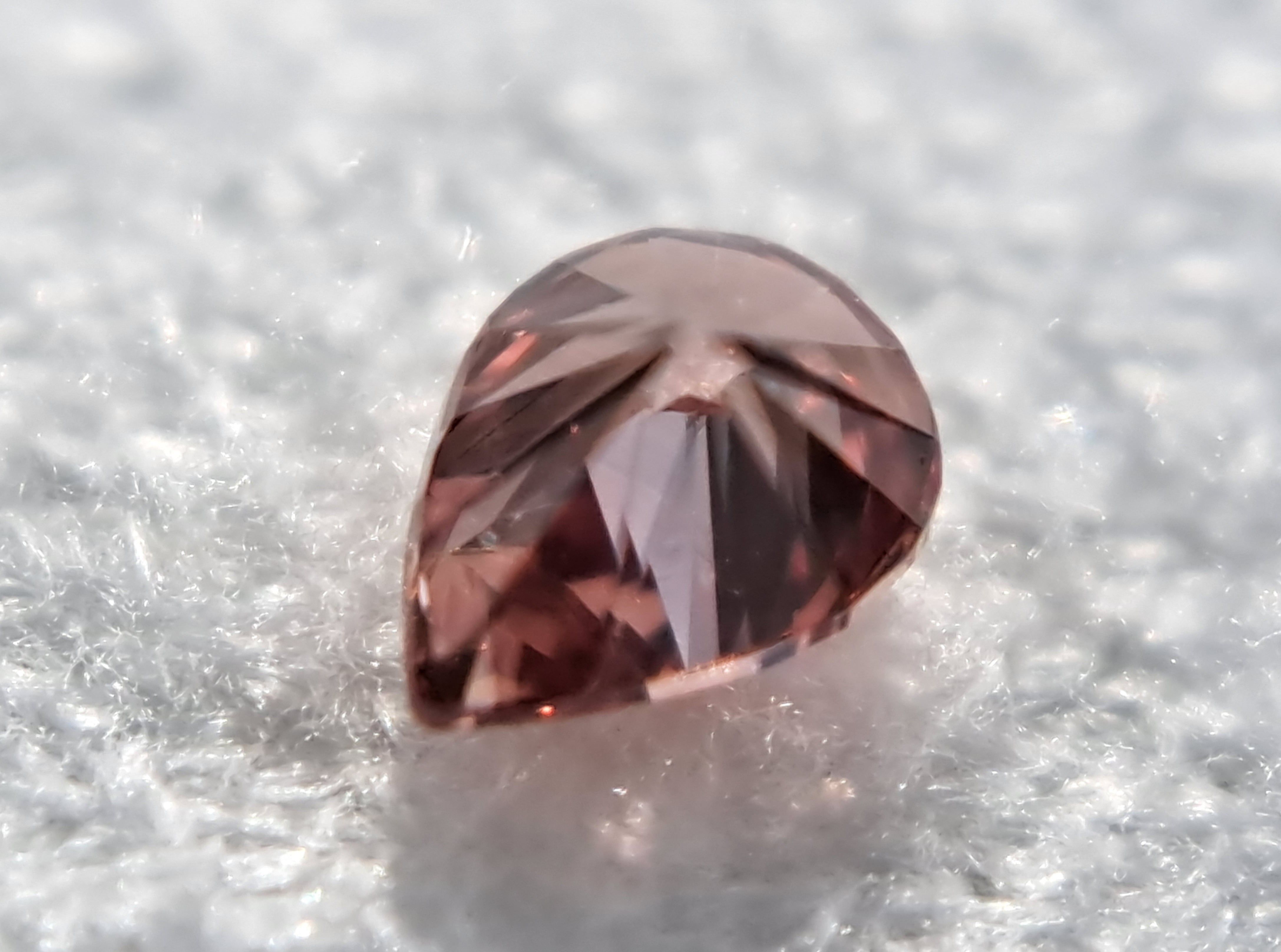 ※画像16枚目に、現在販売中の「赤みの強いピンク」を3点並べてみました。一番左は0.056ct fancy intense pink I1です。センターのこちら0.036ctが如何に濃く赤みのある石かお分かり頂けるのでないでしょうか。