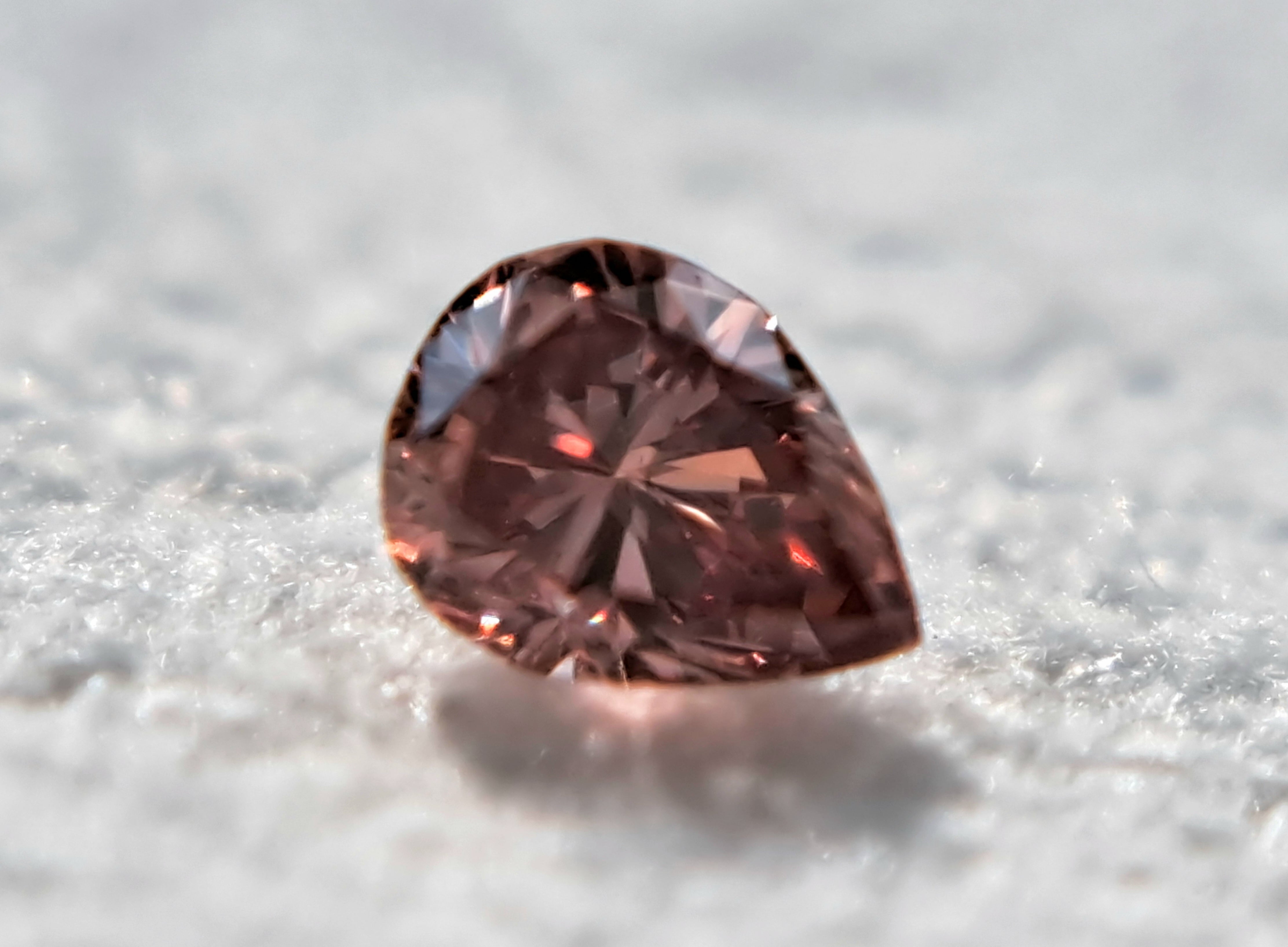 小粒ながら、一目で明確に「赤」を感じるダイヤモンドです。