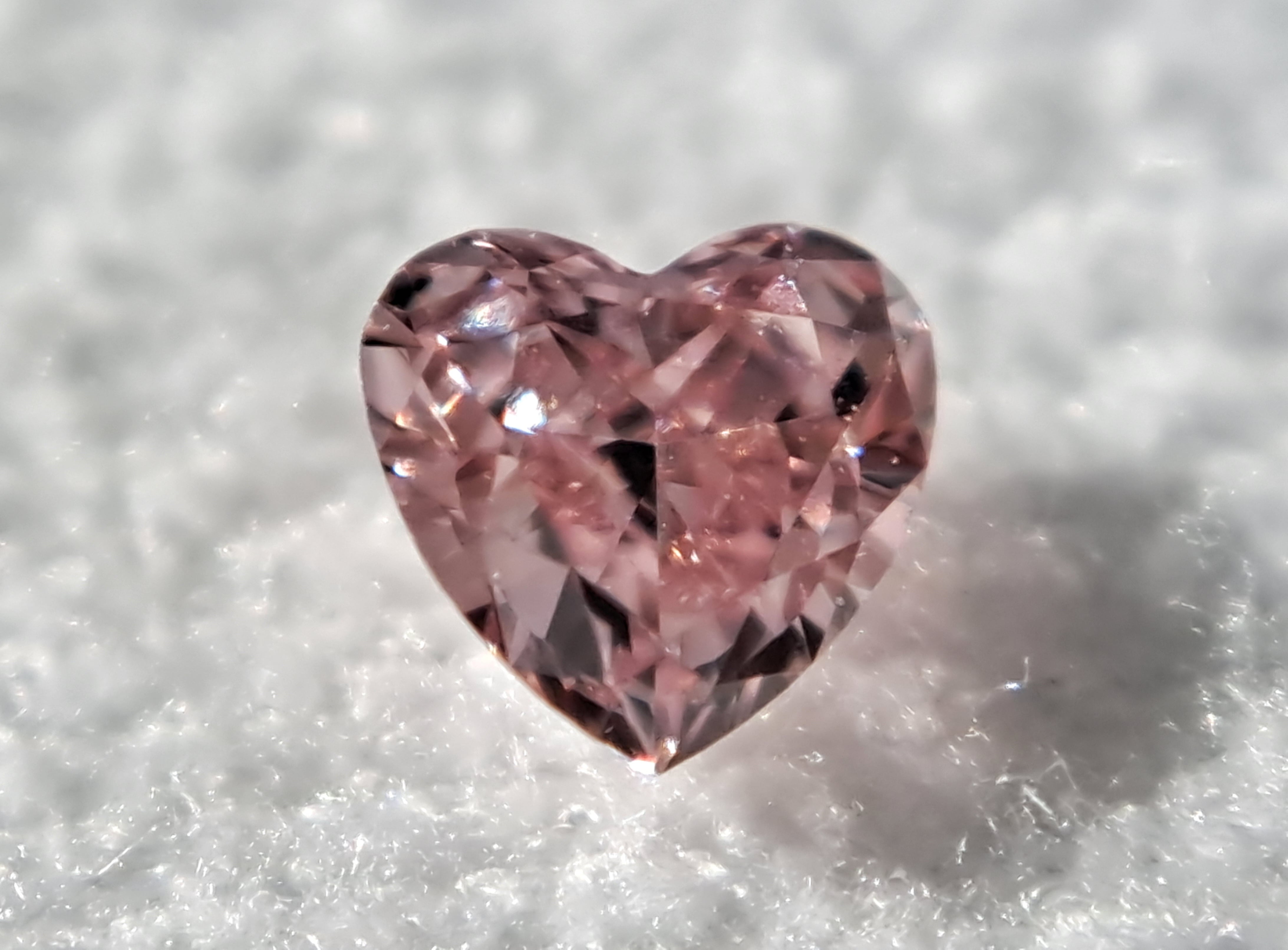 ピンクと一口に言えど、その色調が様々であることは既に皆さんご存知のとおりに思われますが、おそらくこちら、「ピンクダイヤモンドといえば、この色!!」と誰もがイメージする明るく確り鮮やかなピンクカラー。