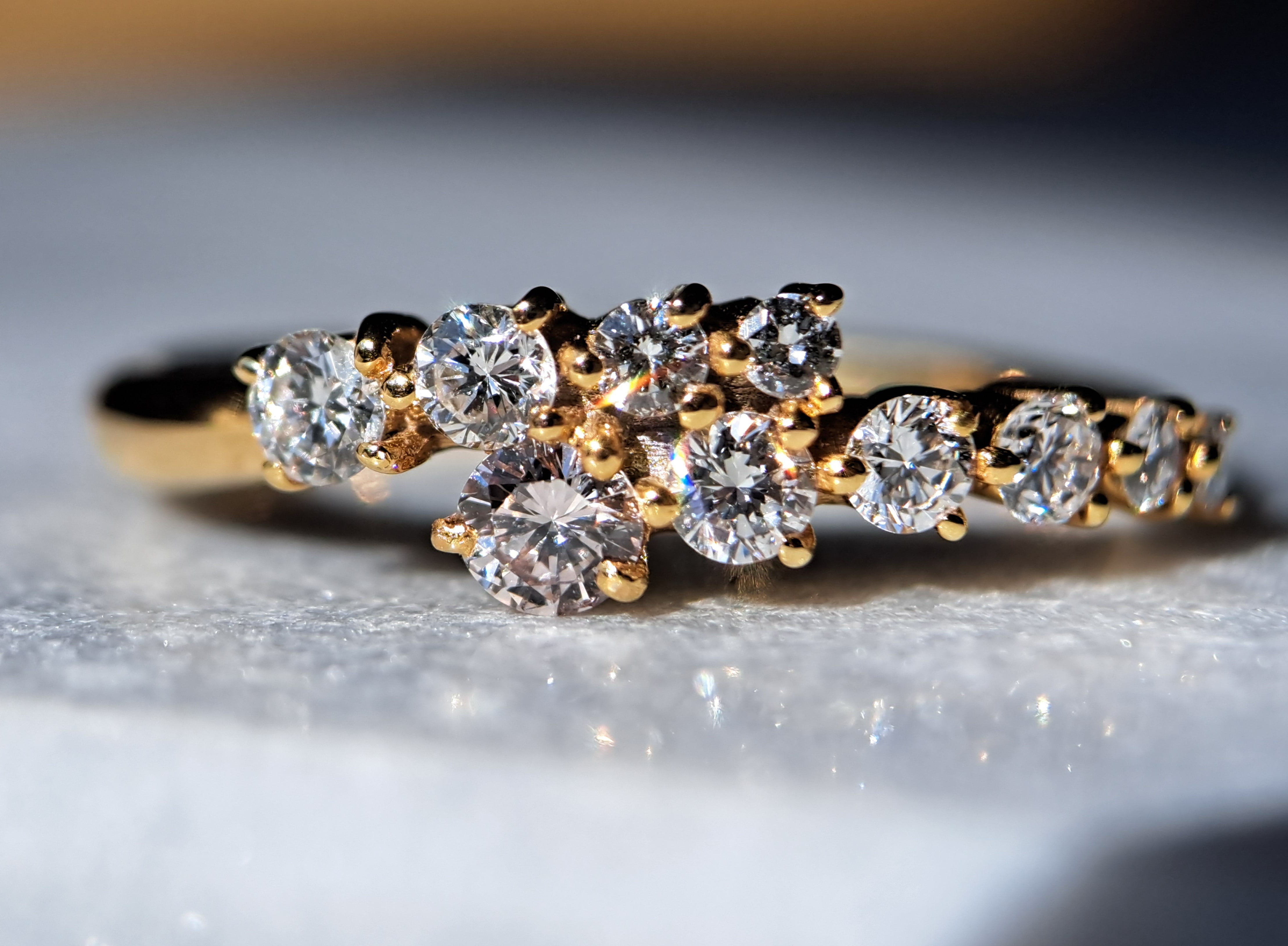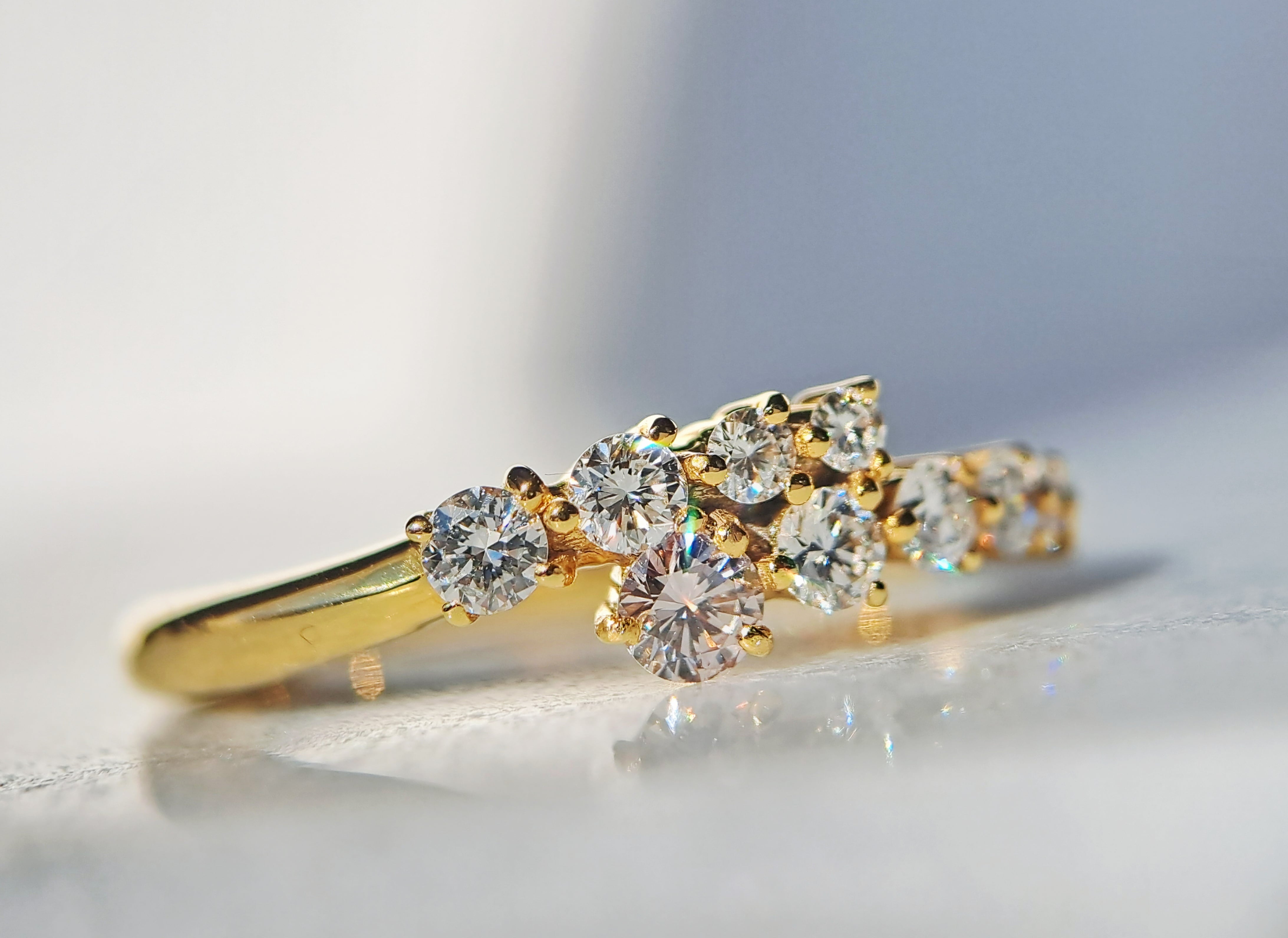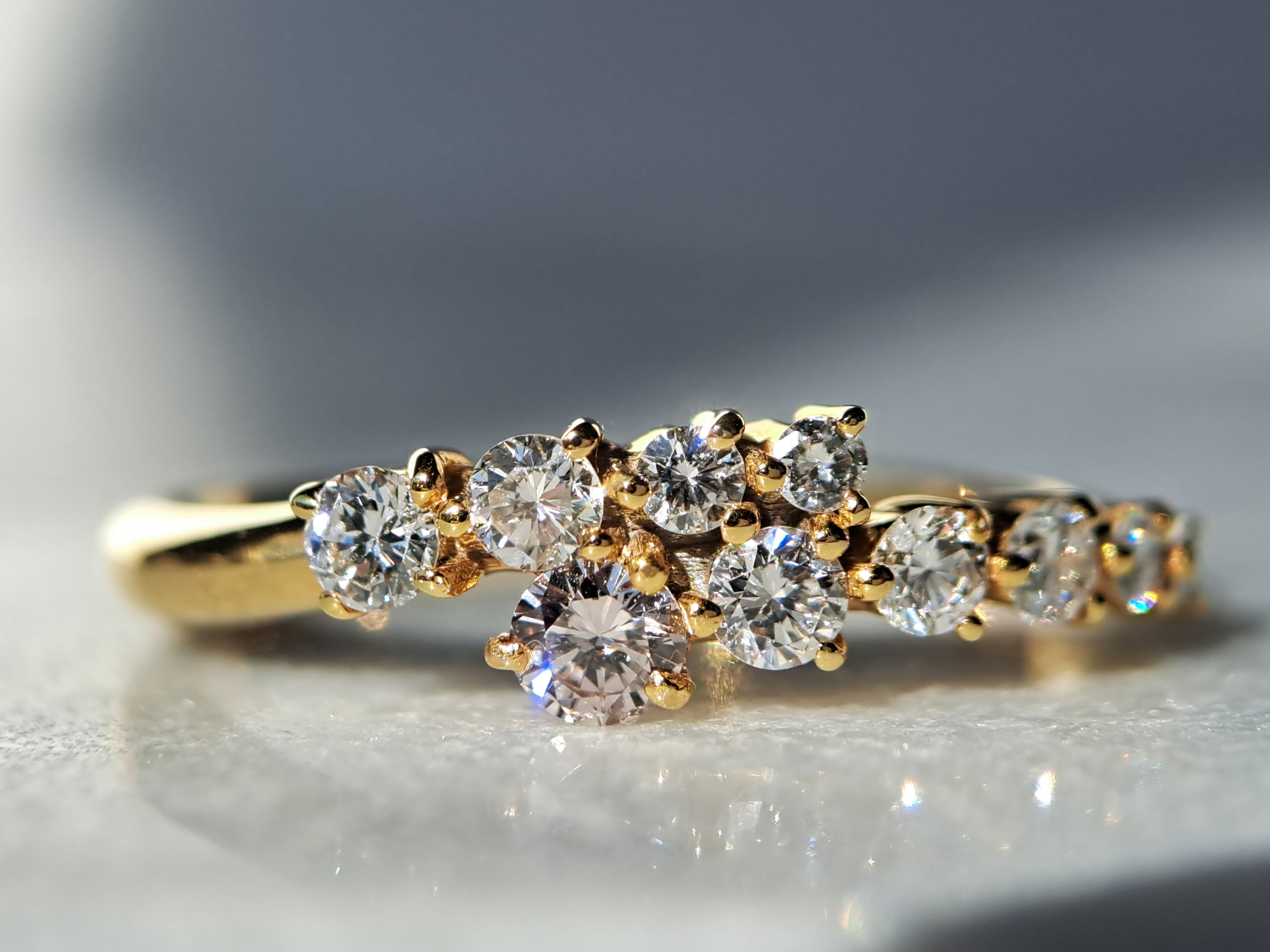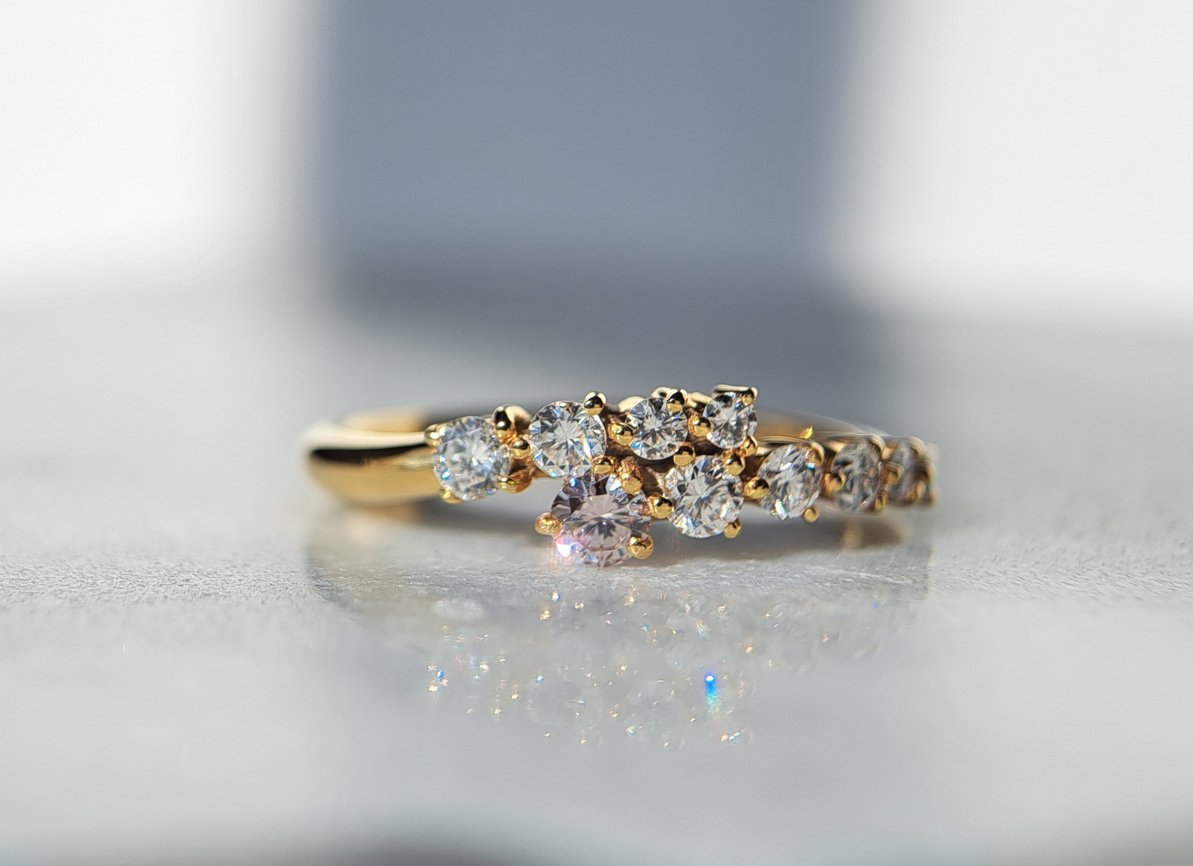 美しく輝きの良いカラーレスの存在感あるダイヤモンドが9石(0.33ct)。