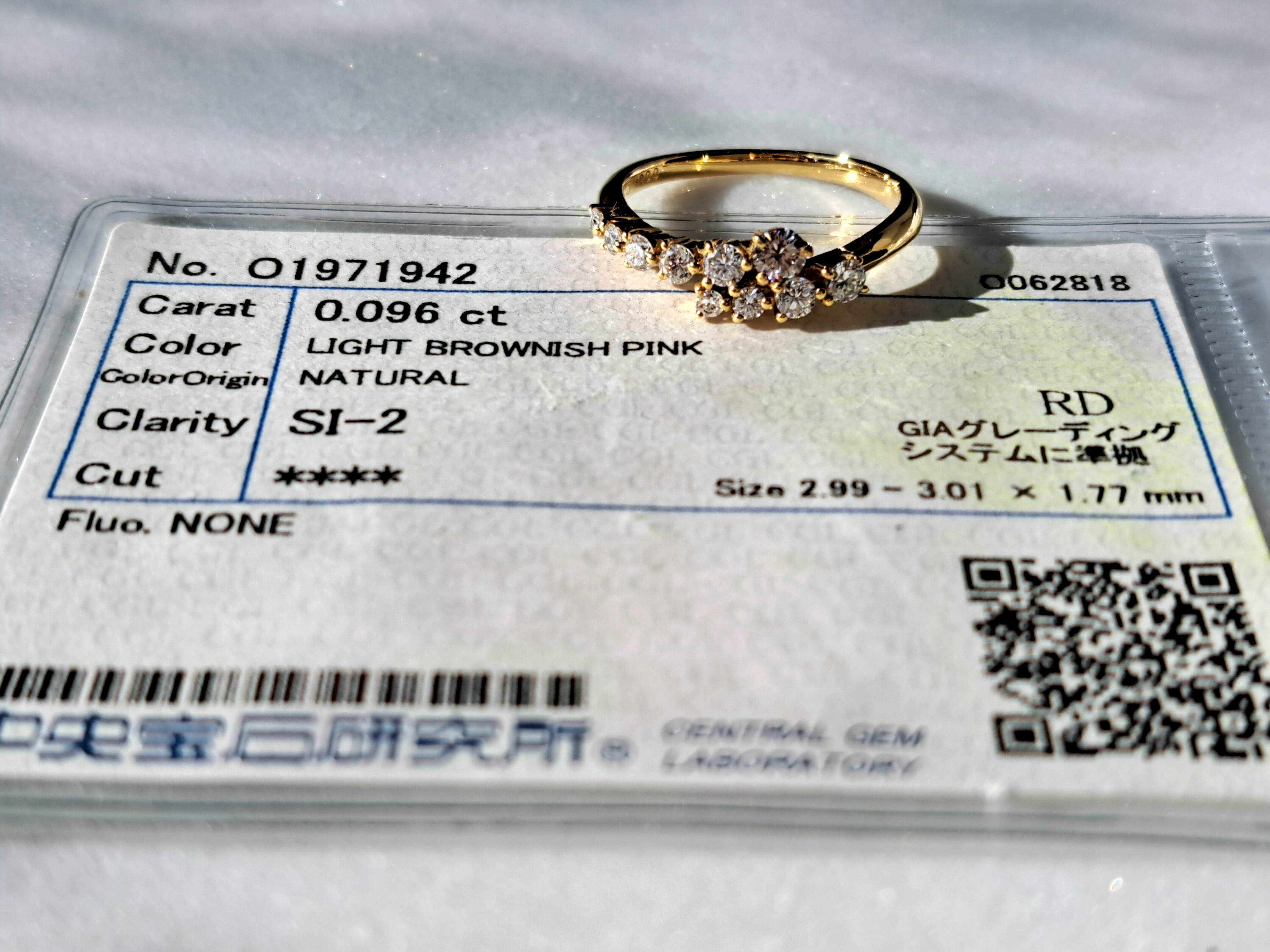 ピンクダイヤはlight brownish pink、淡い褐色みピンク評価ですが、褐色みが強い