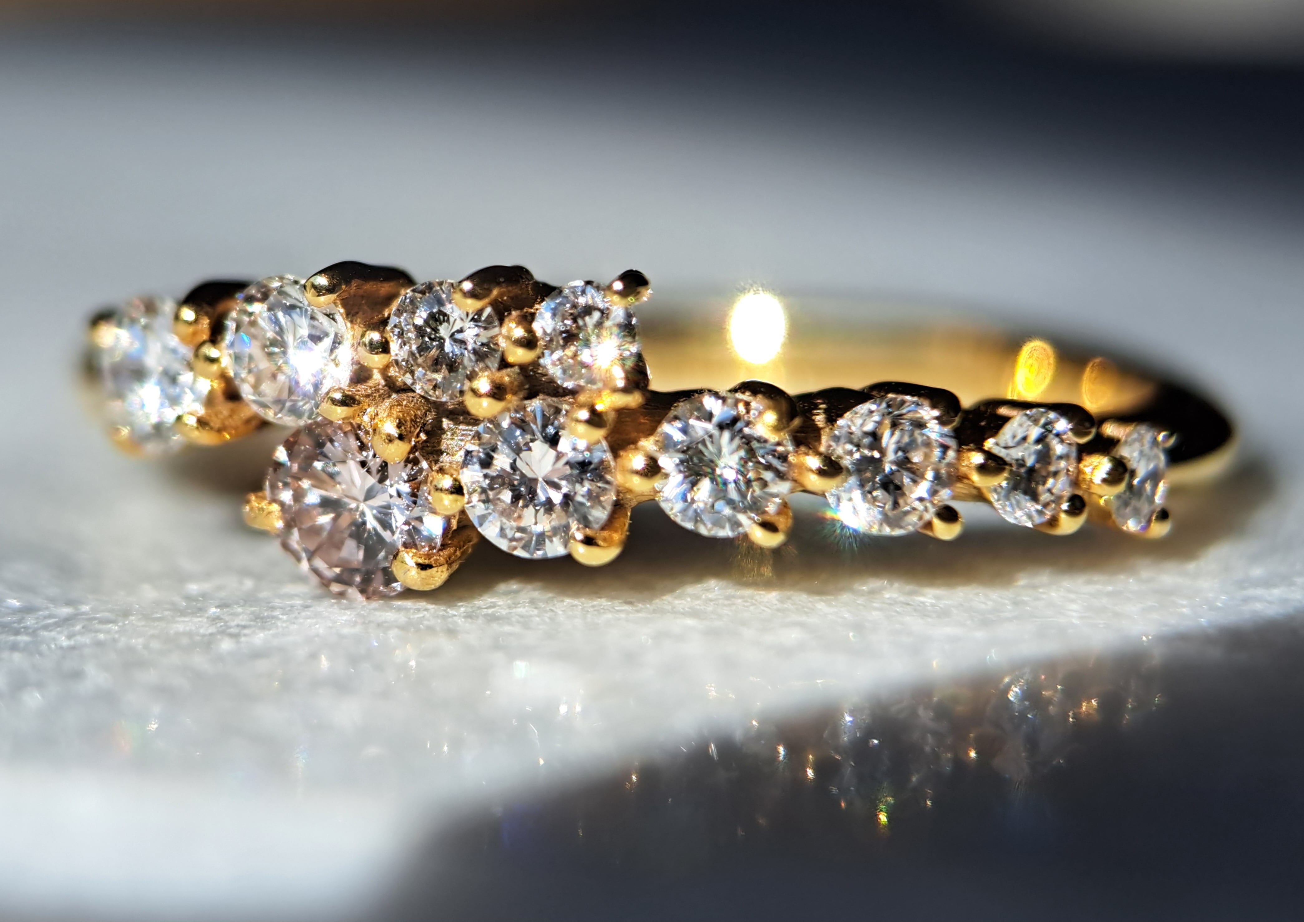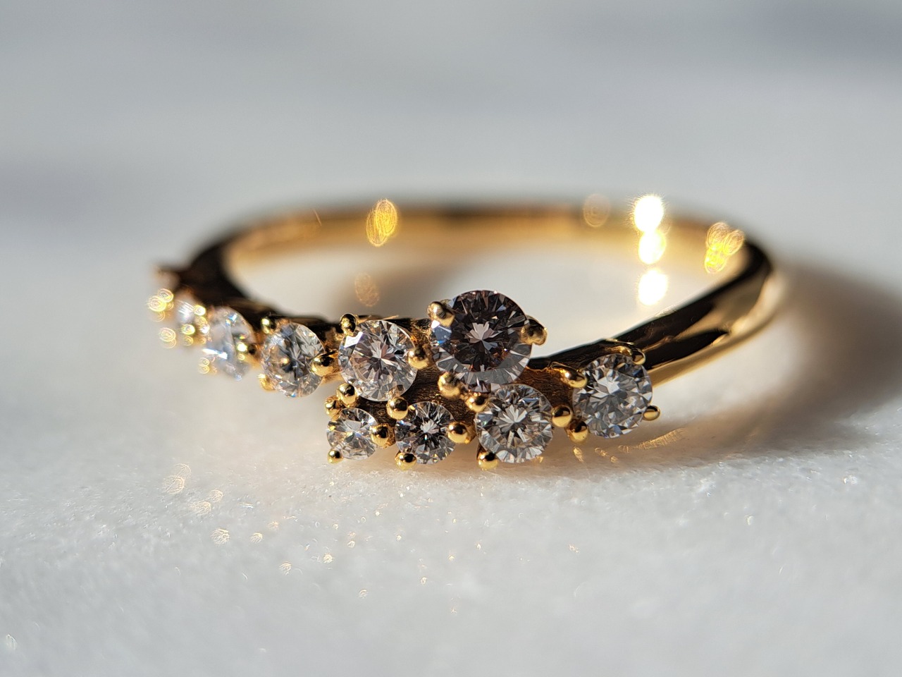 存在感あり、流れるようなダイヤのラインが美しく好きなリングです。