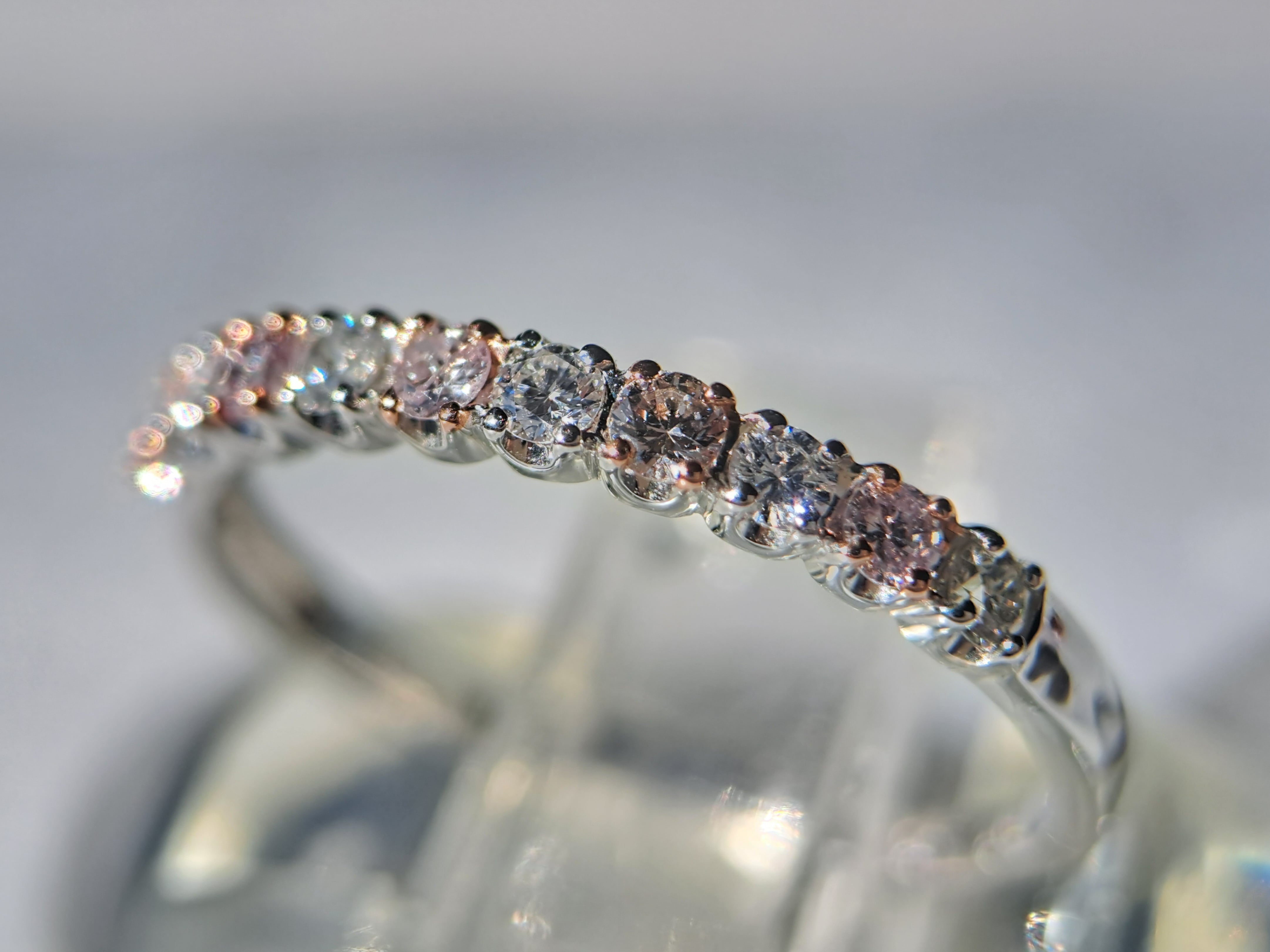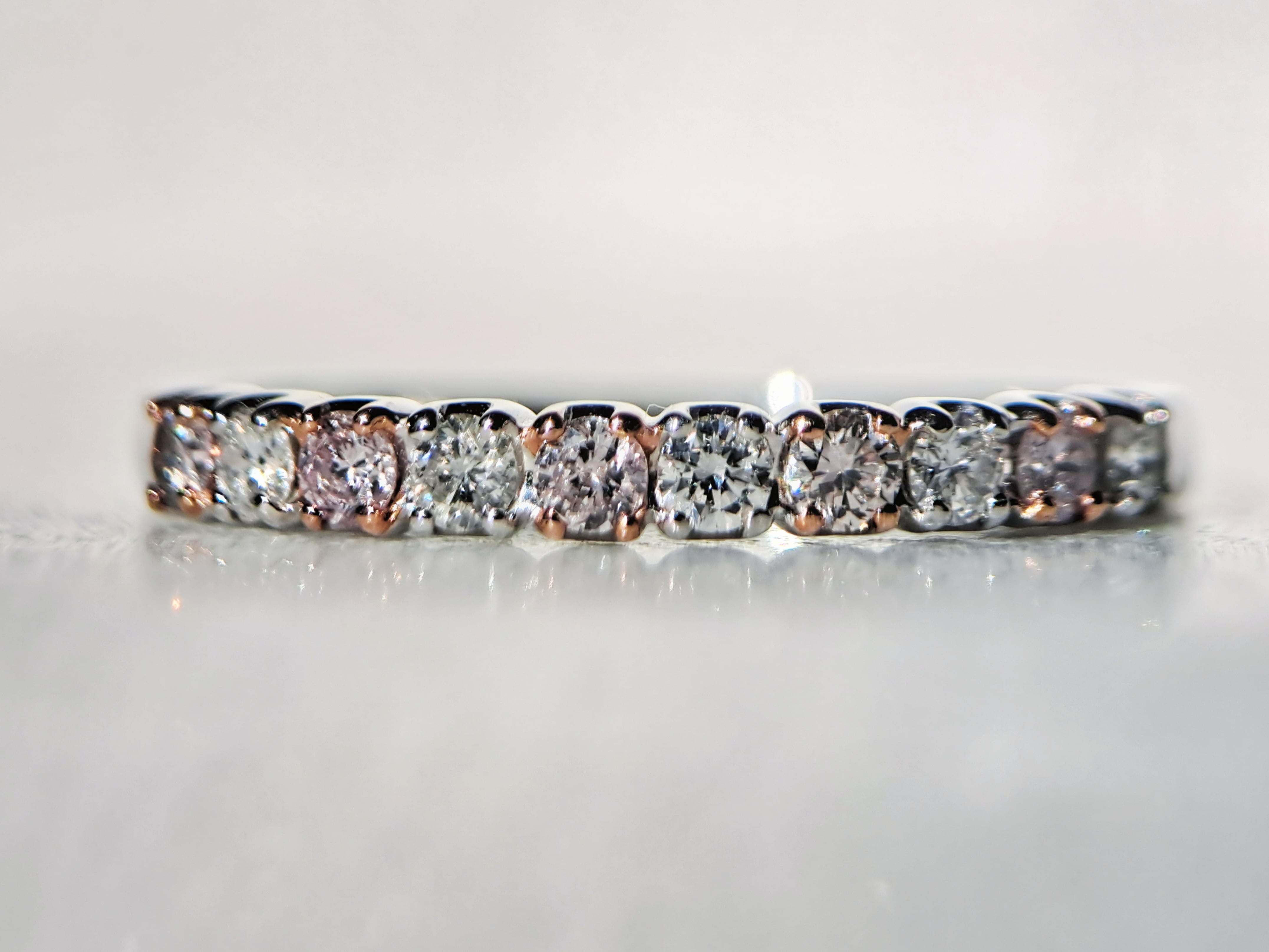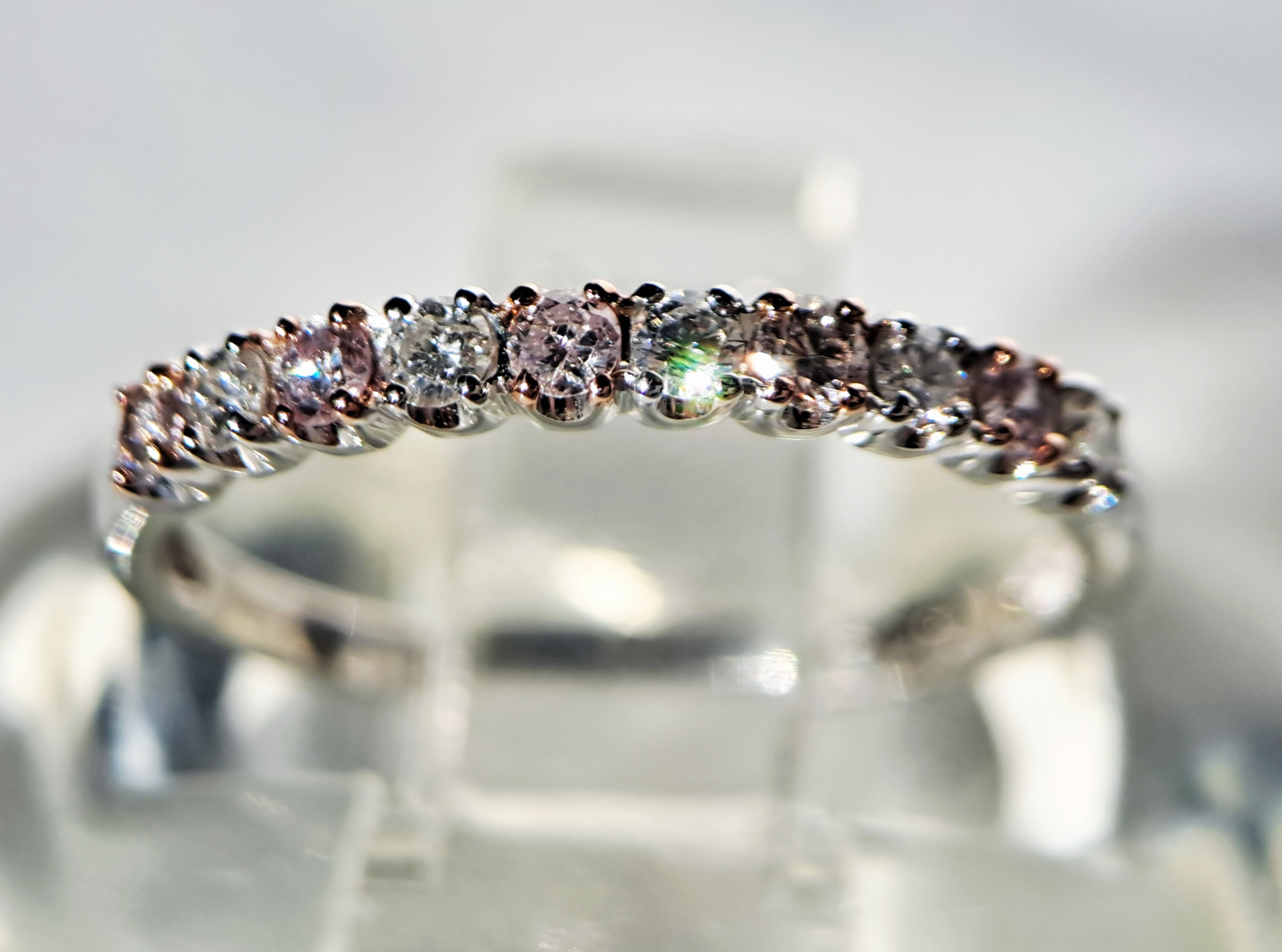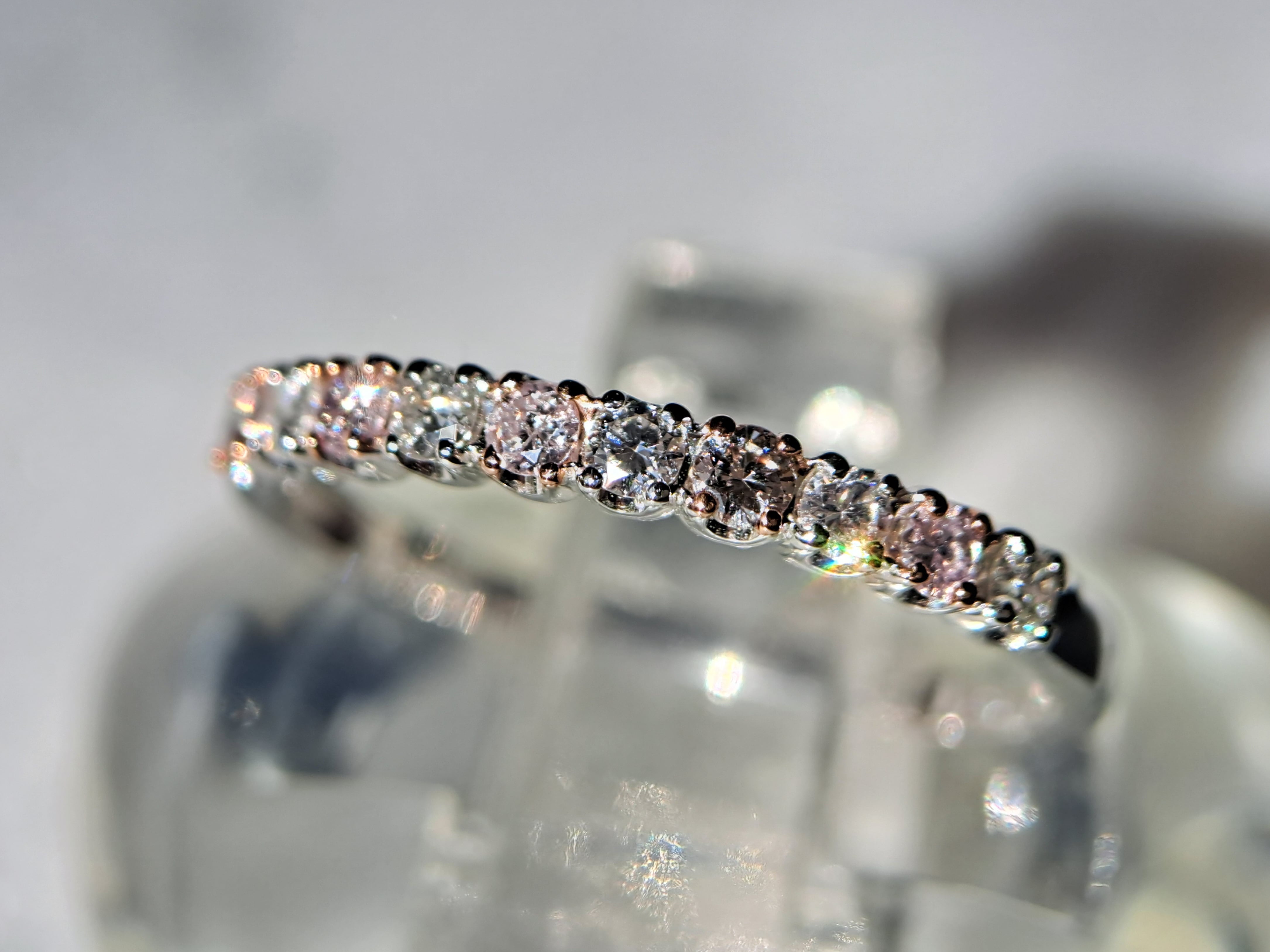 細身のピンクダイヤ&カラーレスのPt950製ハーフエタニティリング。