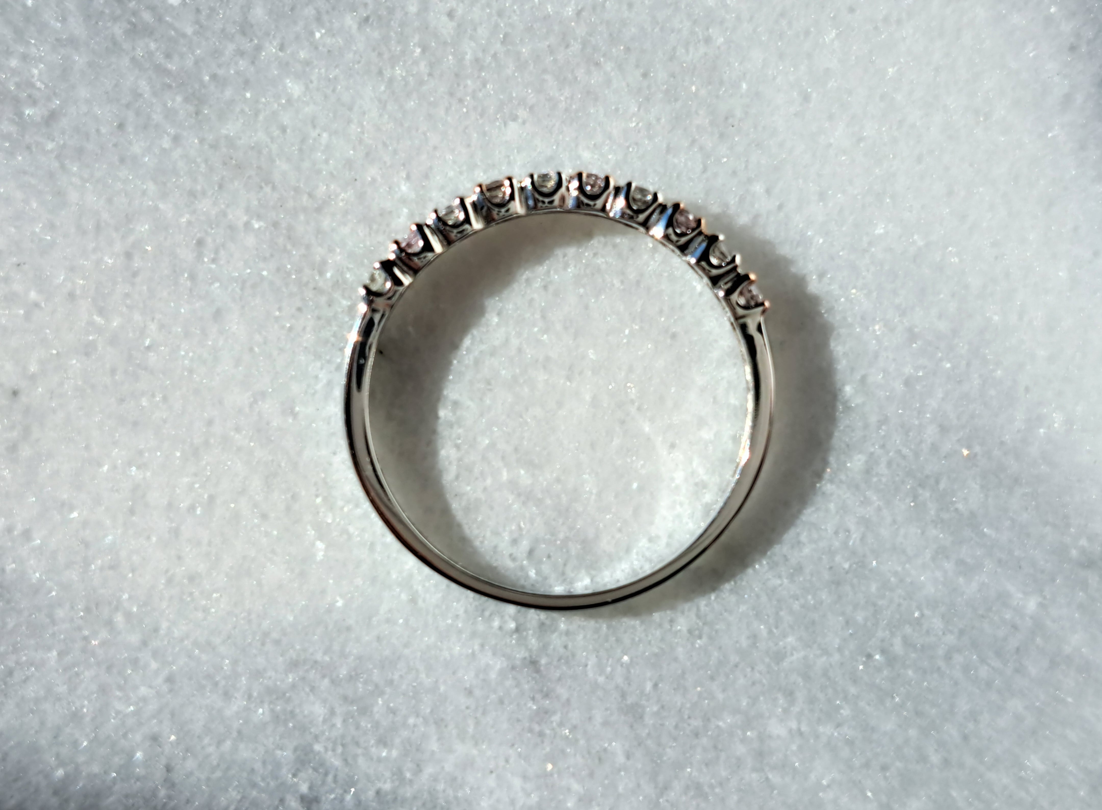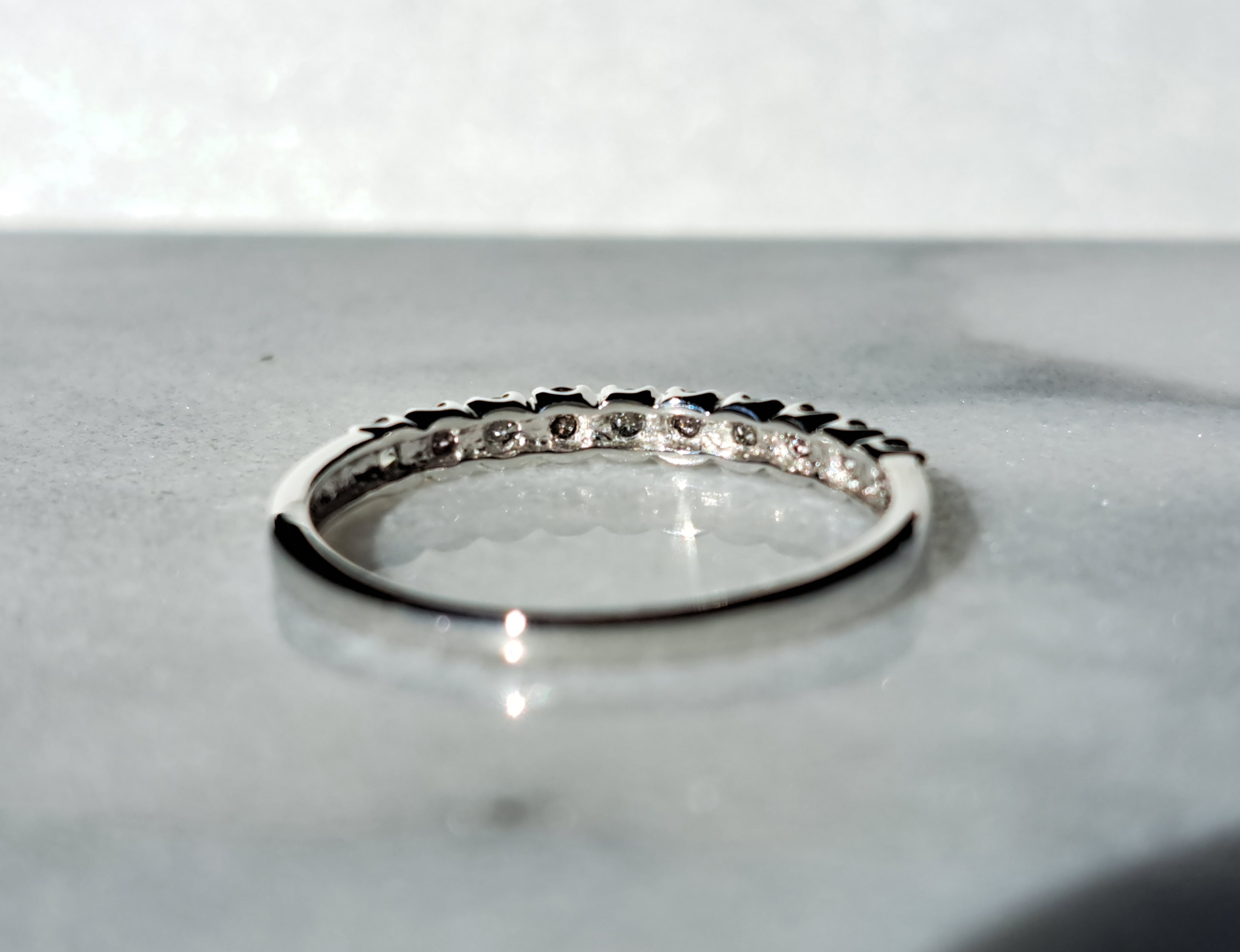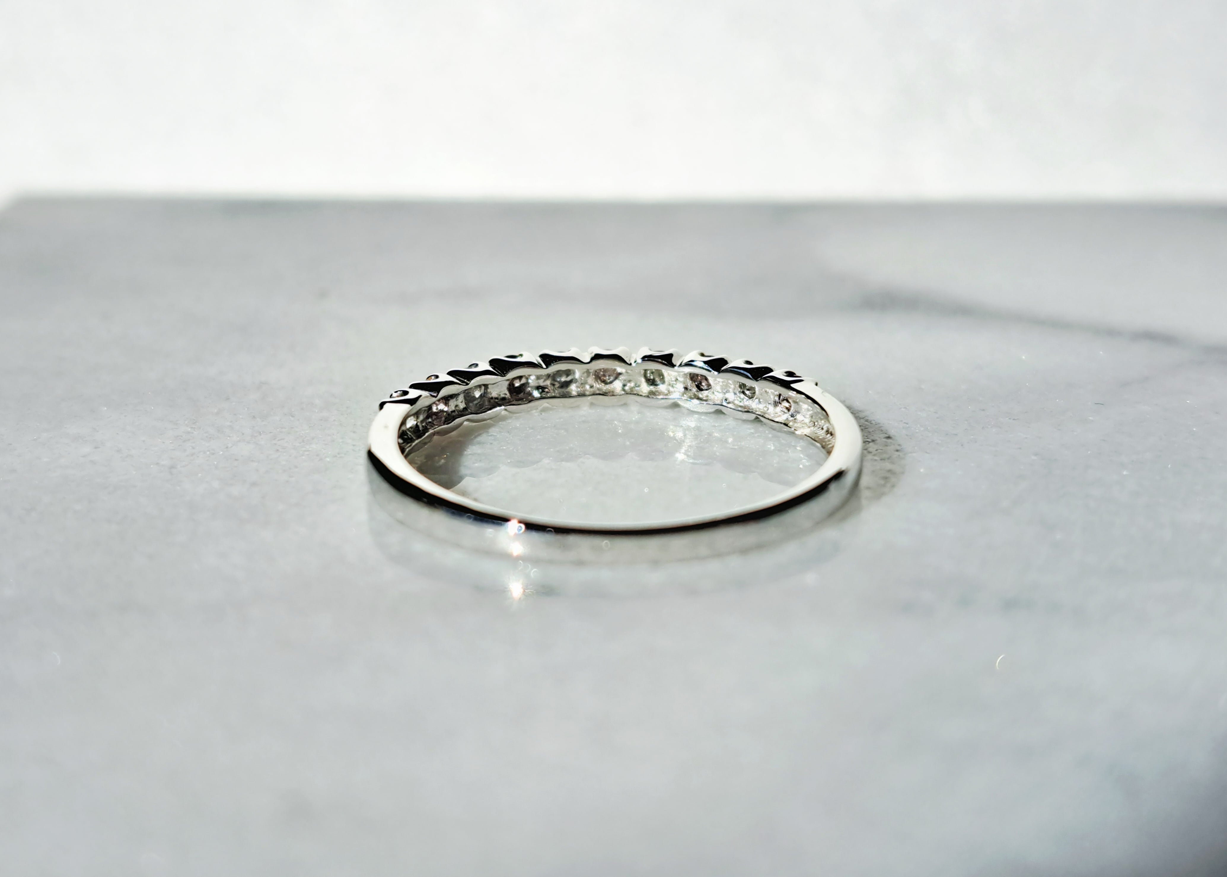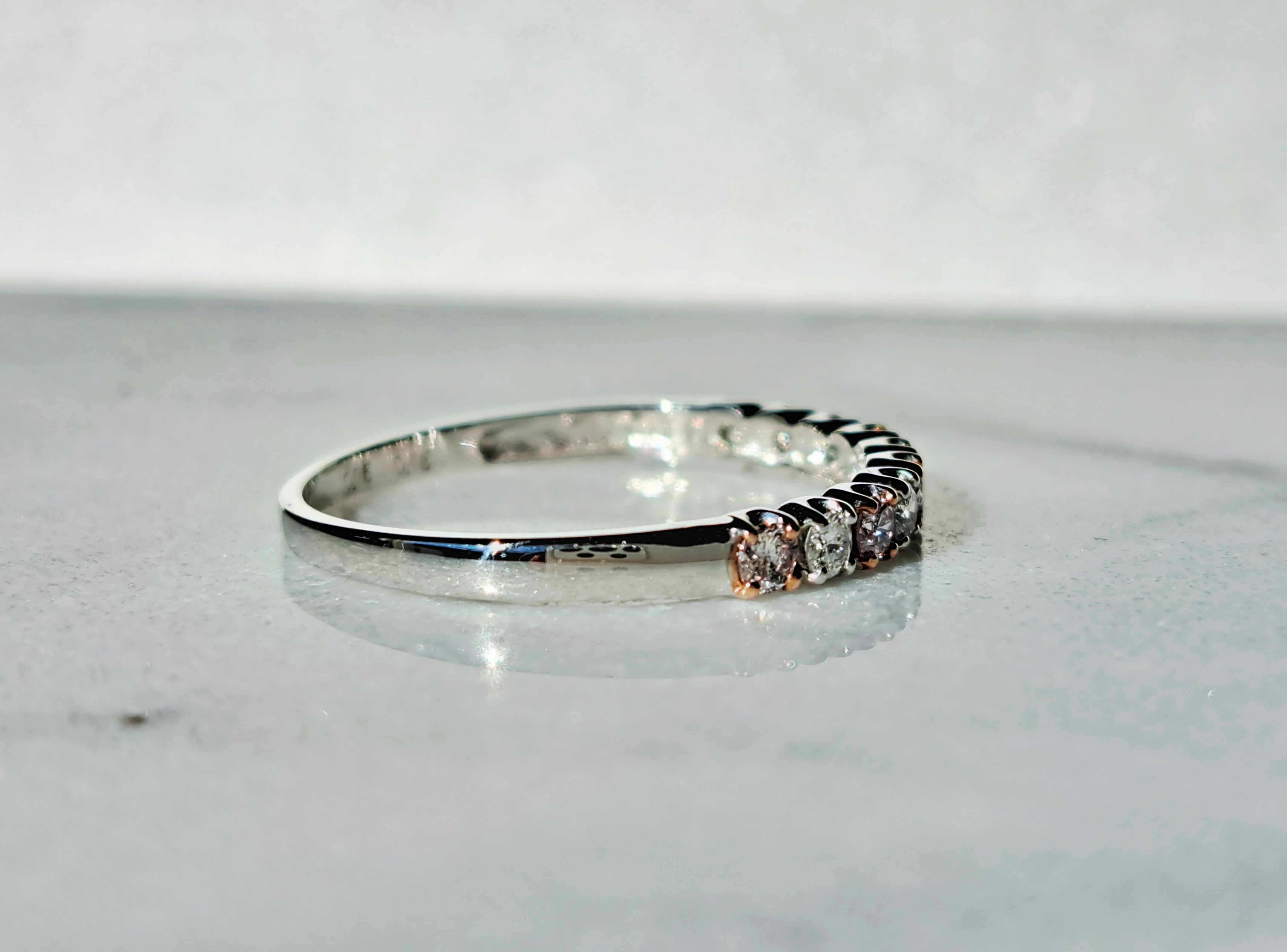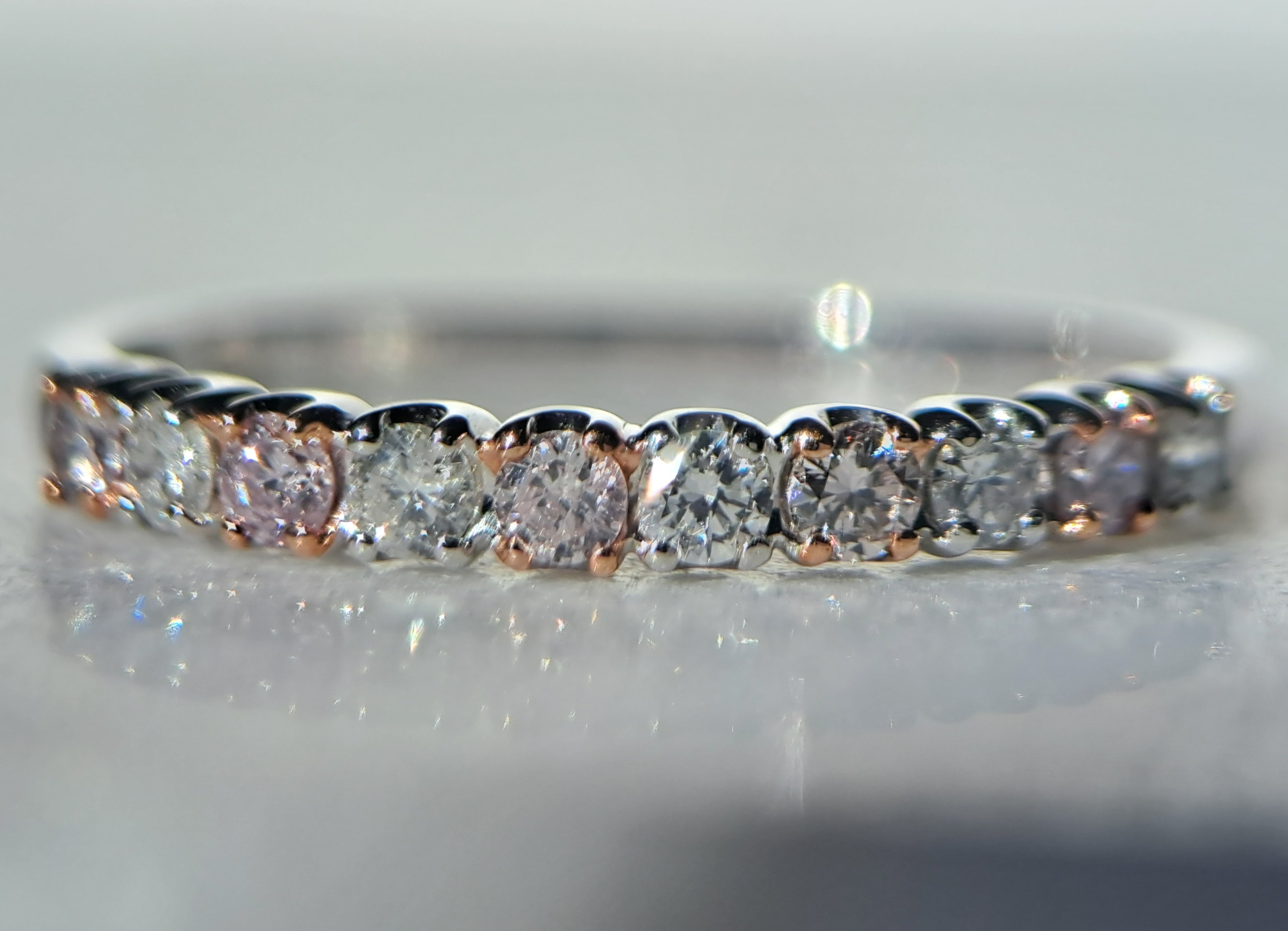 細身のピンクダイヤ&カラーレスのPt950製ハーフエタニティリング。