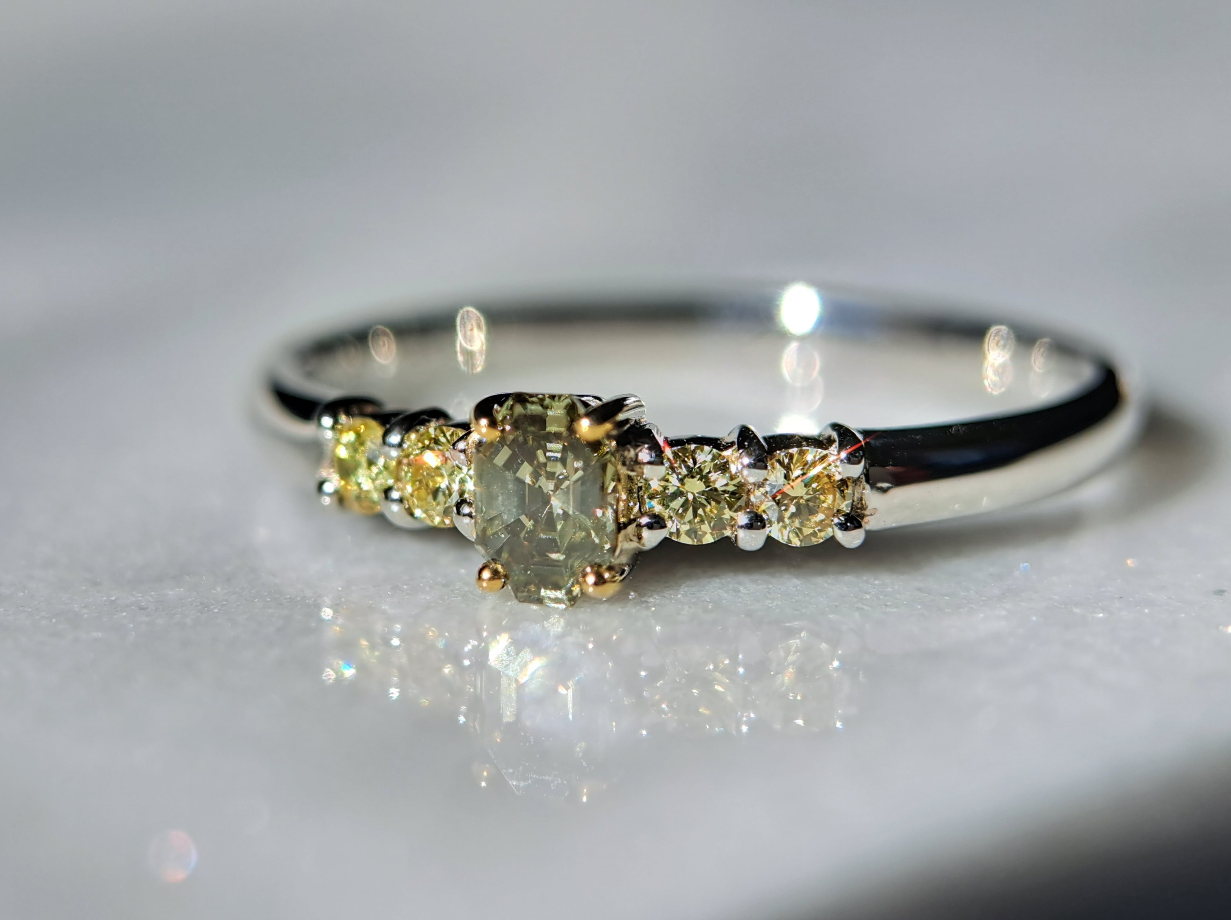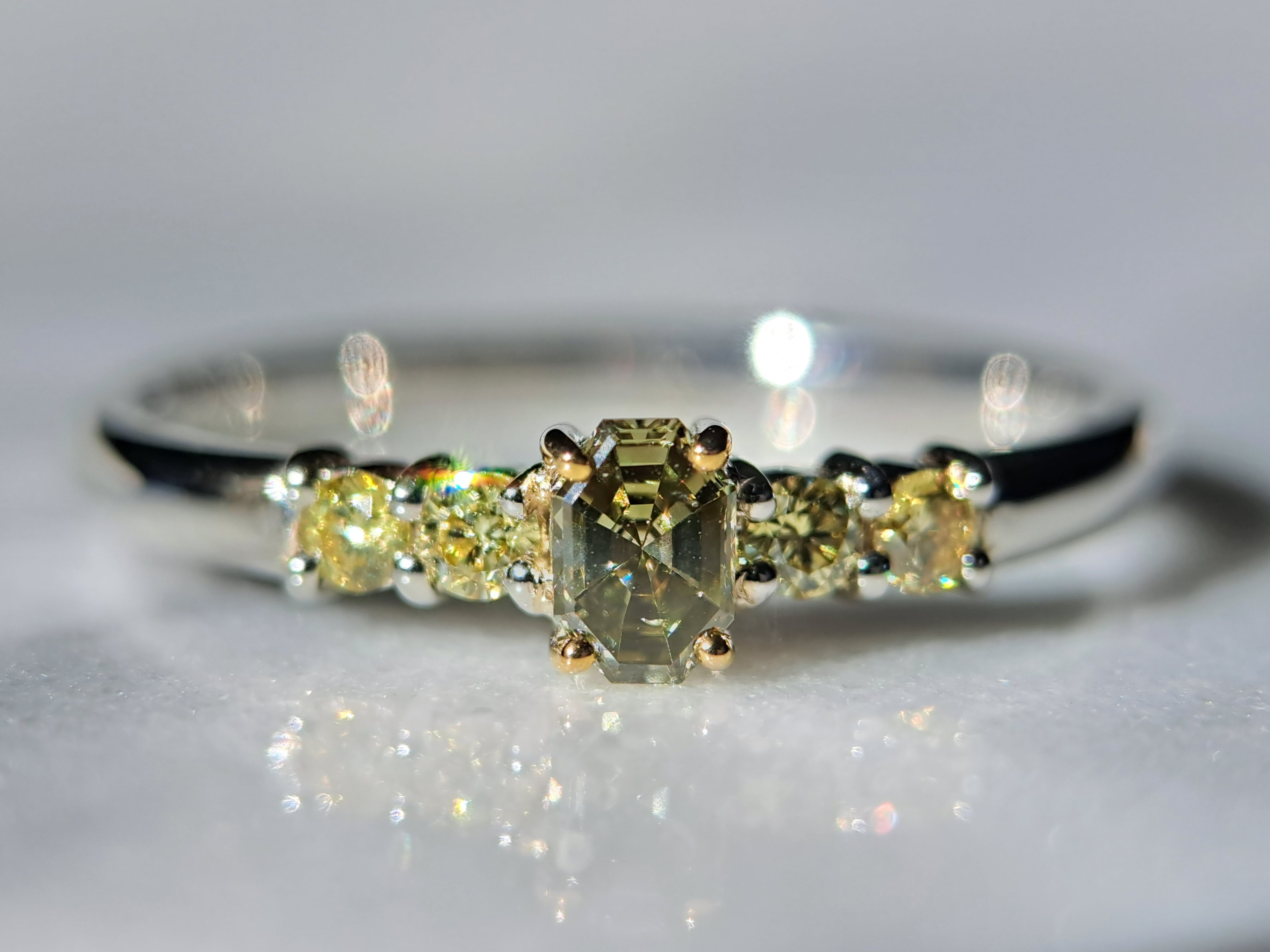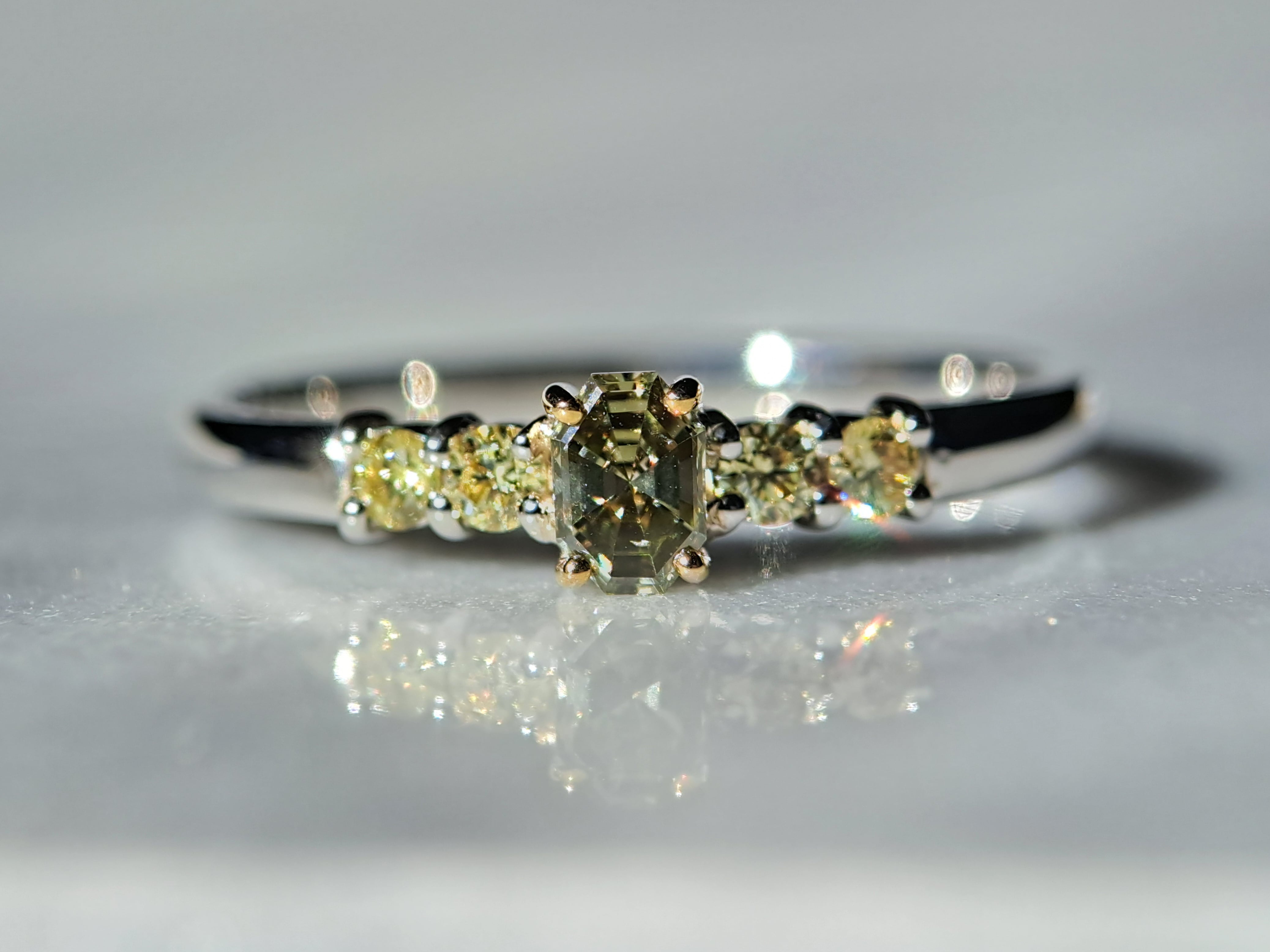 【New Jewelry Fair~2/16迄】Pt900 グリーン(カメレオン)ダイヤモンド(0.169ct ) / YD 0.114ct リング