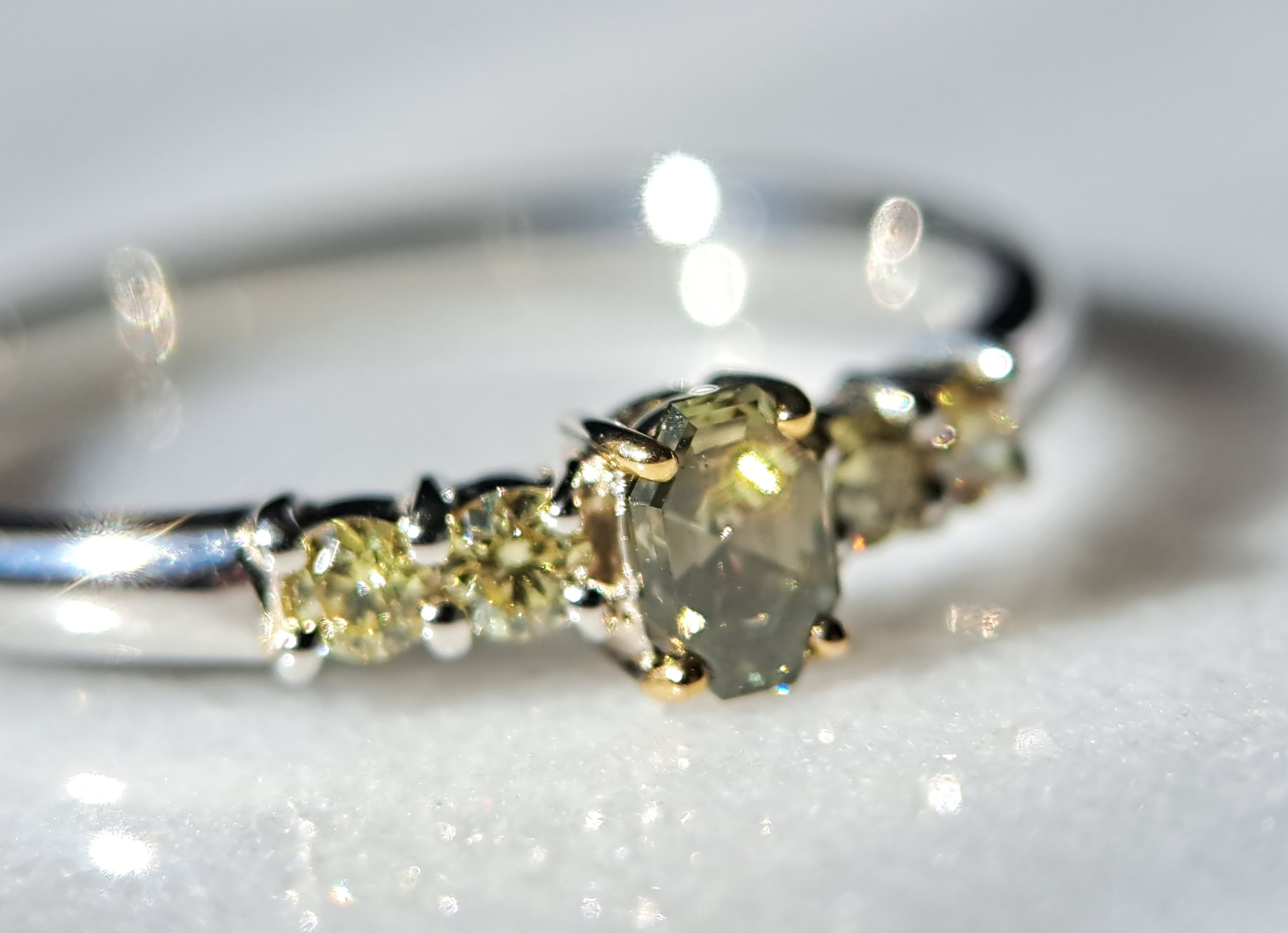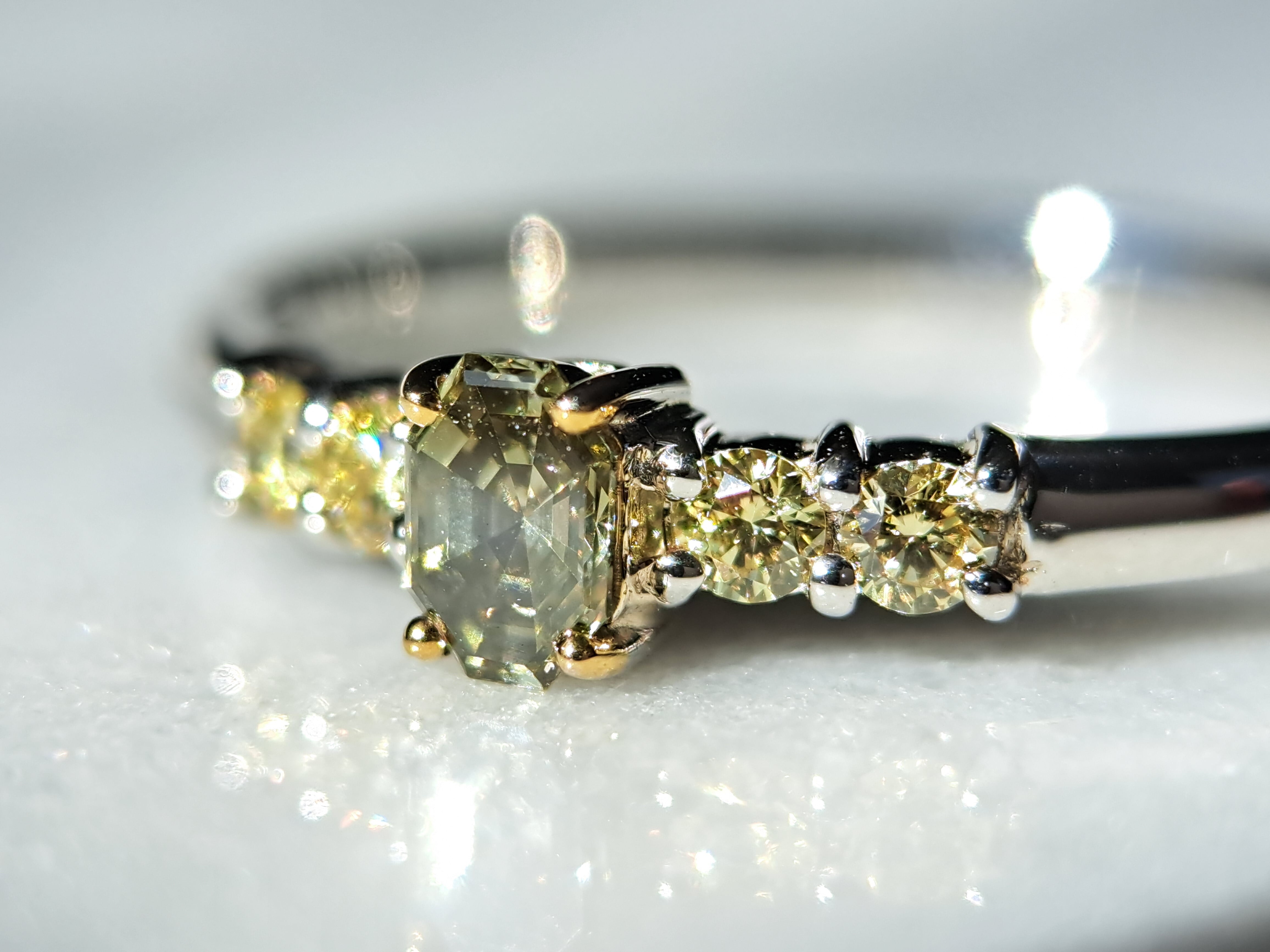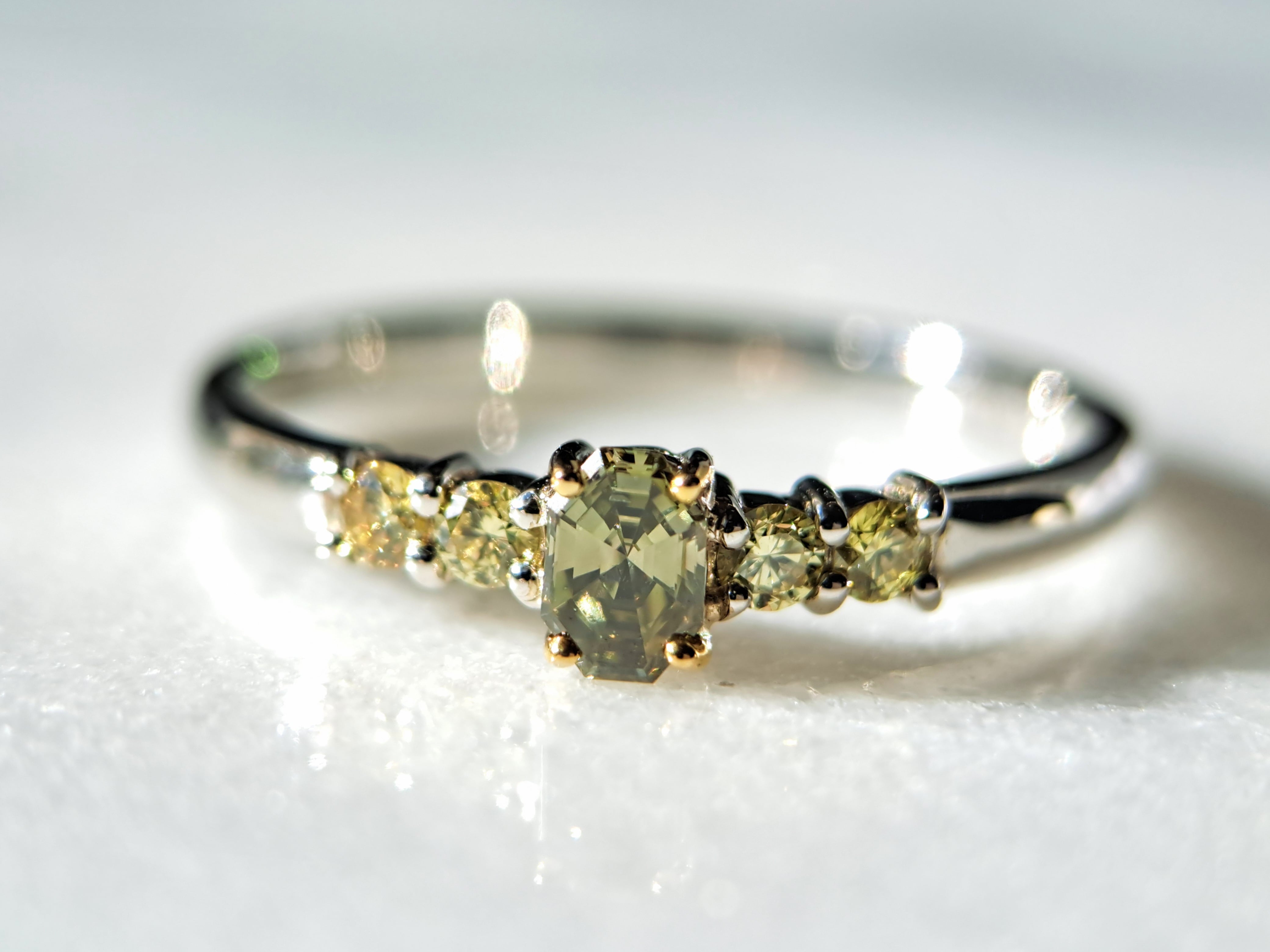【New Jewelry Fair~2/16迄】Pt900 グリーン(カメレオン)ダイヤモンド(0.169ct ) / YD 0.114ct リング