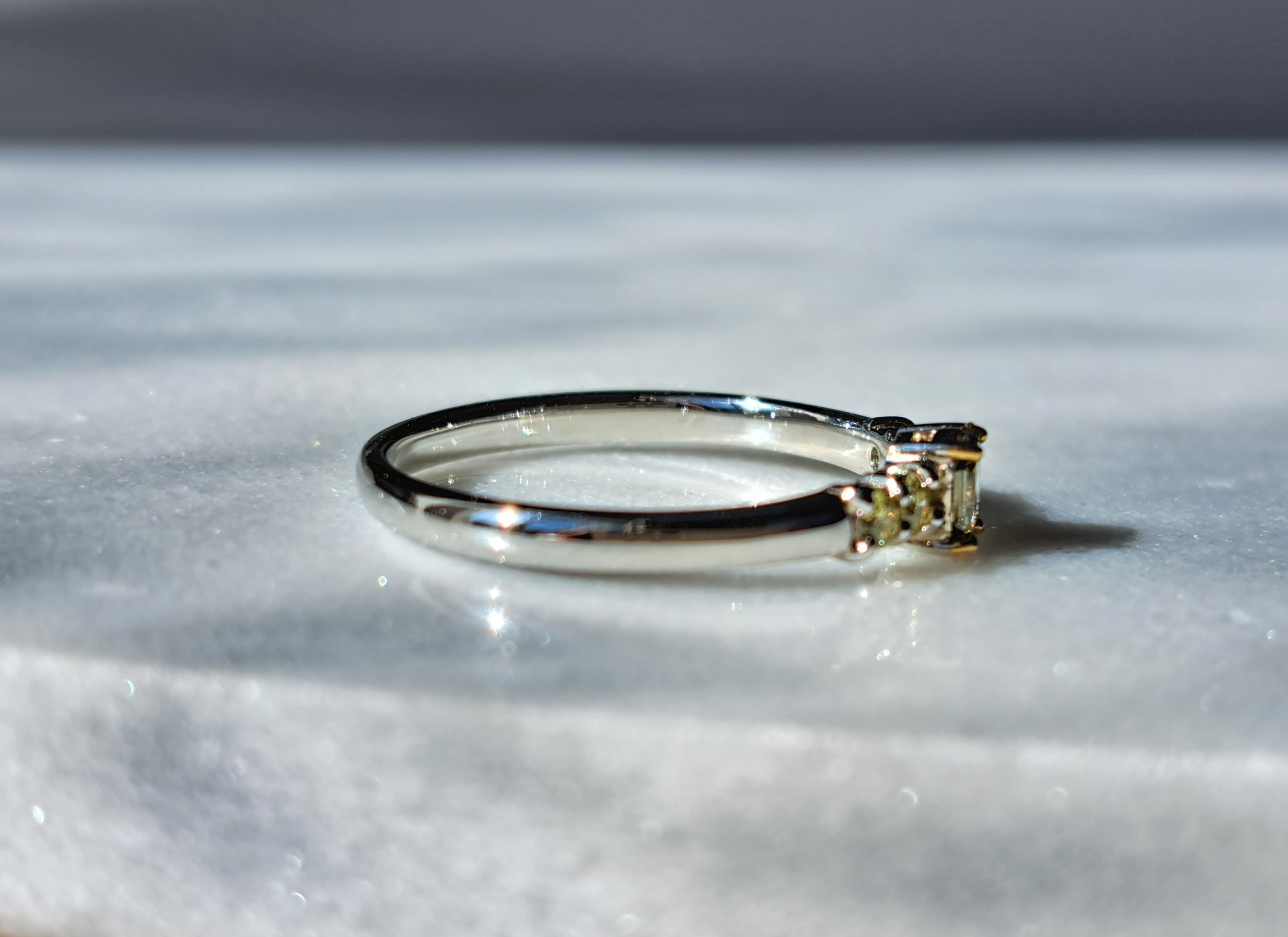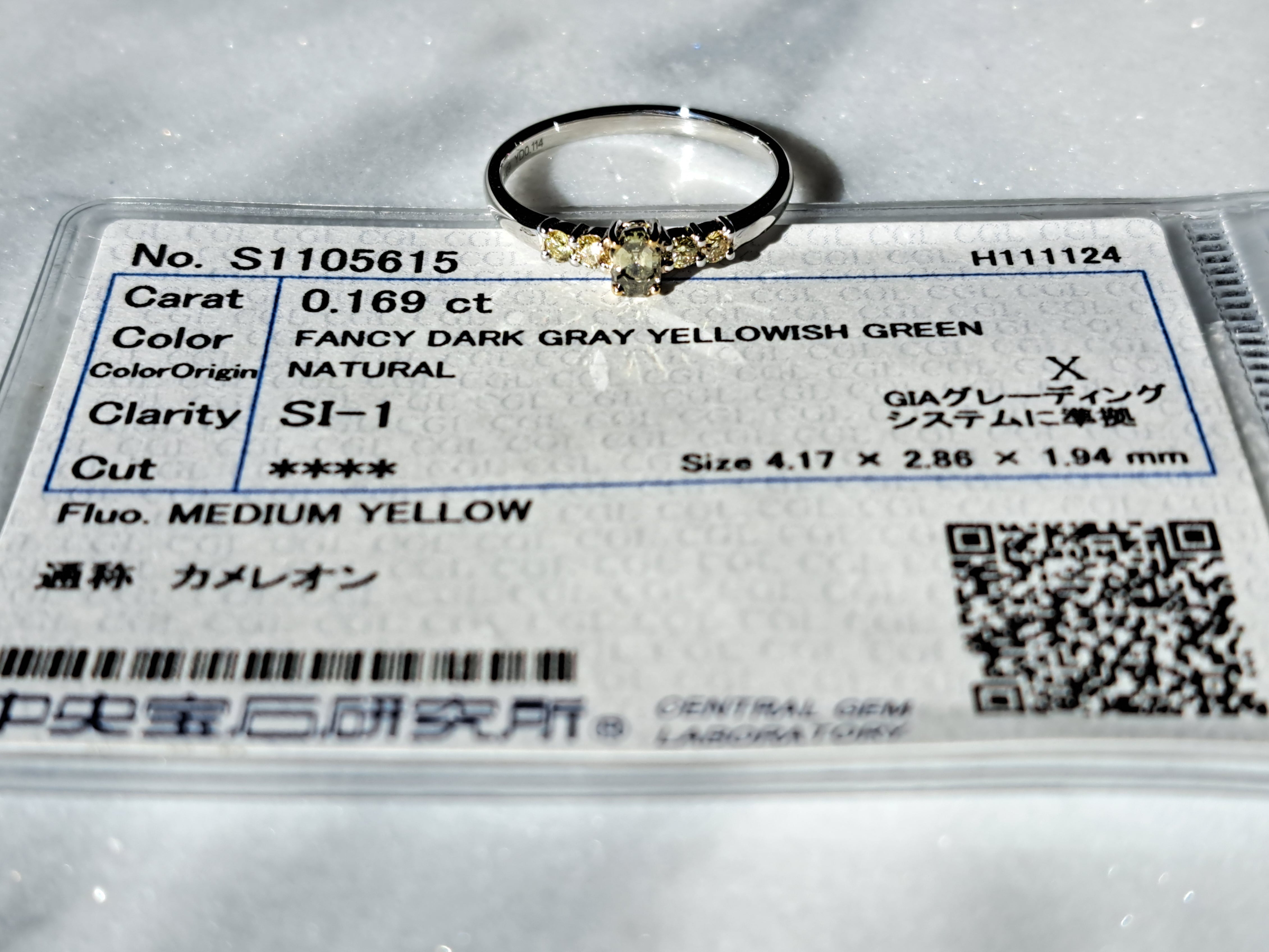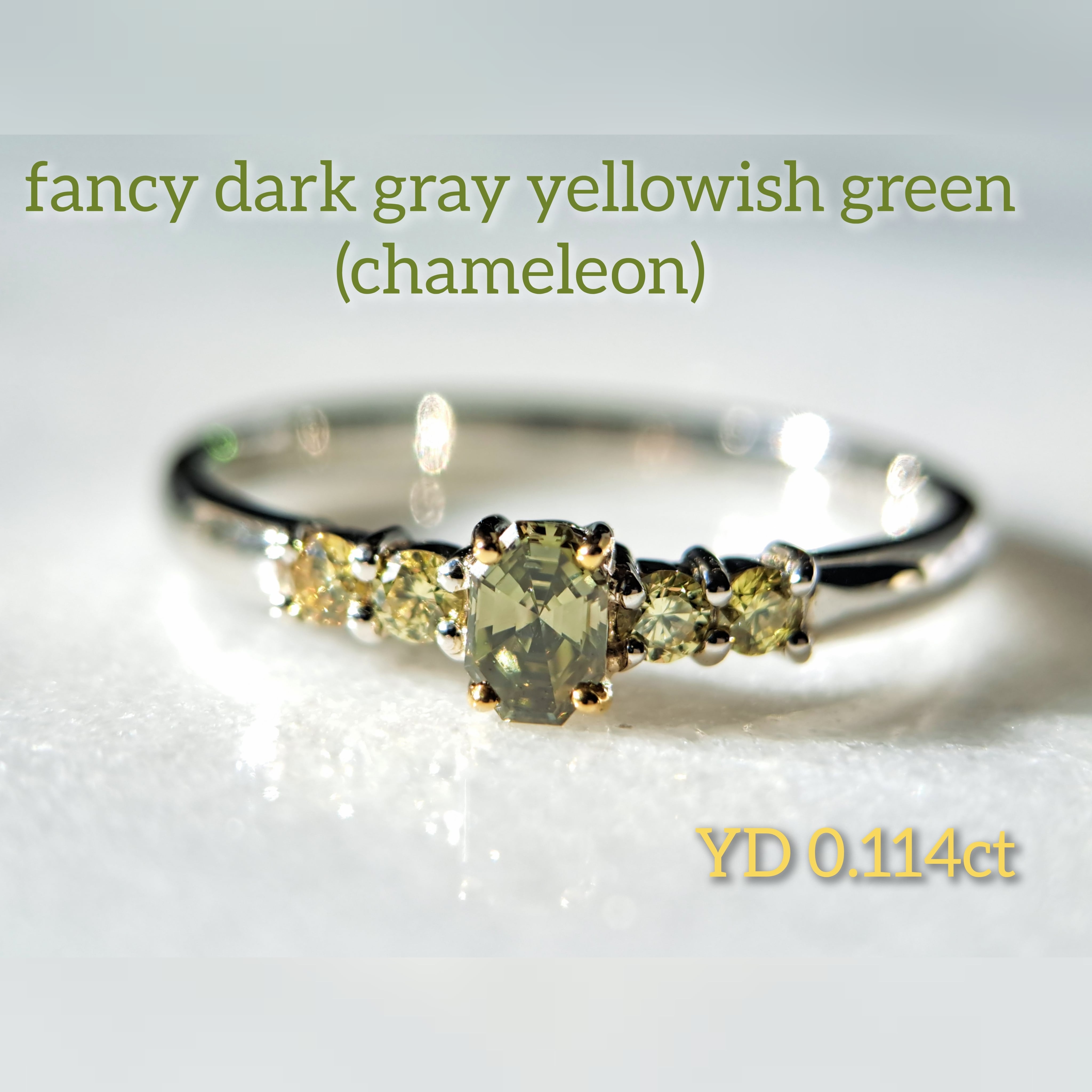 【製品名】Pt900 グリーン(カメレオン)ダイヤモンド(0.169ct ) / YD 0.114ct リング