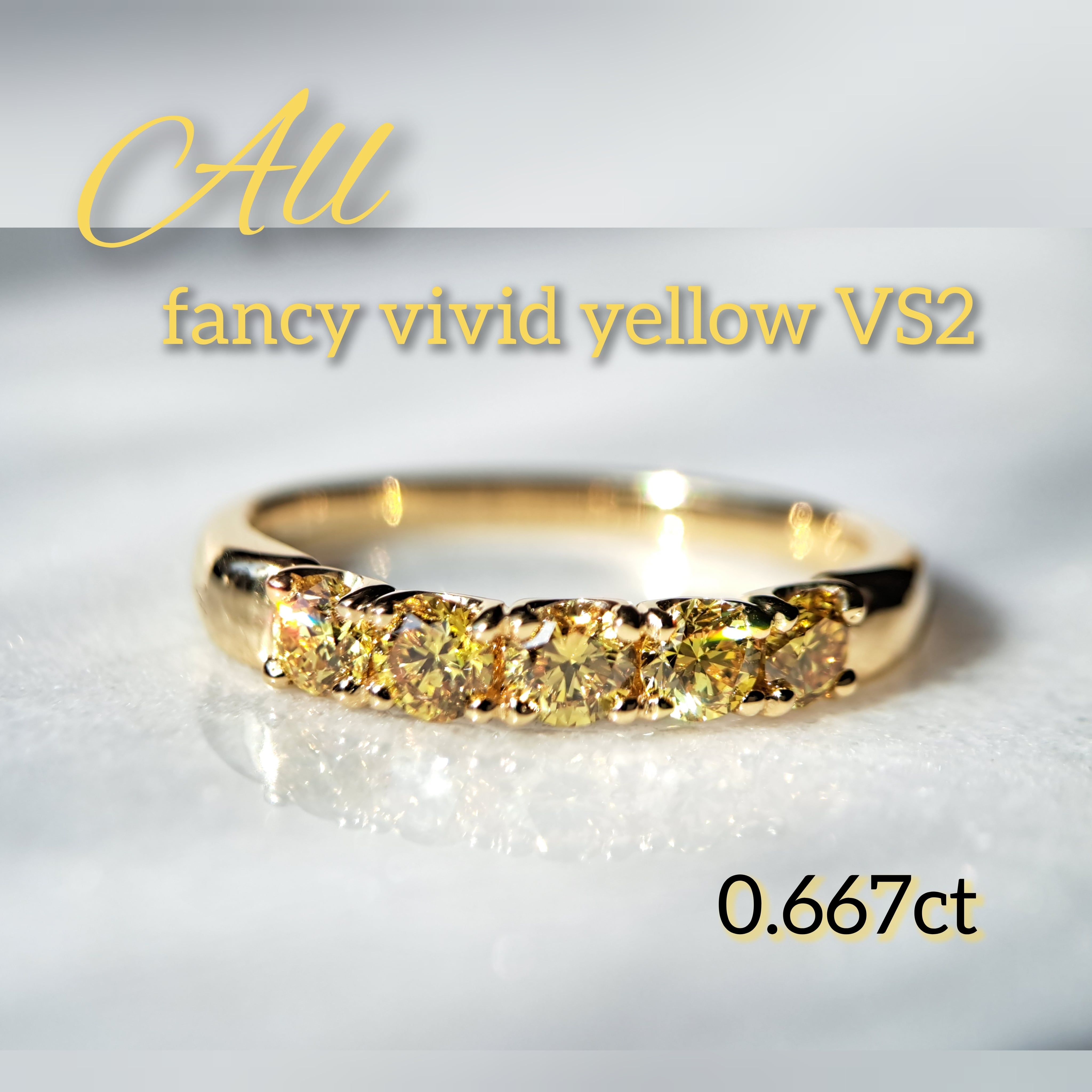 K18YGイエローダイヤ5石計0.667ct all fancy vivid yellow VS2リング