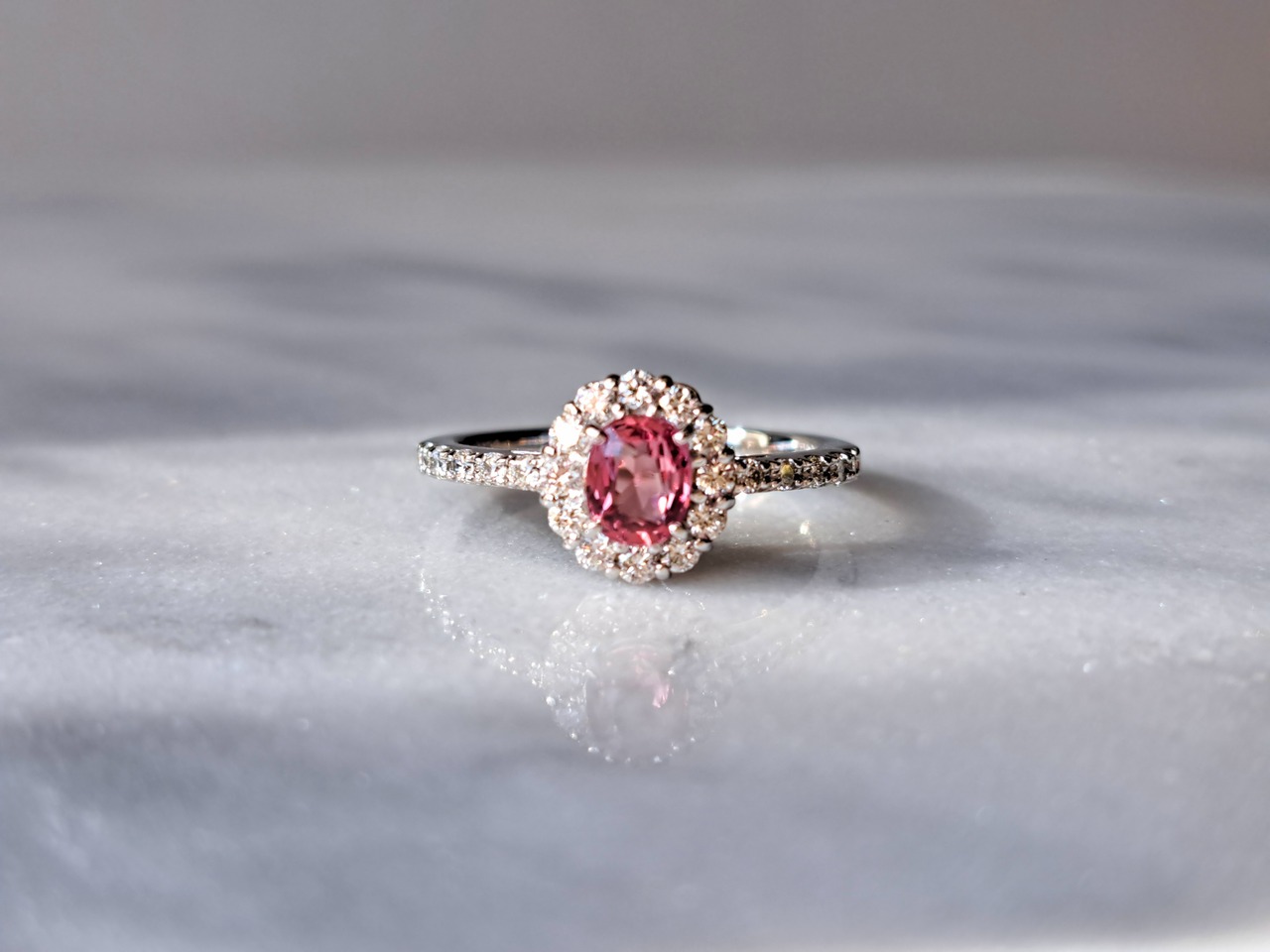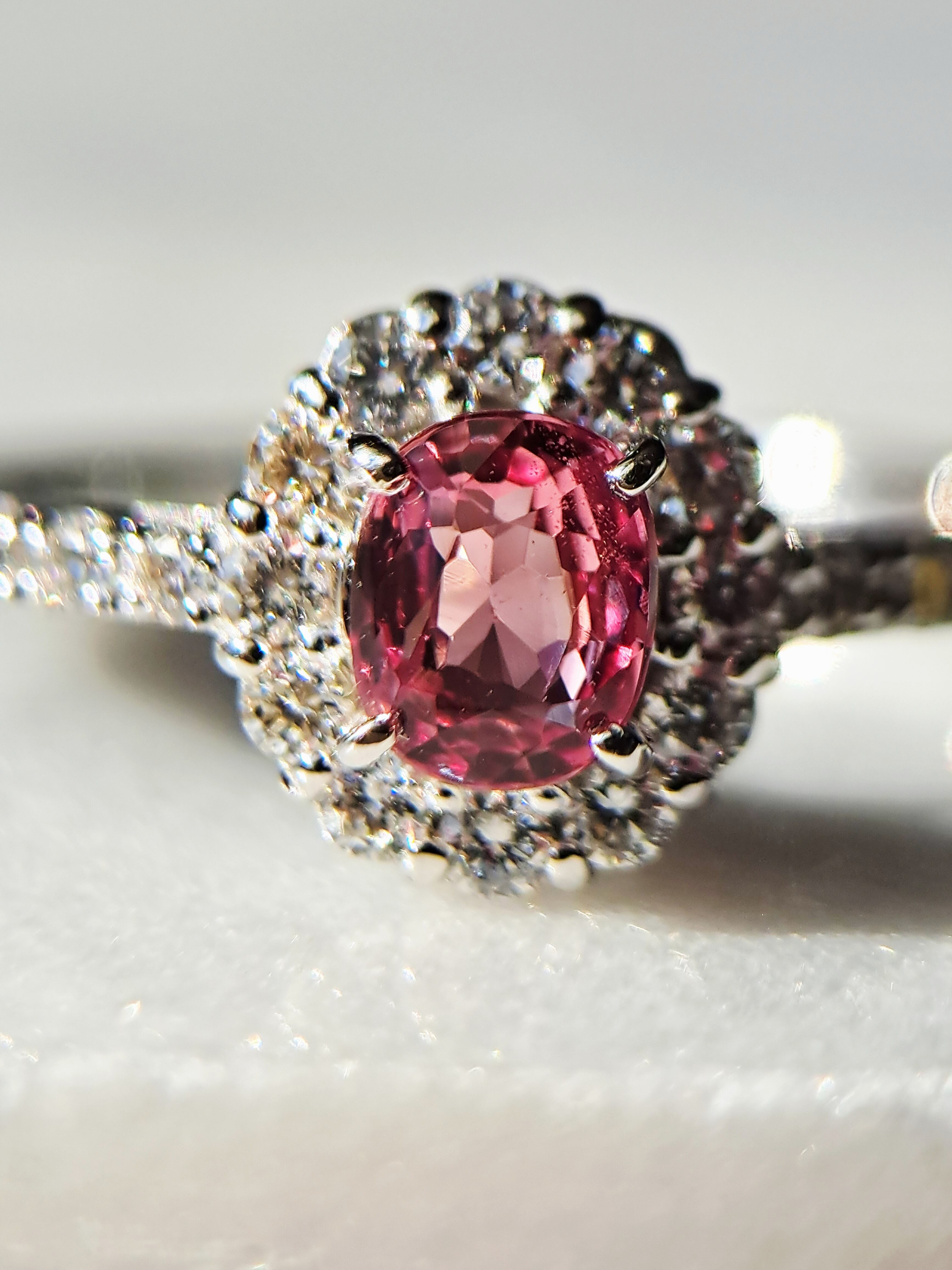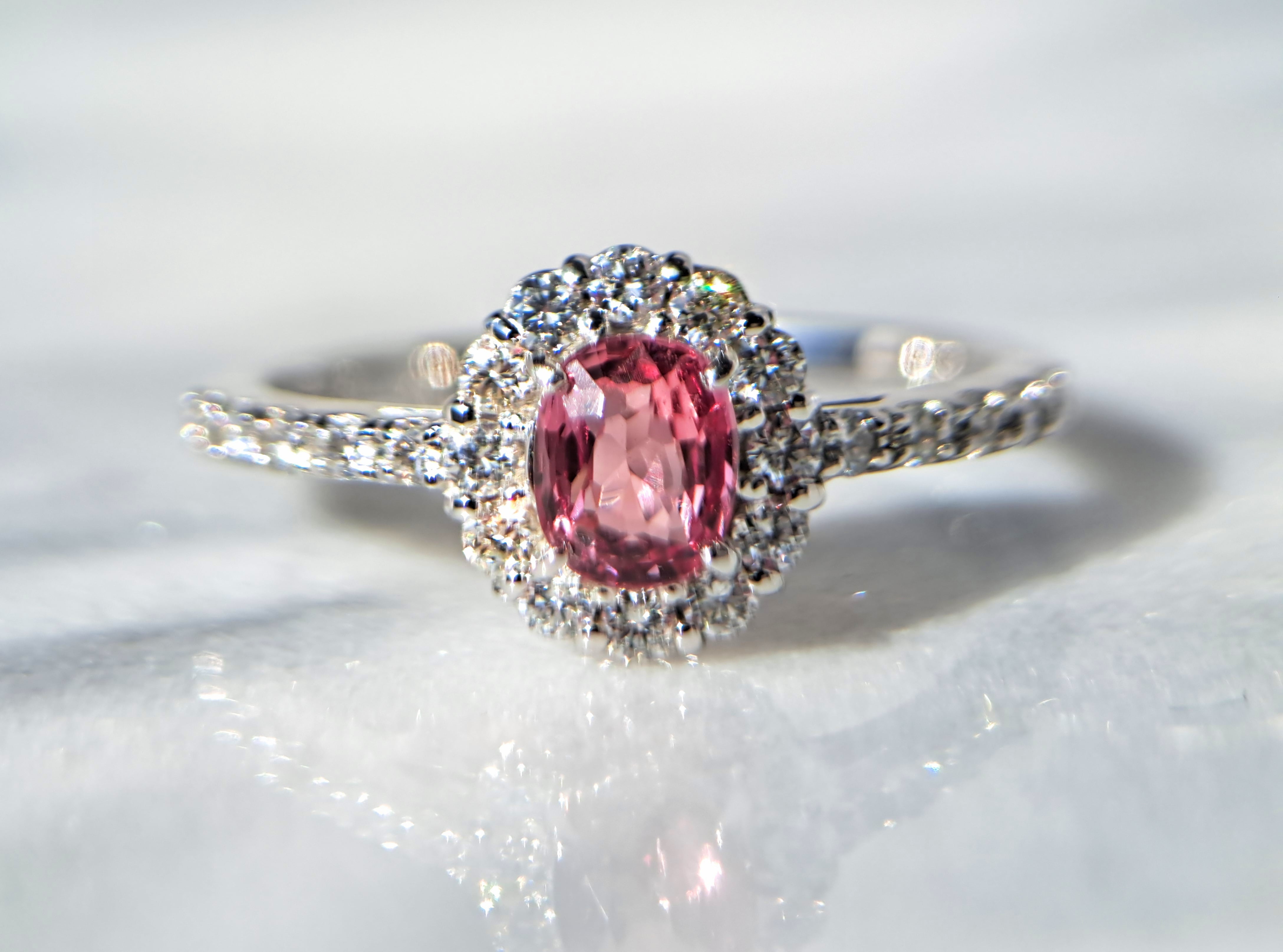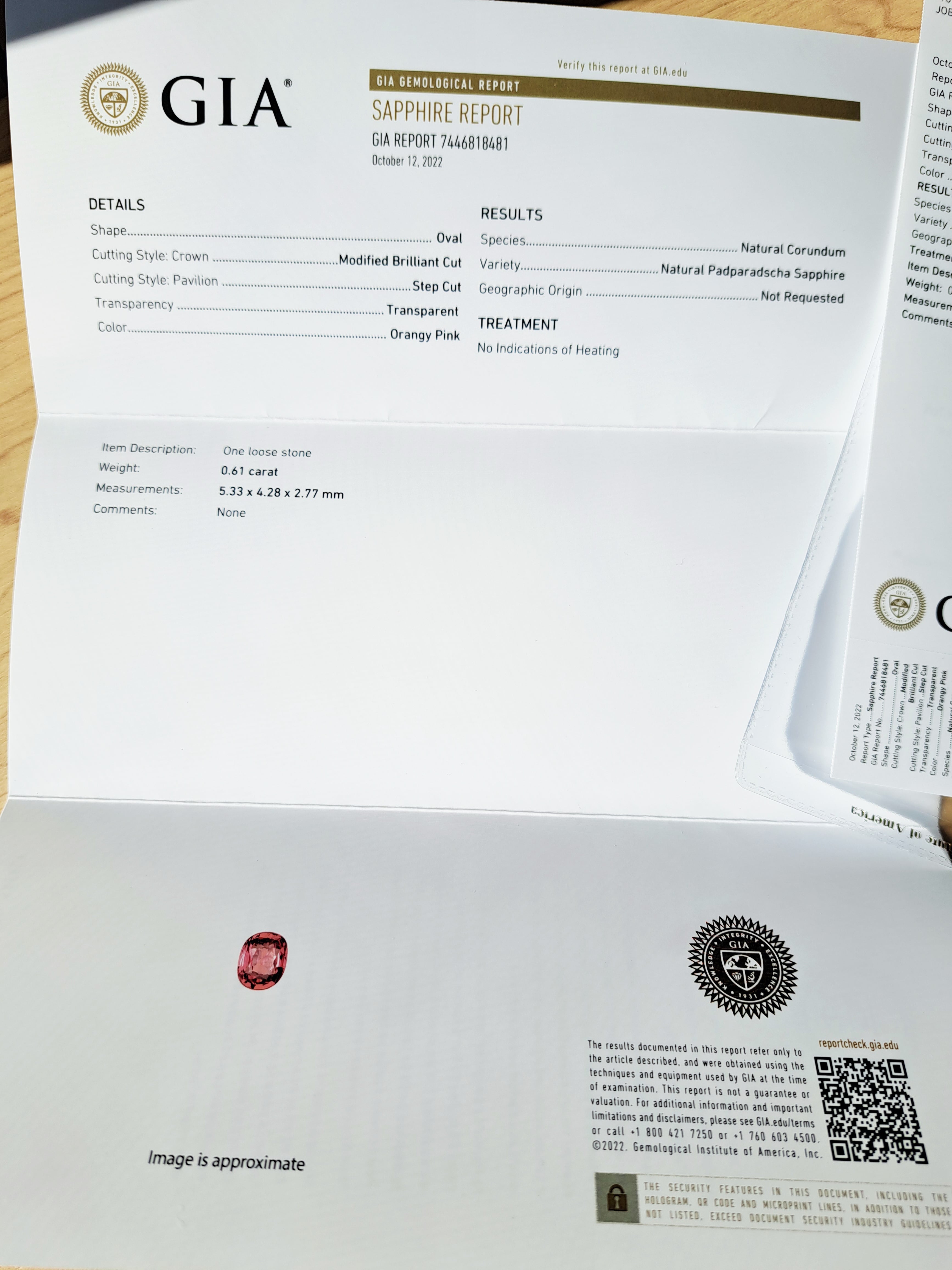ルビーやピンクサファイヤとは全く違うこの独特の色気に魅せられる、オレンジピンクカラーが美しいパパラチアサファイア0.61ctをご紹介します。
