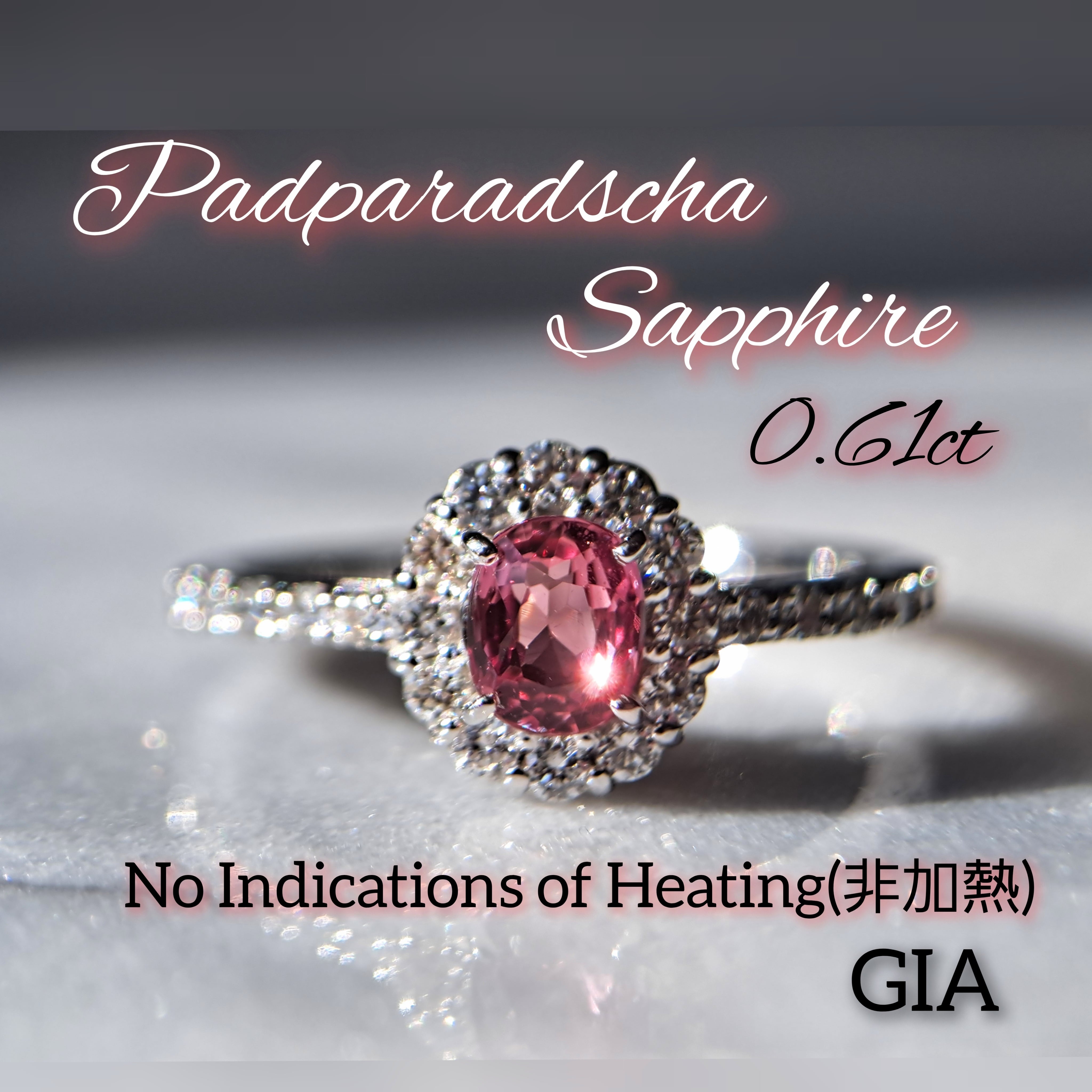 Pt950 非加熱パパラチアサファイア(0.61ct) / D0.35ct リング(GIA鑑別)