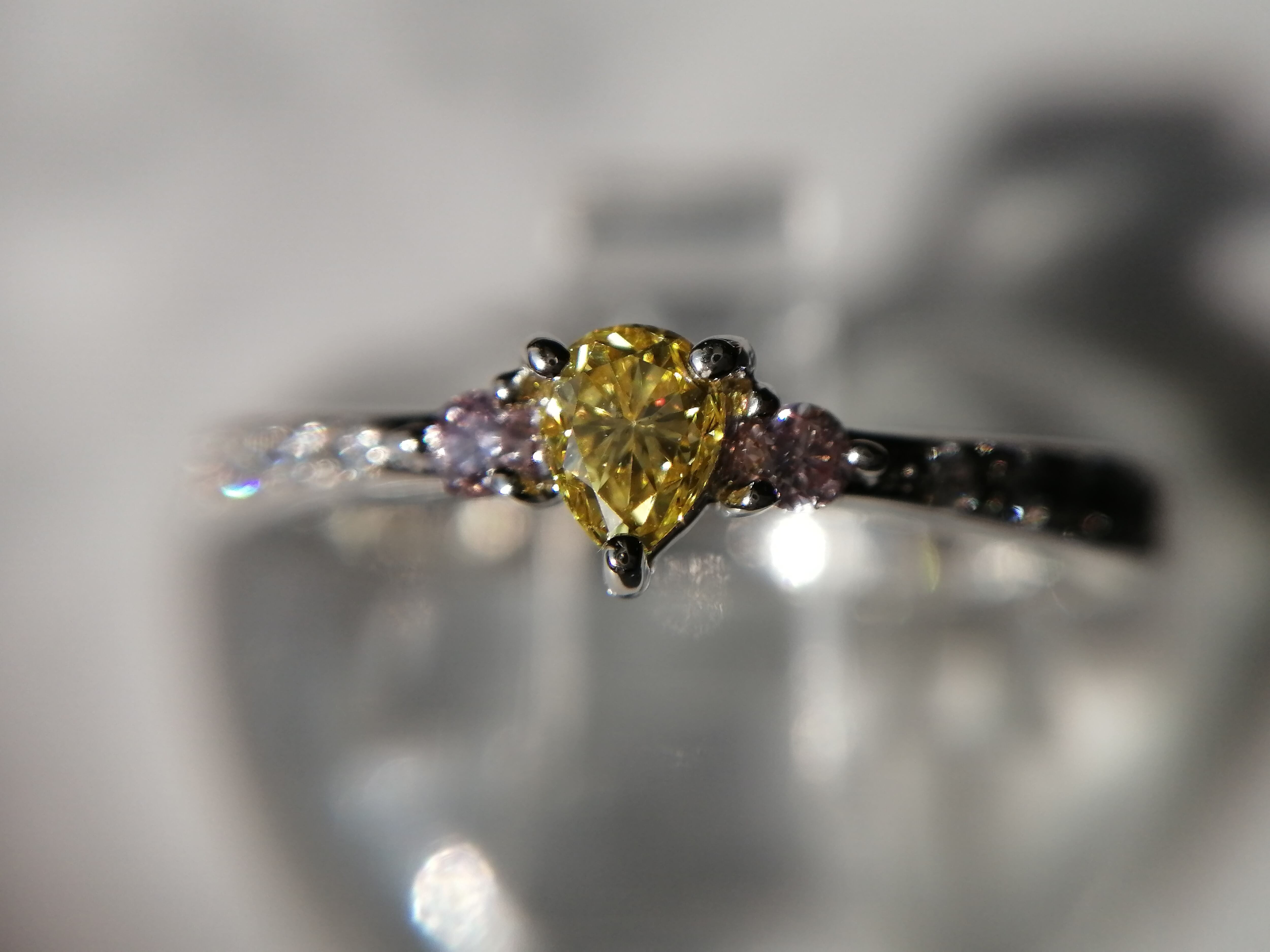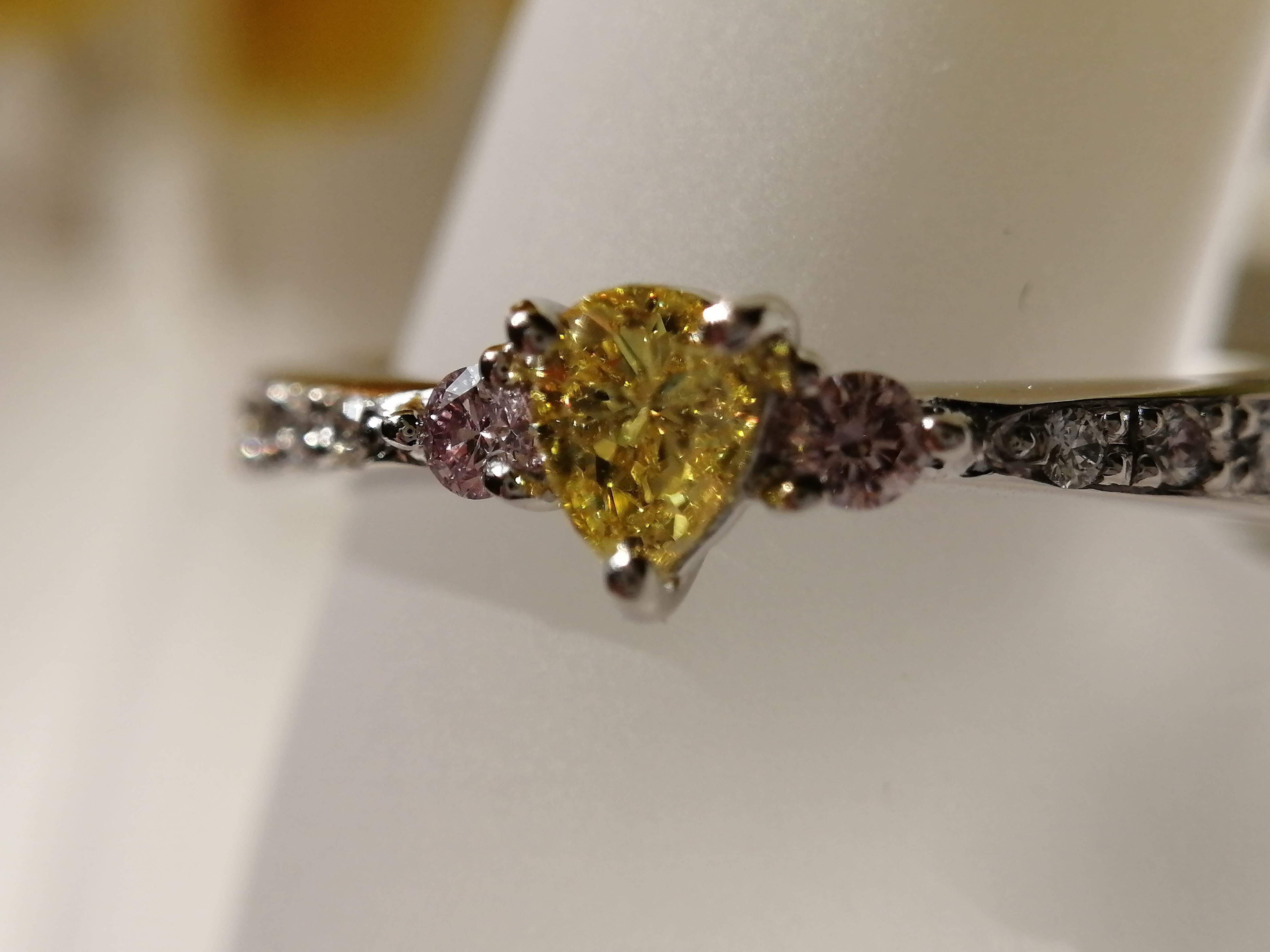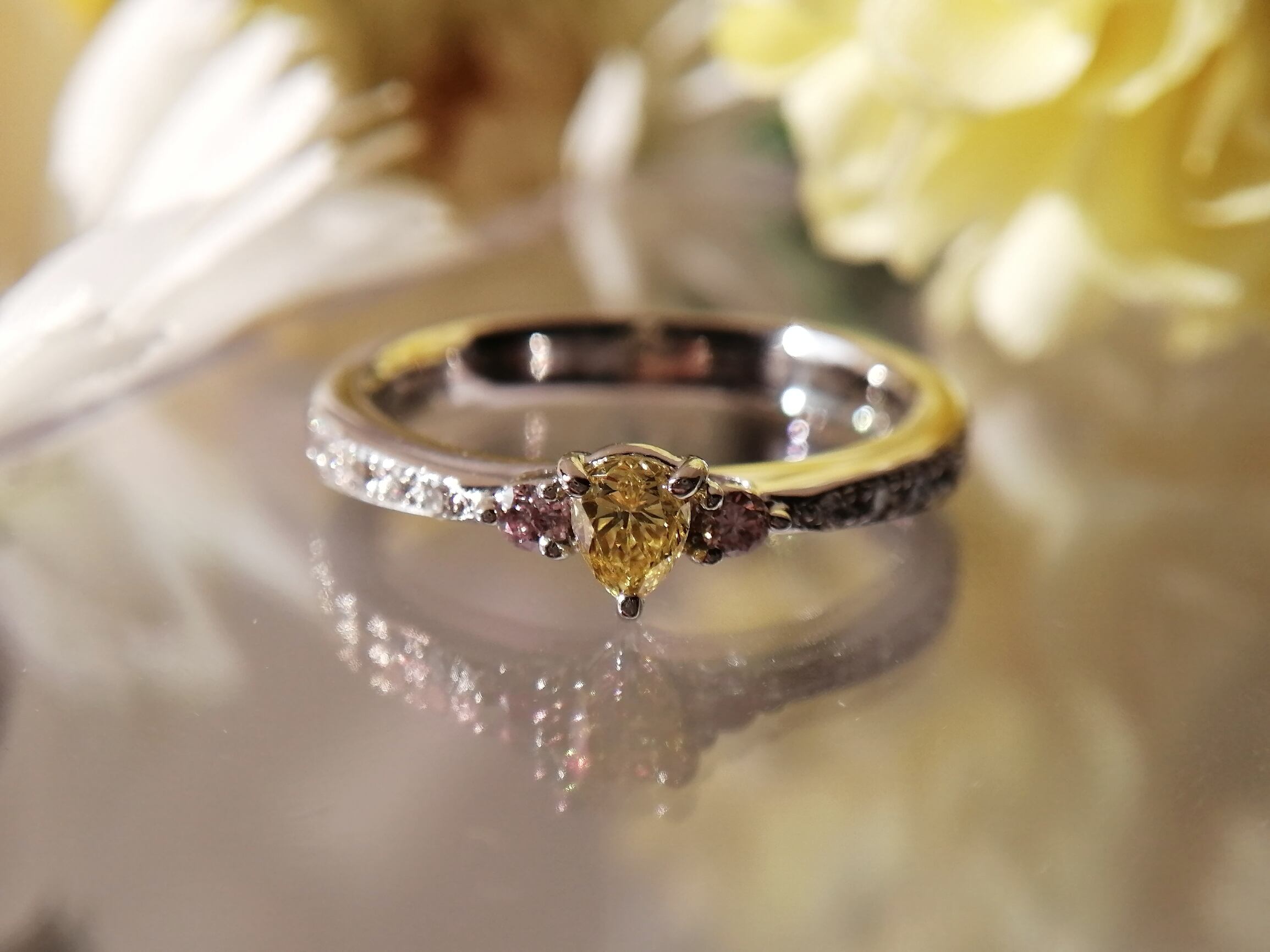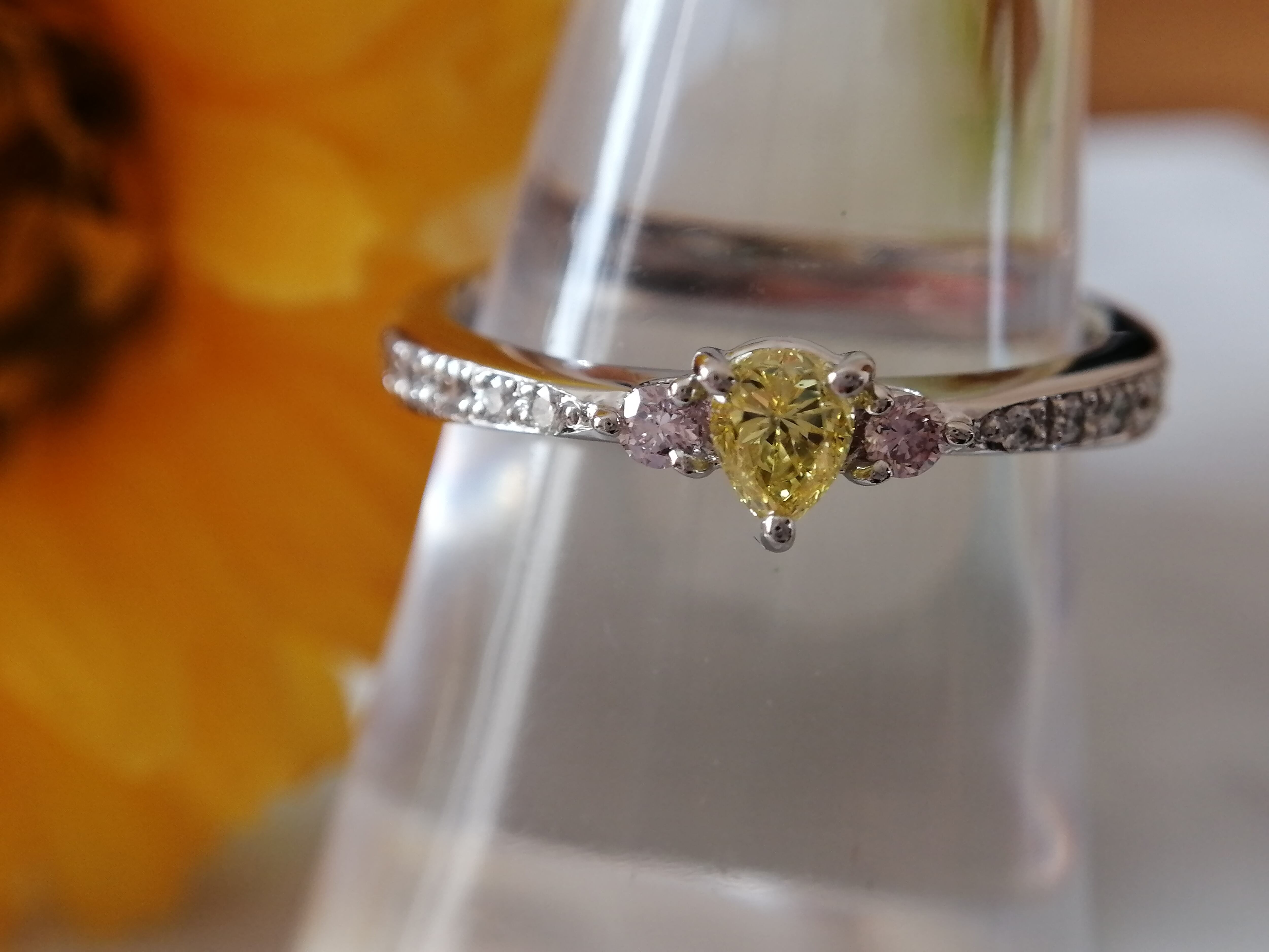 稀少なピンクが添えられた黄金色の美しいダイヤモンド。今年一年、頑張ったご自分へご褒美に如何でしょうか。