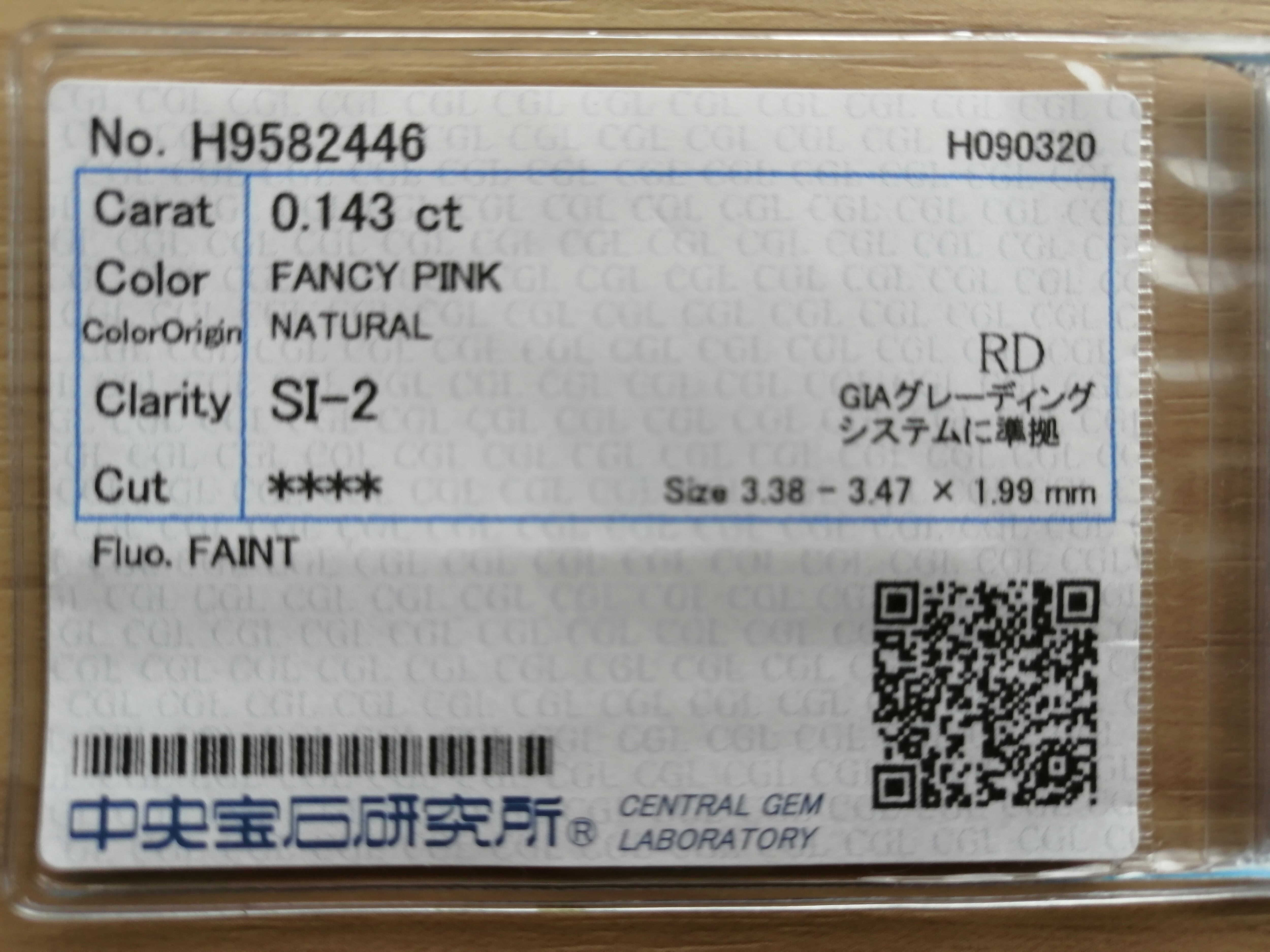 今回、fancy pinkはこちらの0.143ctと0.177ctの計二点ございますが、同じ「fancy pink」でも色の幅があり、こちらは若干オレンジ寄りのfancy pinkに見受けられます。