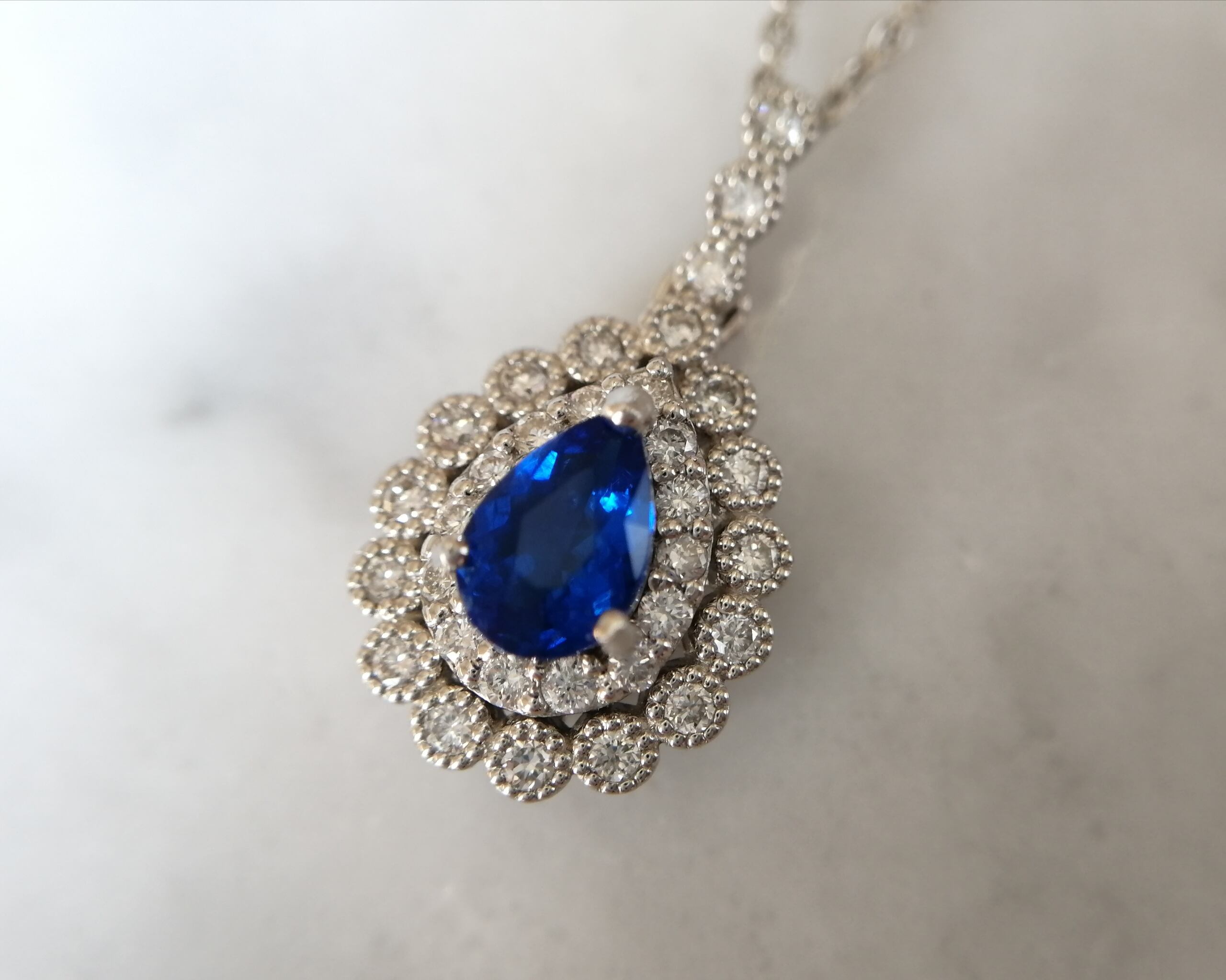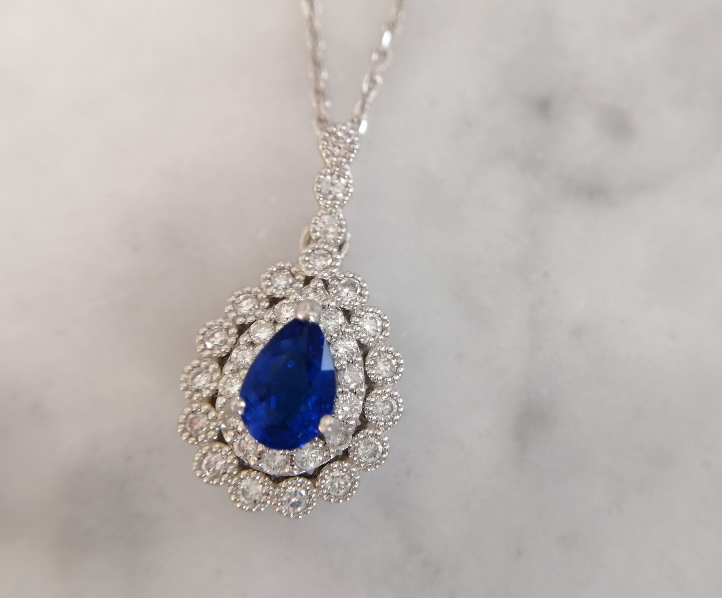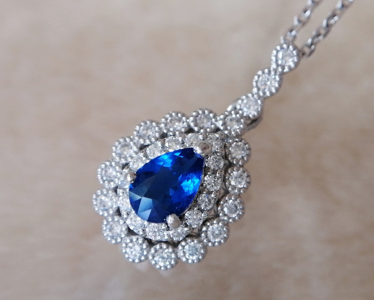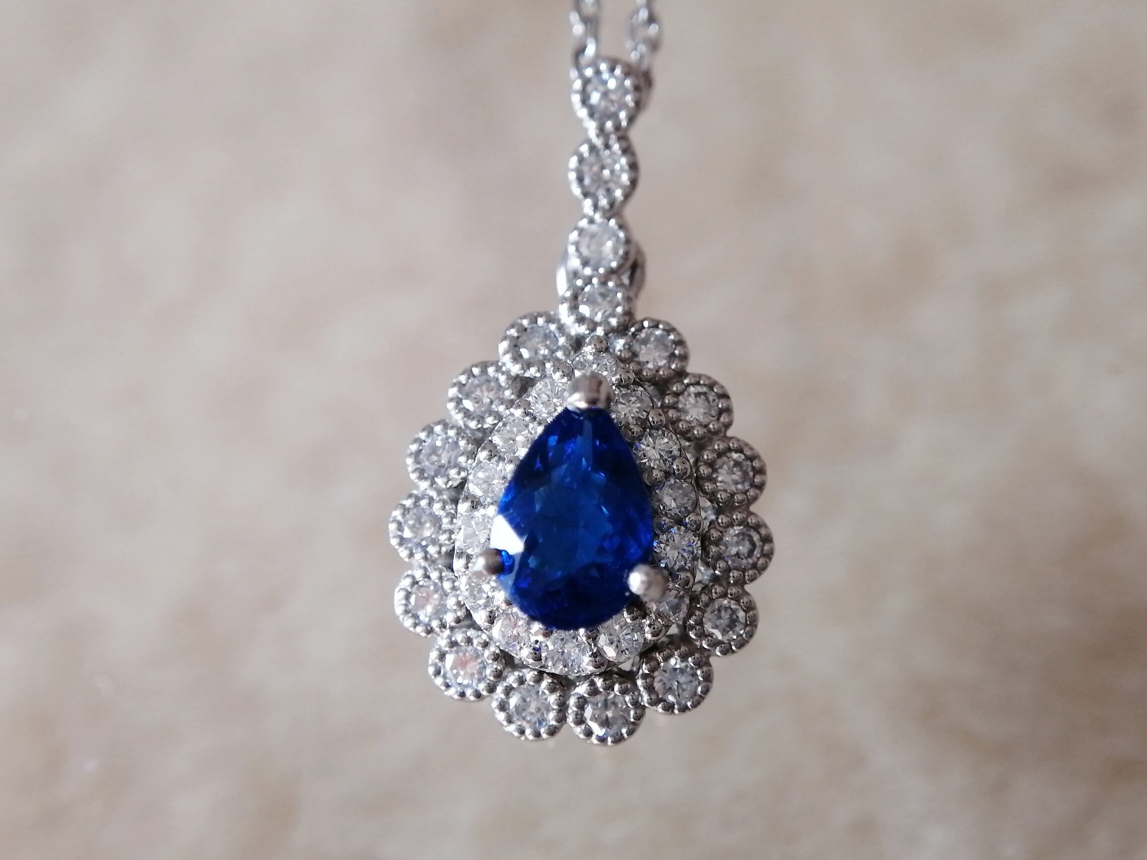 アウイナイトは、硬度が低く脆い宝石であるため、日常生活で楽しむには、個人的にリングよりもこうしたペンダントをオススメいたします。