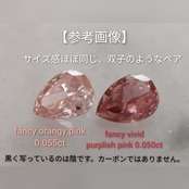 画像17~19枚目に載せましたが、別で販売のfancy orangy pink 0.055ctとほぼ同じサイズ感、並べると双子のよう。同じサイズ感のカラーダイヤモンドが二つ揃うことはたいへん珍しいので、もし両者お気に召して頂けた方は是非、カップル(ペア)での購入をオススメします。