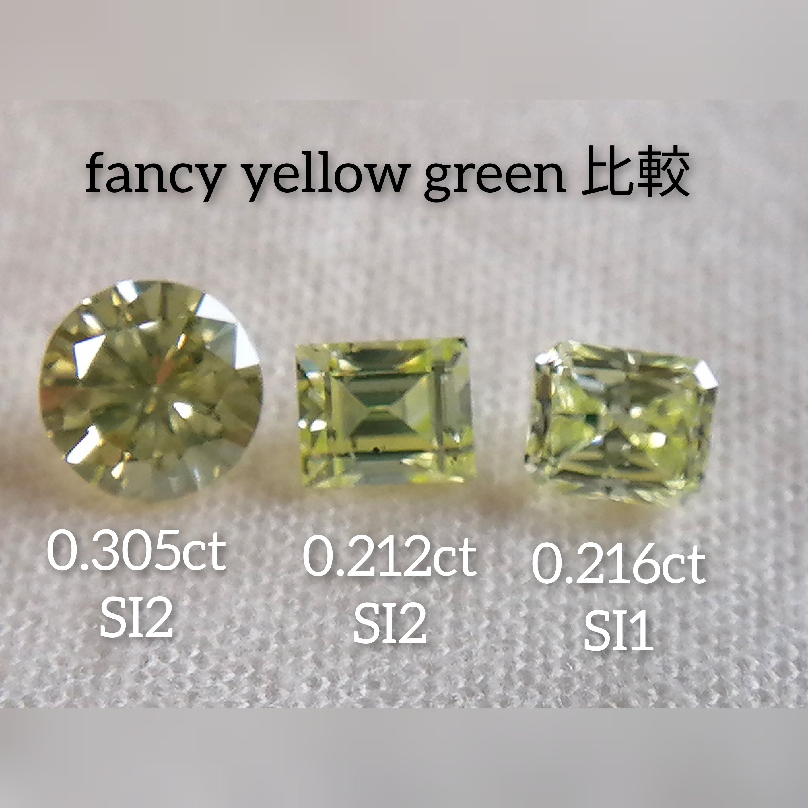 画像後半に、fancy yellow green他石との比較画像を載せました。