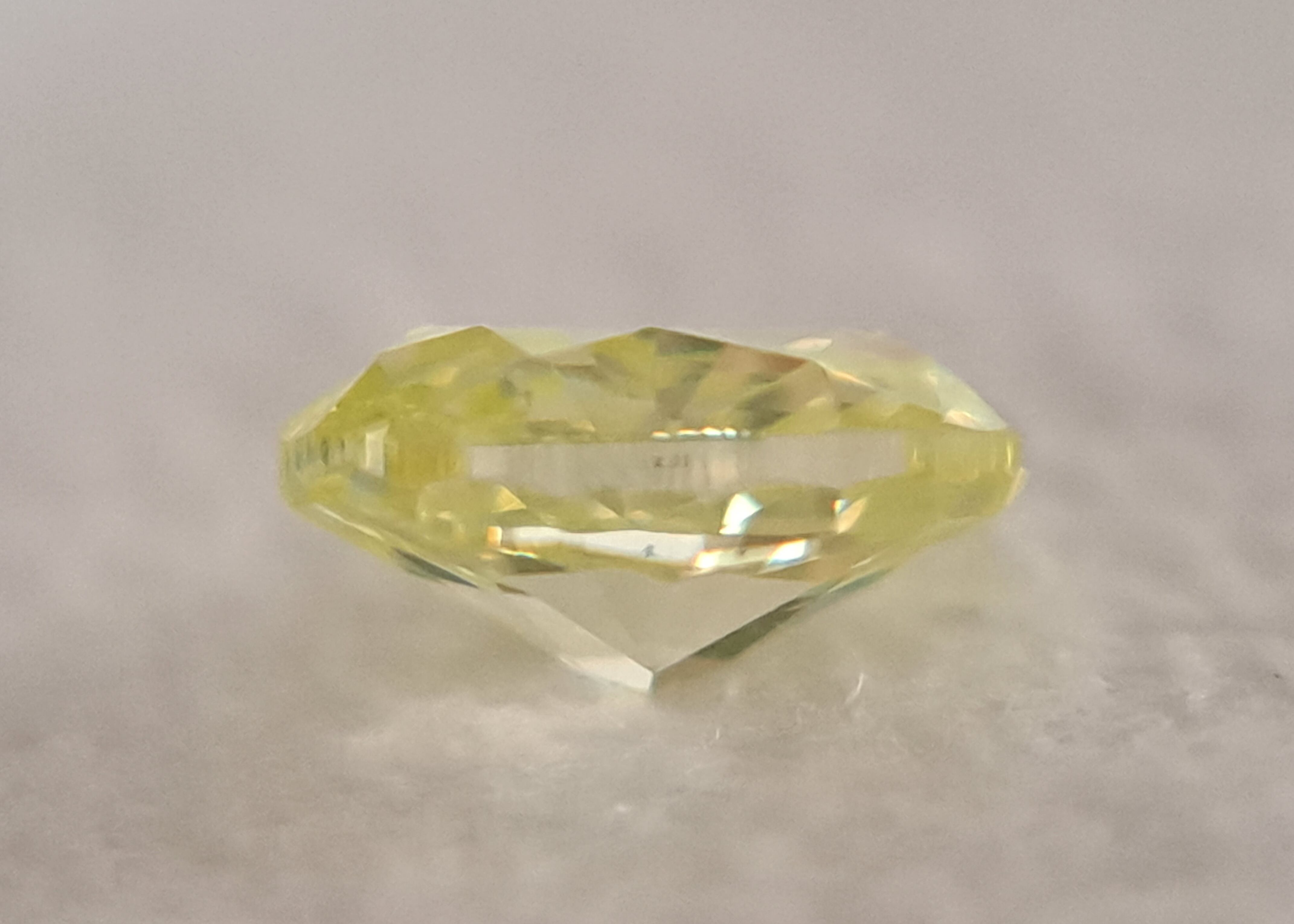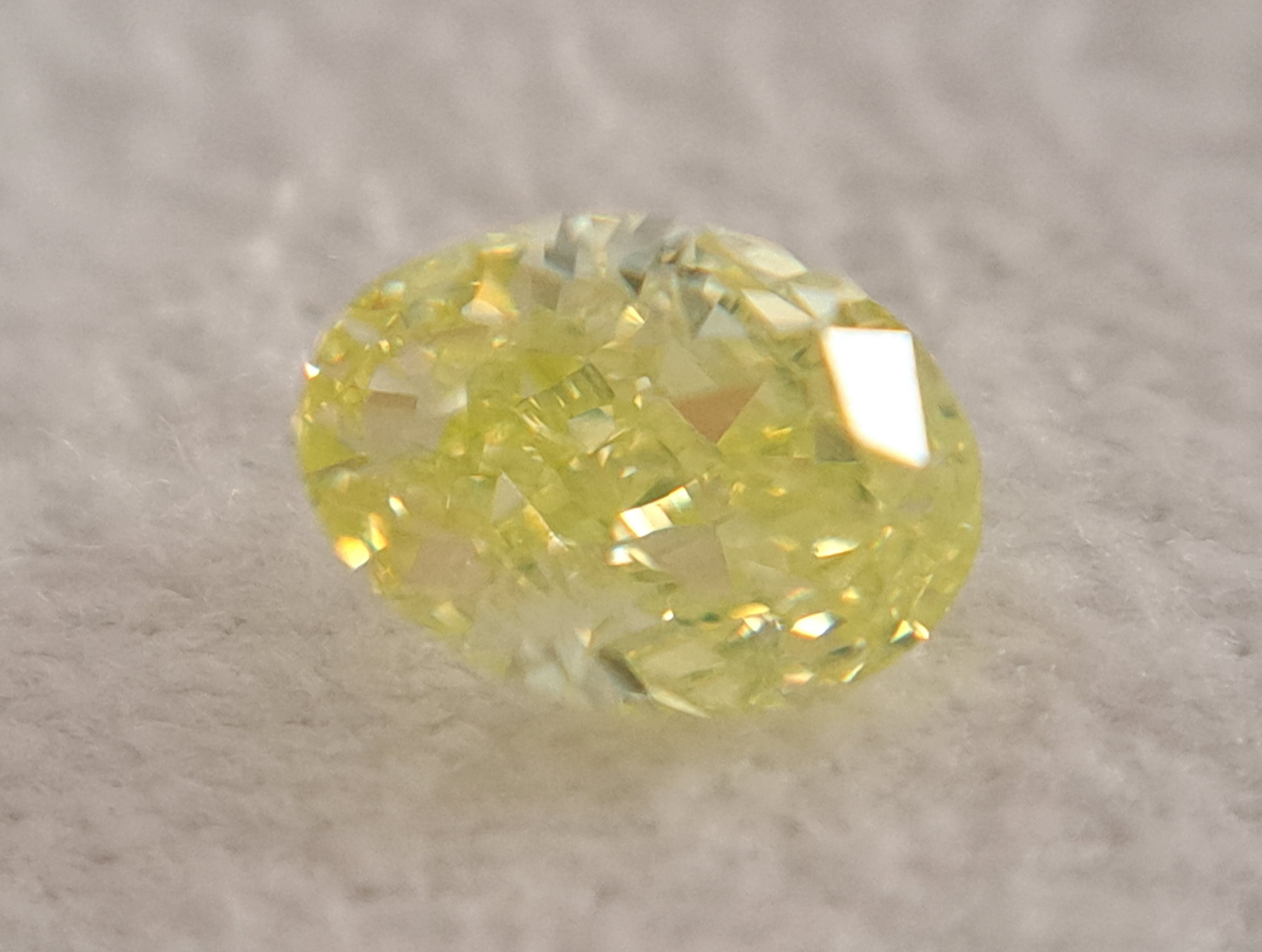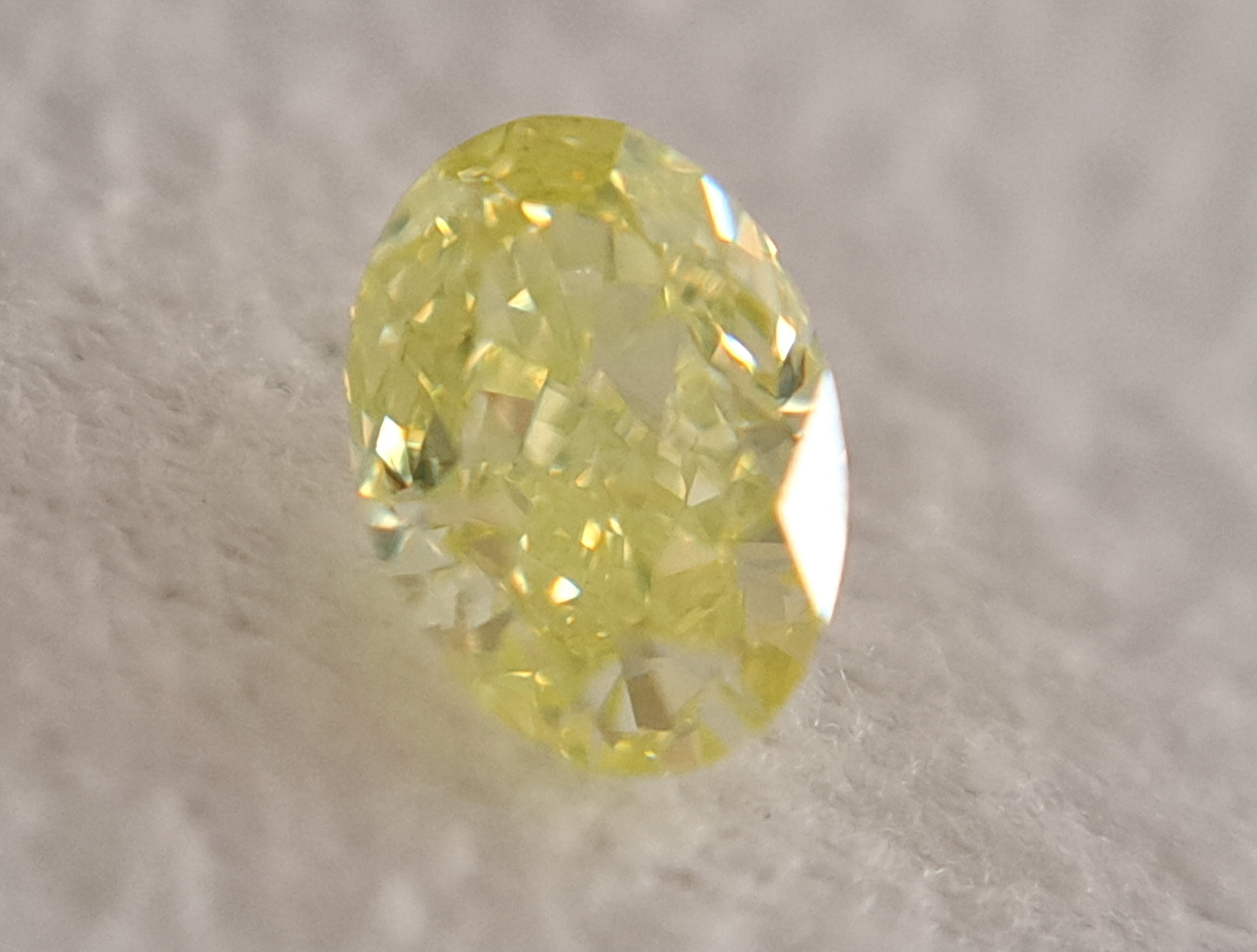 そもそも末尾グリーンintenseは最近本当に見かける機会がなくなりました。こちらは末尾yellowですが、しっかりとグリーンが感じられ、目視で「黄緑色」を感じられる美しいダイヤ。私見、末尾グリーンとさほど遜色ない色合いに感じます。
