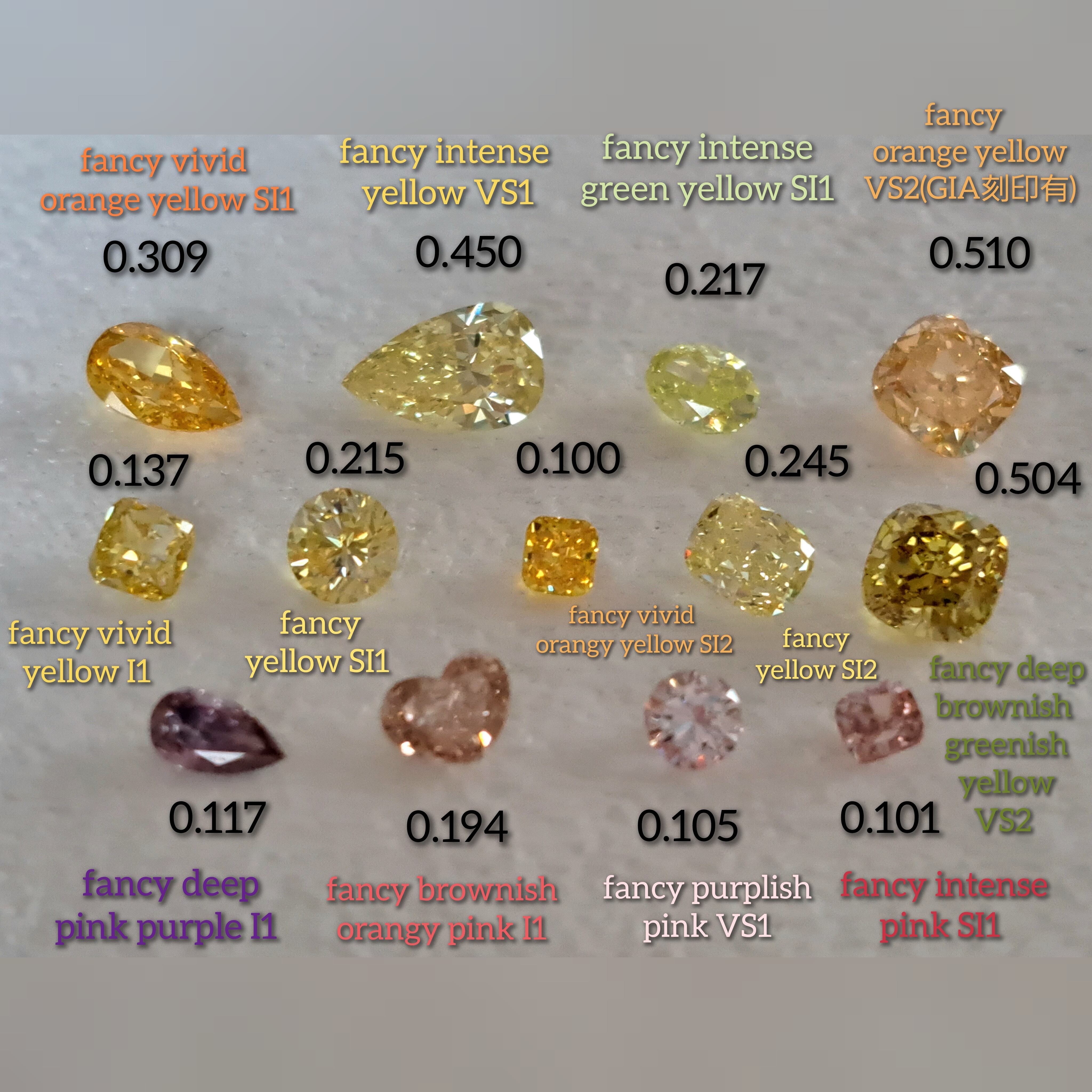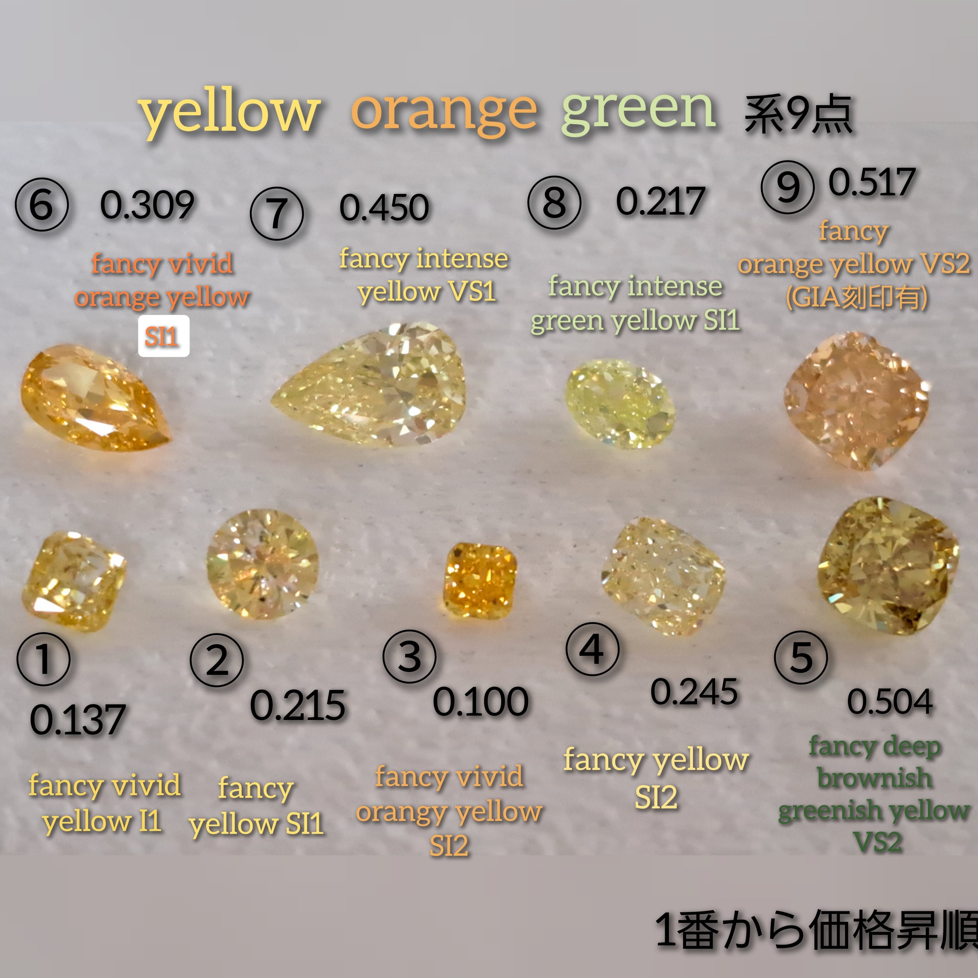 正直、今回のラインナップで、当初石だけを見た時、久々の「intense yellow green」だと思いました。intense yellow green、末尾グリーンである石のほうが人気が高いのはわかりますが、その場合、お値段もかなり上がります。