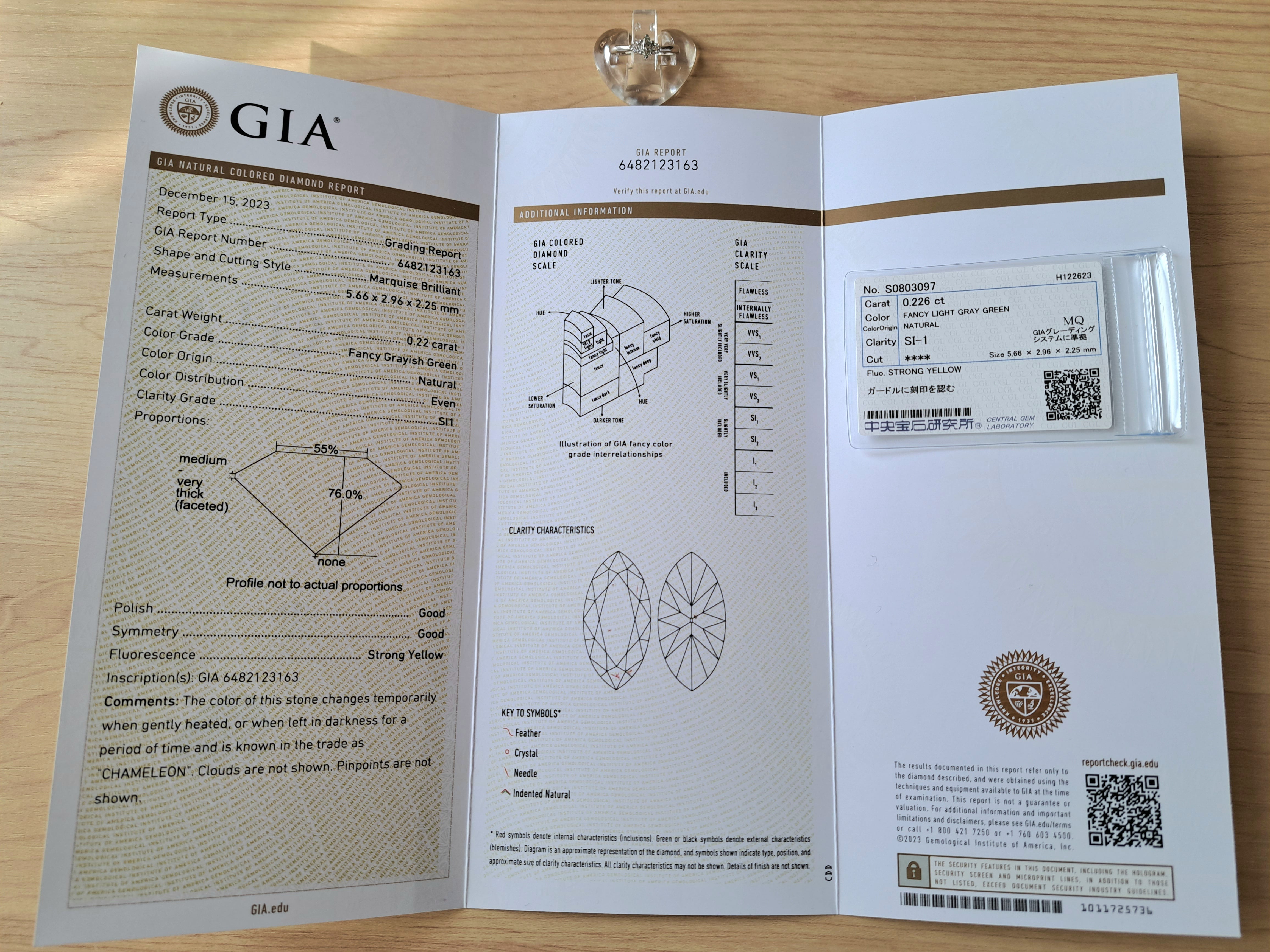 GIA、fancy grayish green SI1 カメレオン