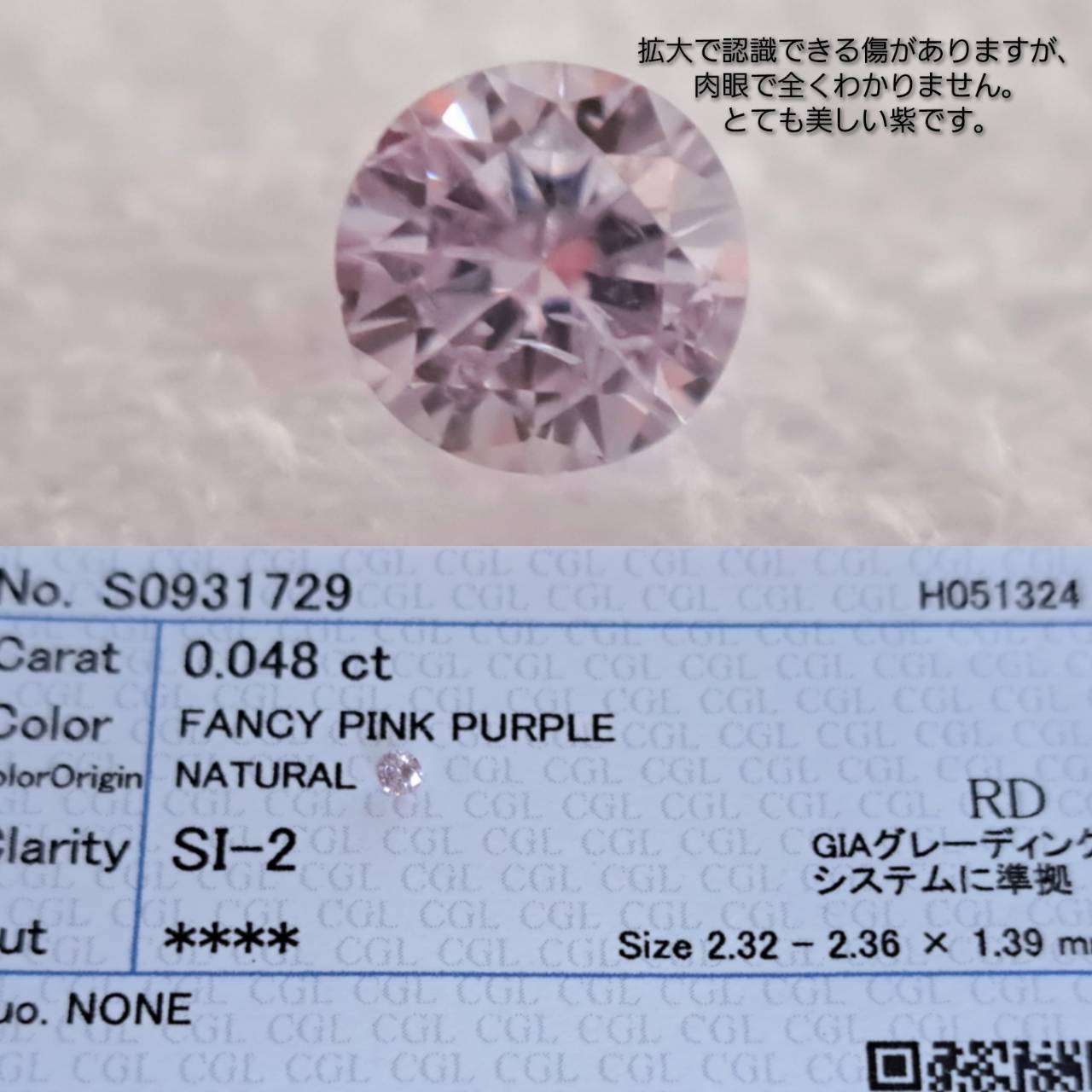 7) 0.048ct fancy pink purple SI2 (2.32-2.36×1.39mm)