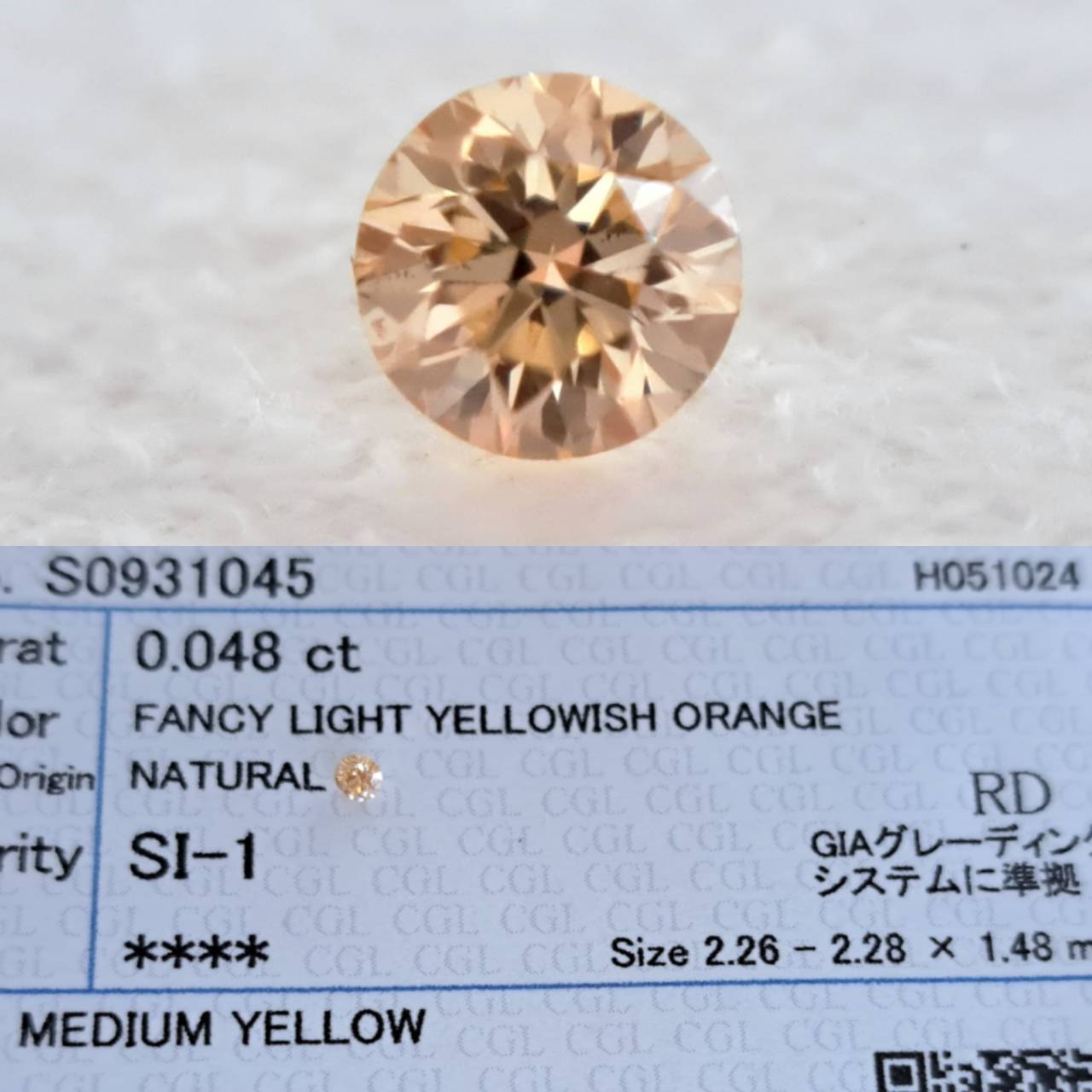 2) 0.048ct fancy light yellowish orange SI1 Fluo.medium yellow
