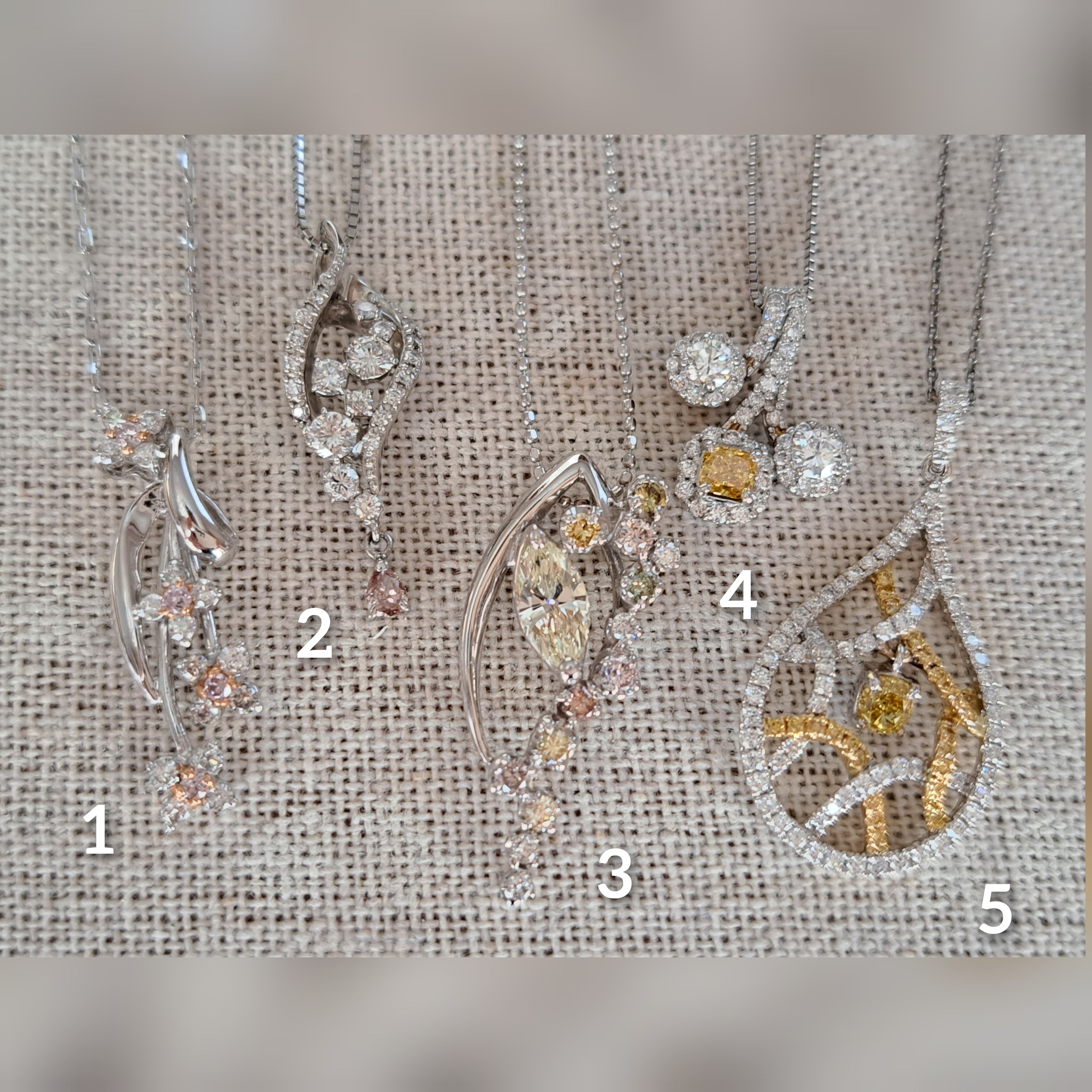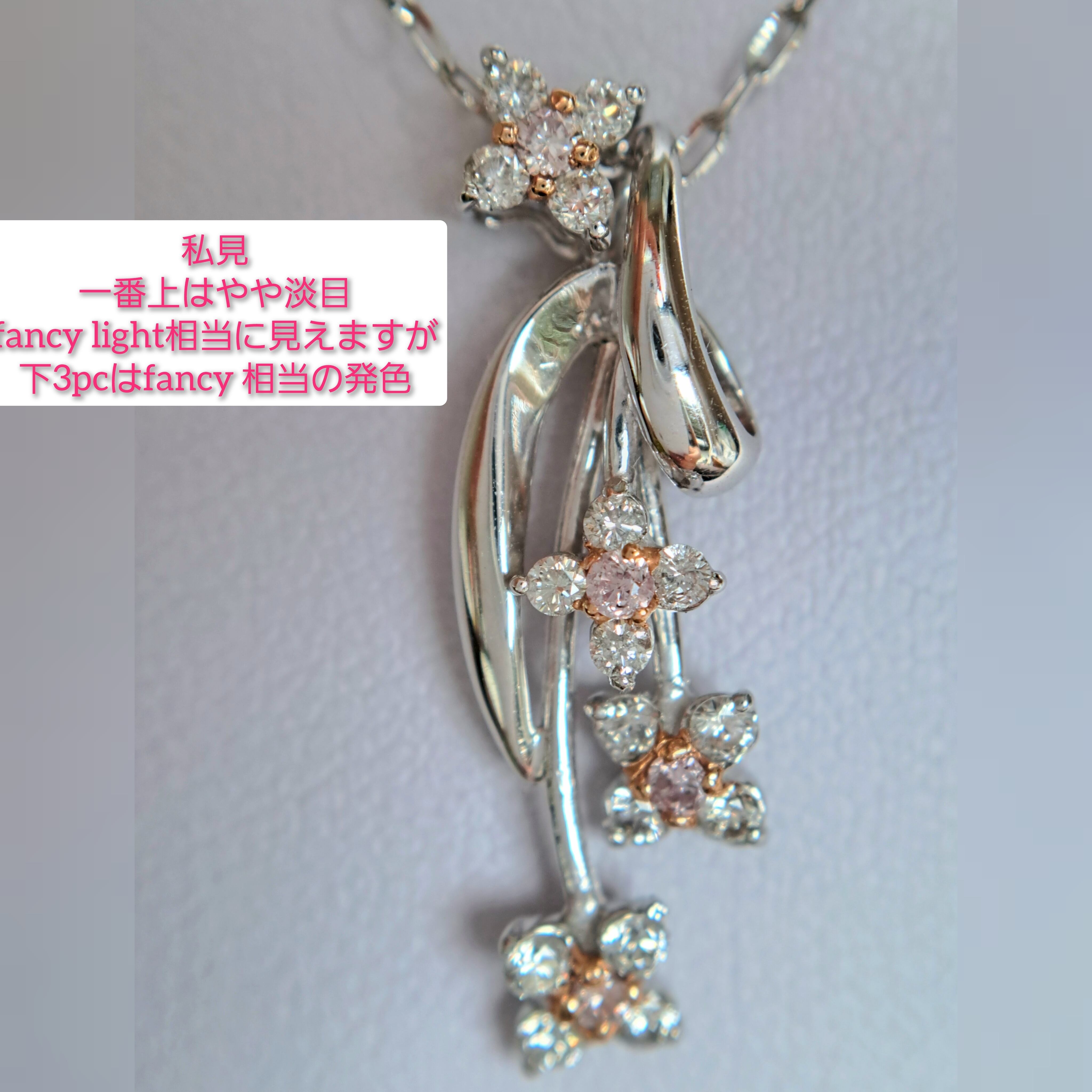 とても小粒ゆえソーティングはありませんが、フラワーのセンターのピンクの大半は私見fancy相当の良好な発色のピンクたち。(一番上のみ若干淡目でfancy light相当に感じます)