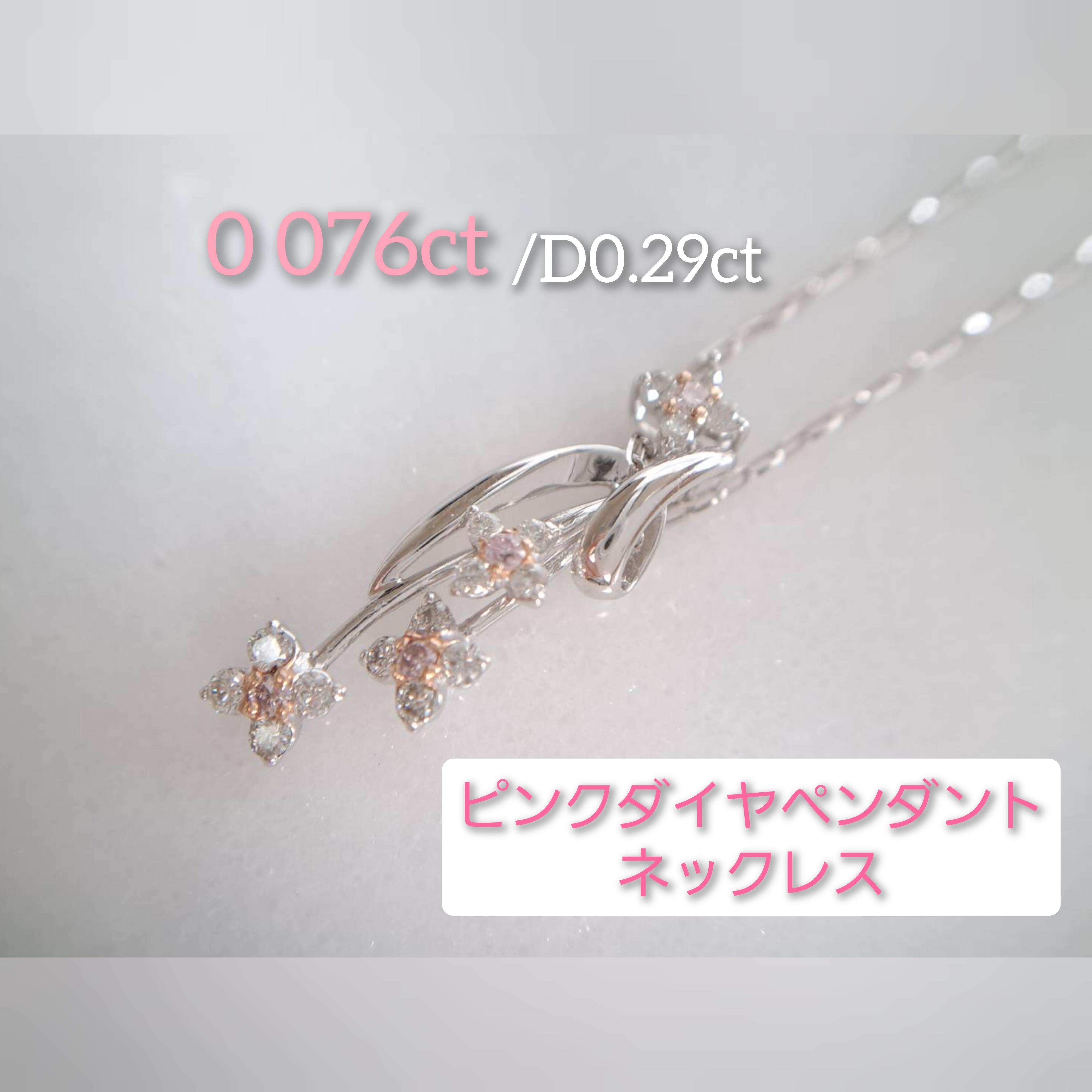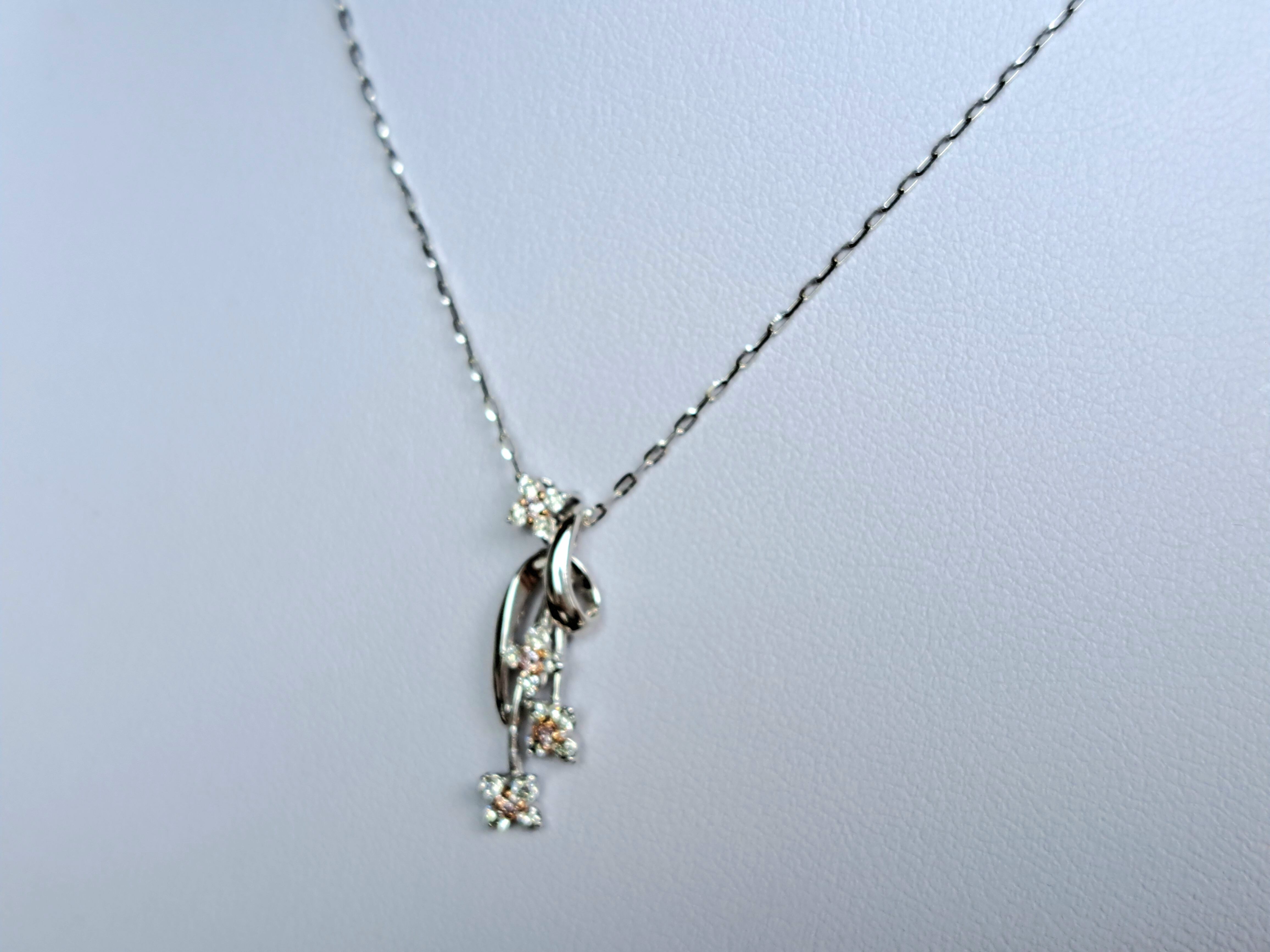 【SALE延長~1/31迄】(1) K18WGピンクダイヤ0.076ct / D0.29ct ペンダントネックレス