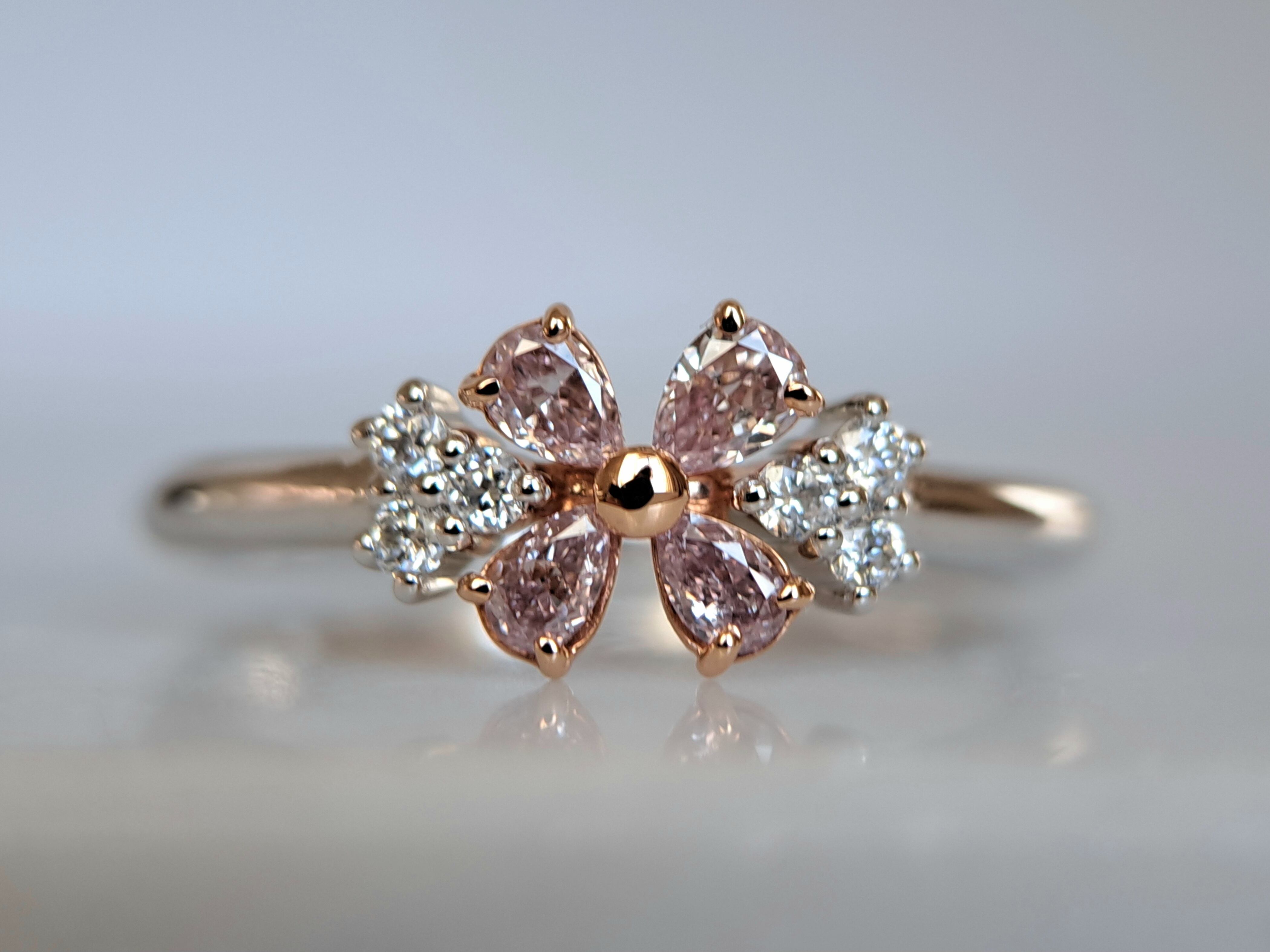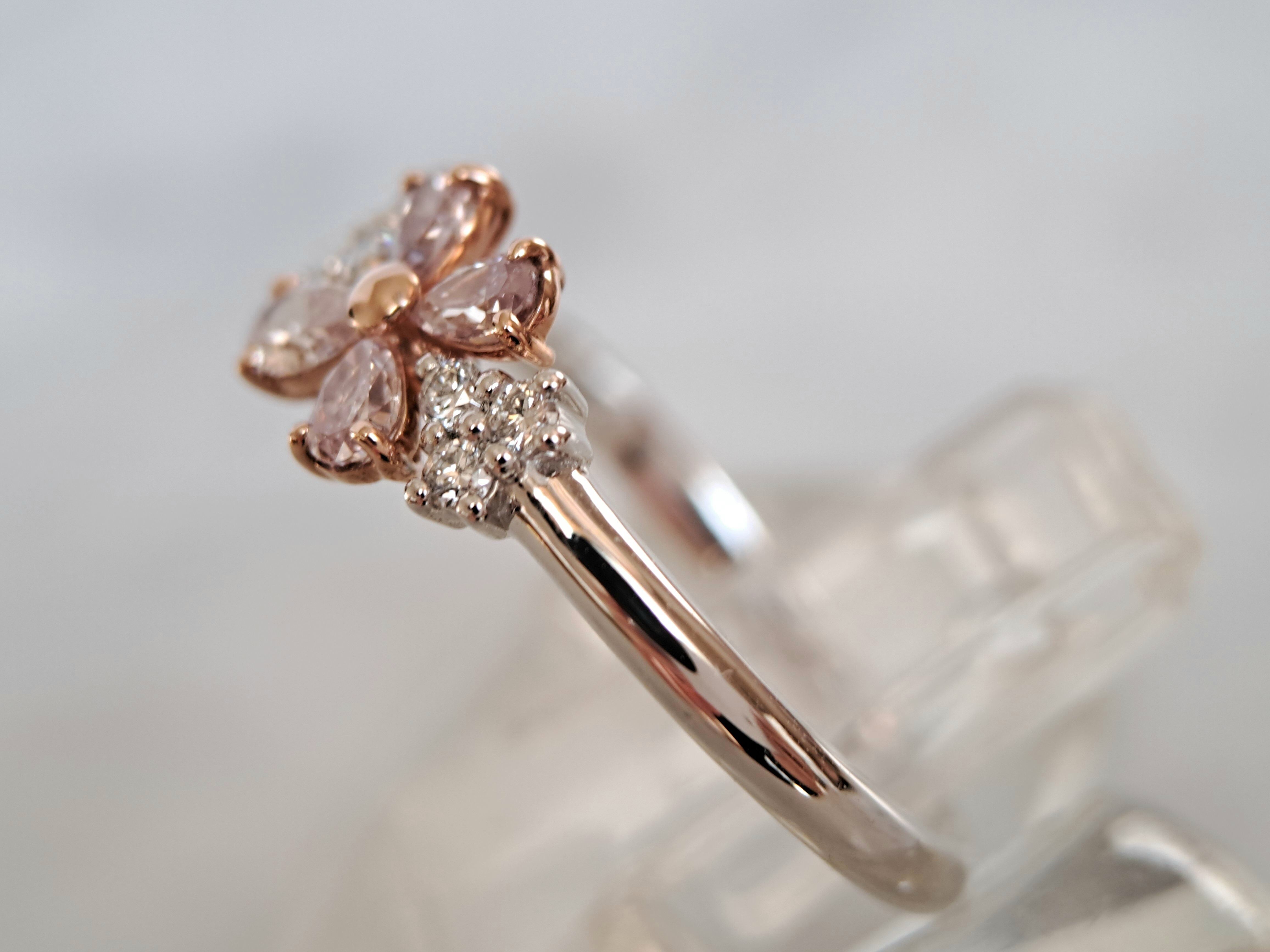 【製品名】Pt950/K18PGピンクダイヤモンド花(0.251ct)/ダイヤモンド(0.10ct)リング