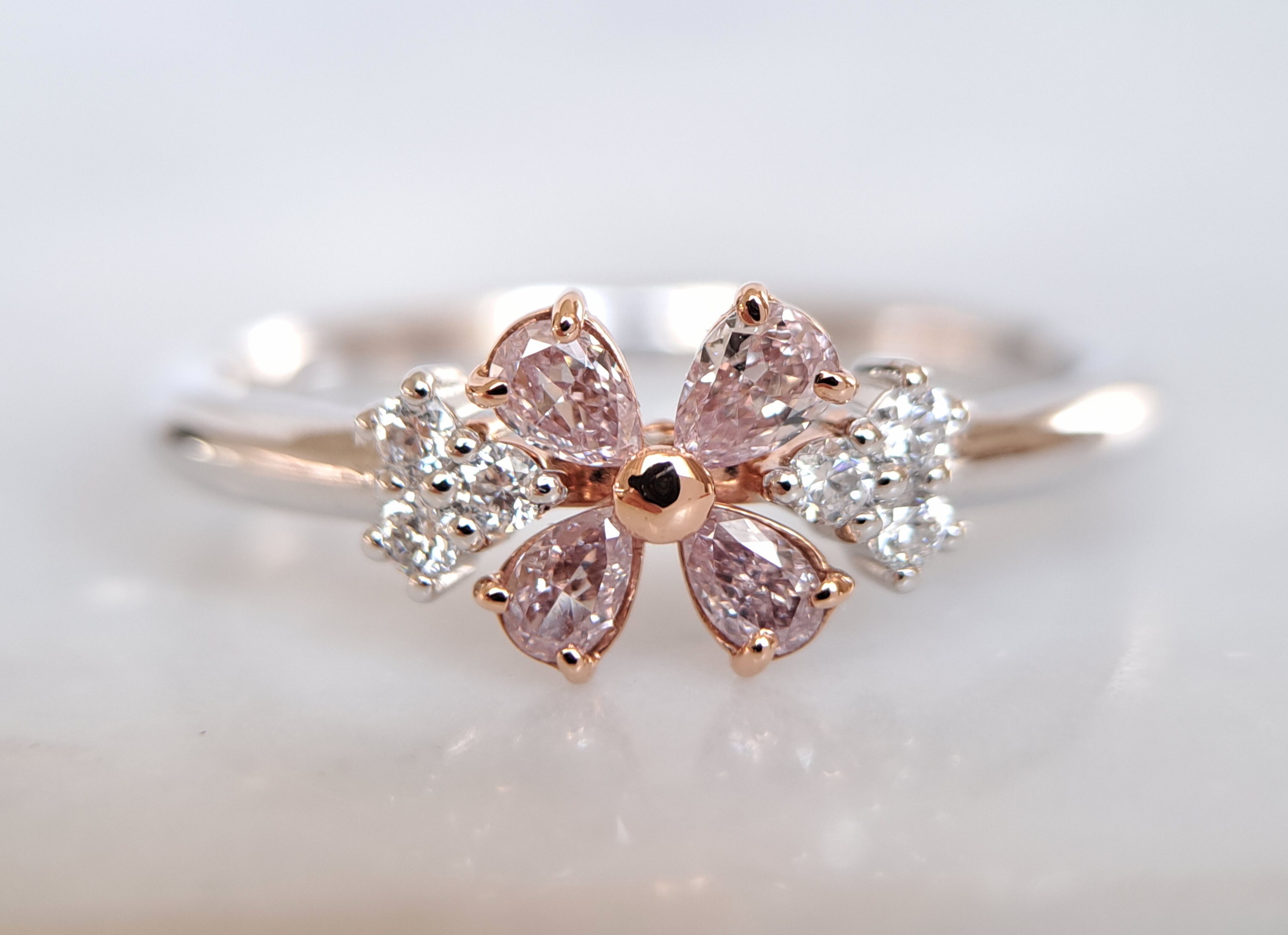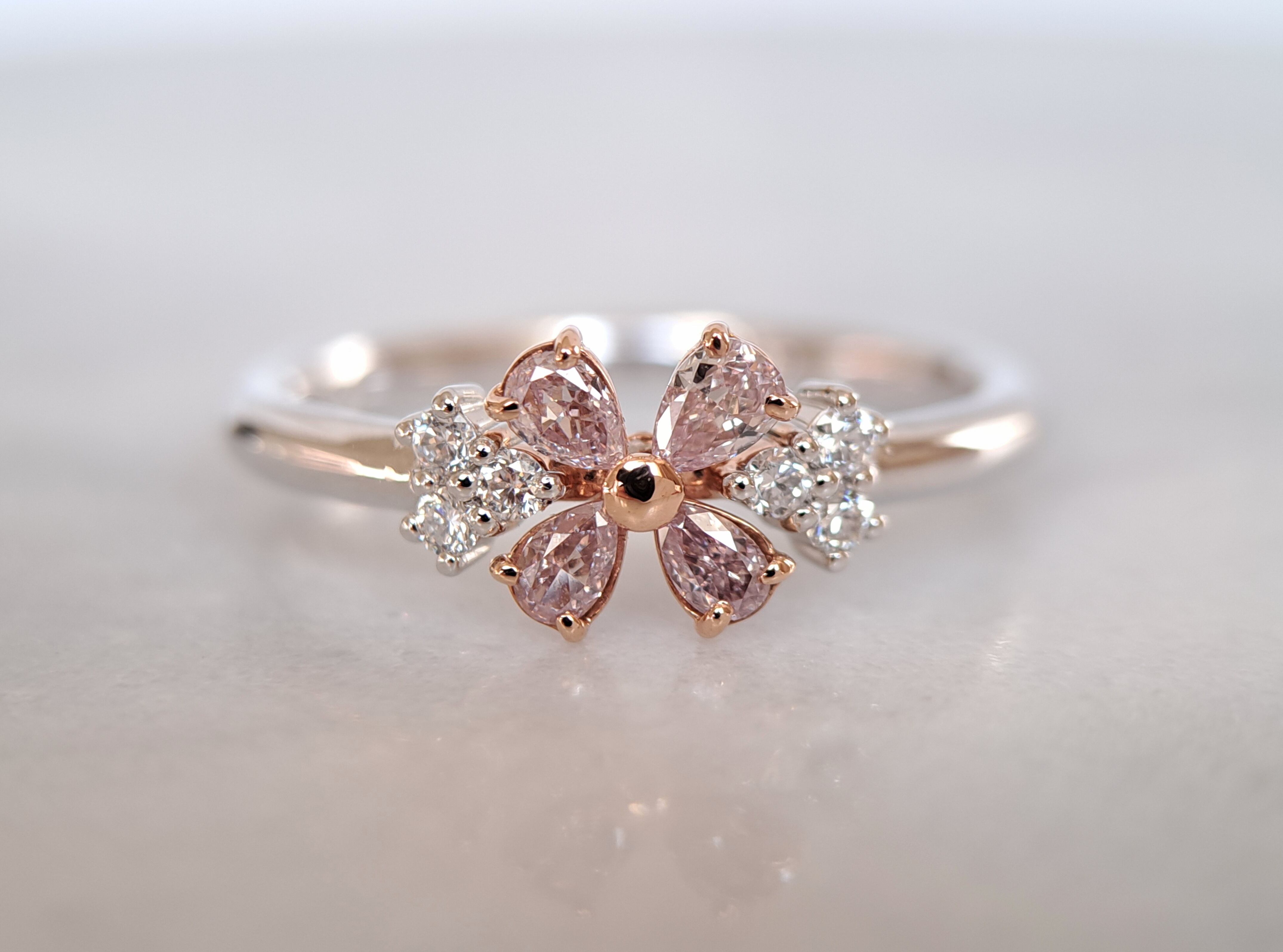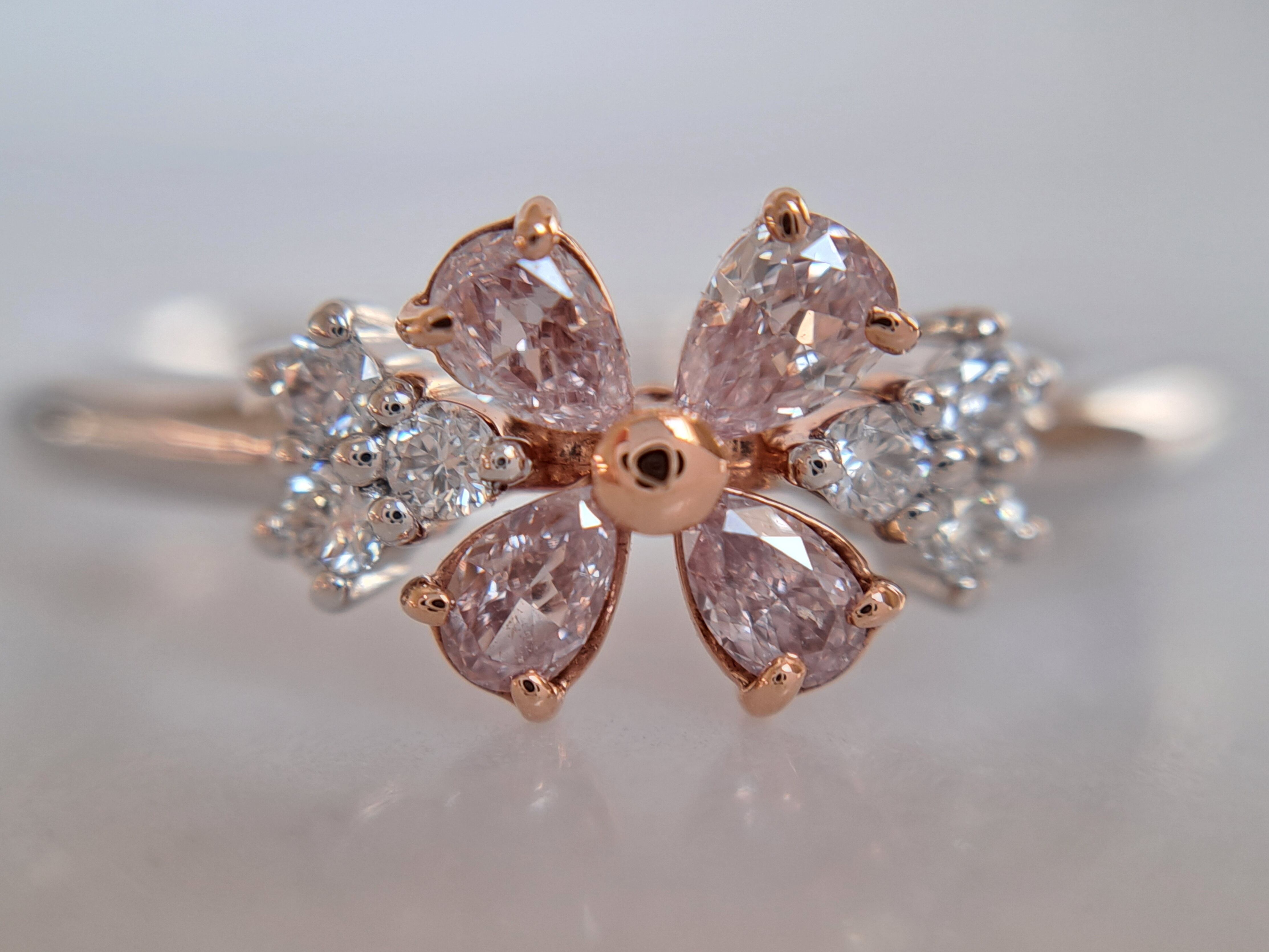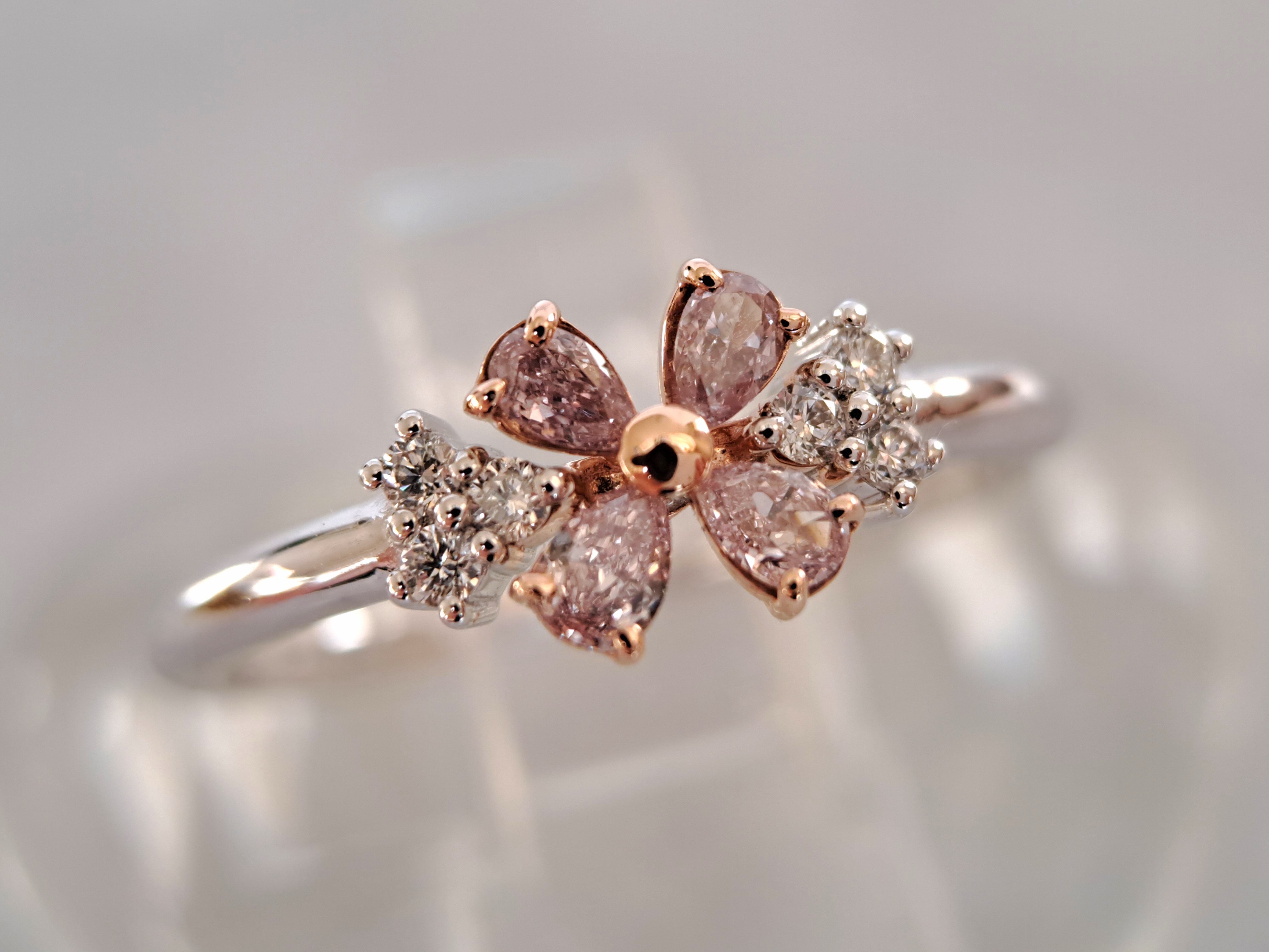 しかし、よくよく見れば超稀少な「ピンクダイヤ」のフラワー、滅多に無い自慢のリングです。