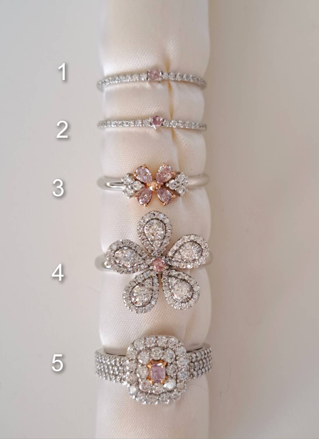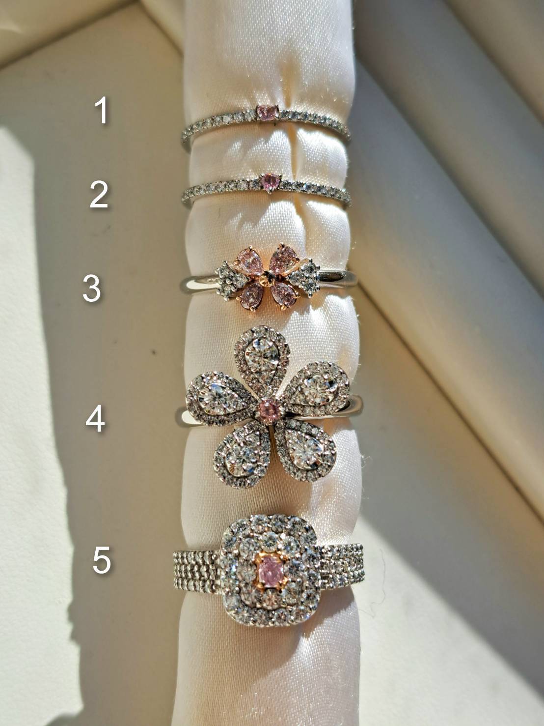 遠目、誰がどう見てもきちんと「ピンク」であるとわかるピンクダイヤたちです。