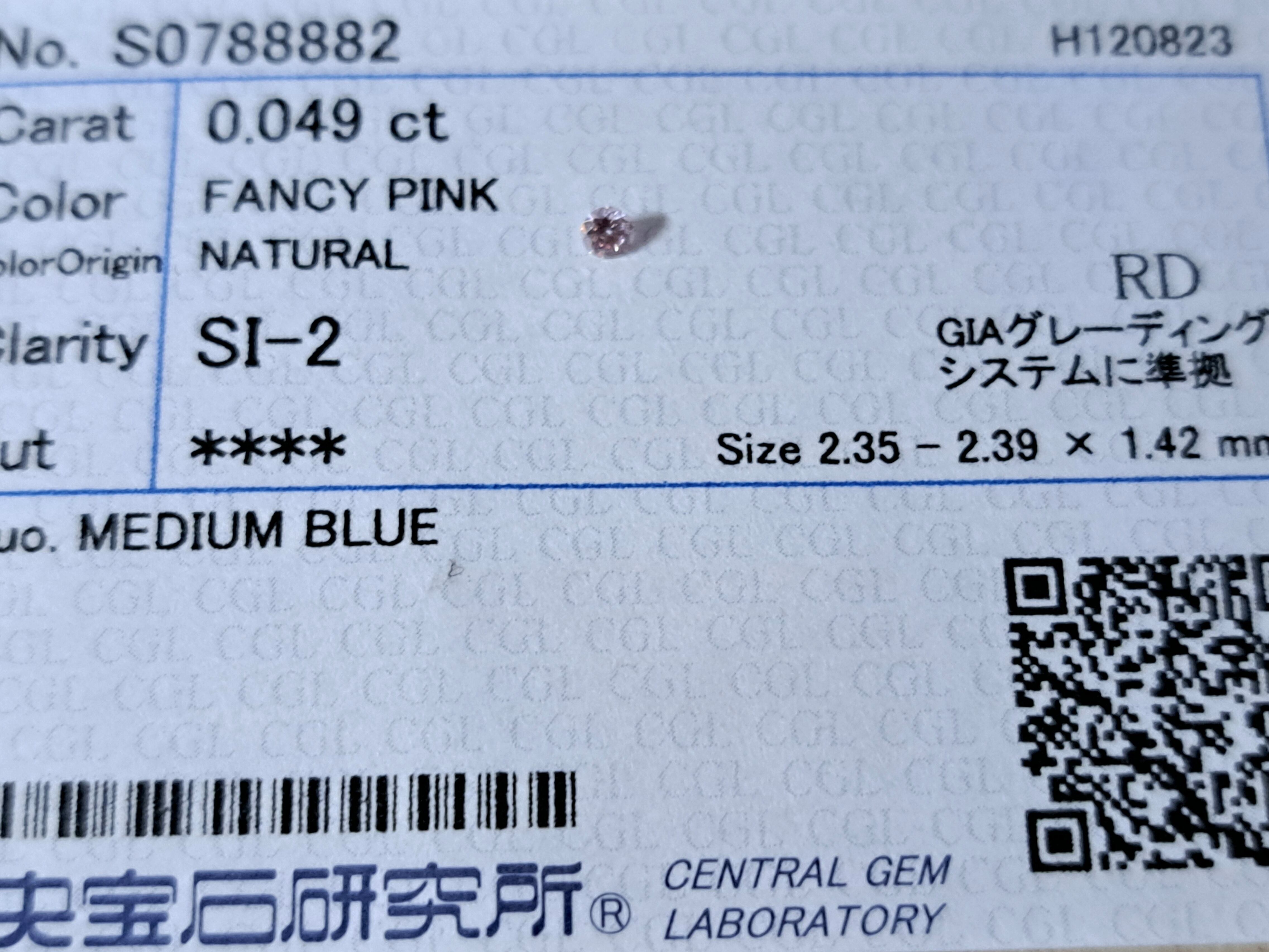 ピンクダイヤモンドルース 0.049ct fancy pink SI2(CGL)